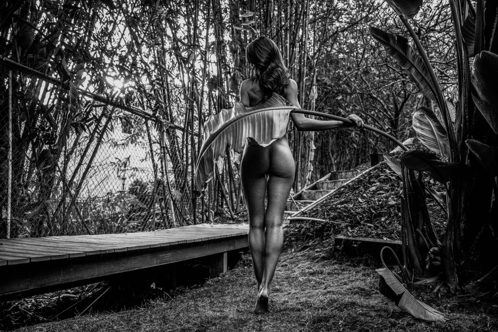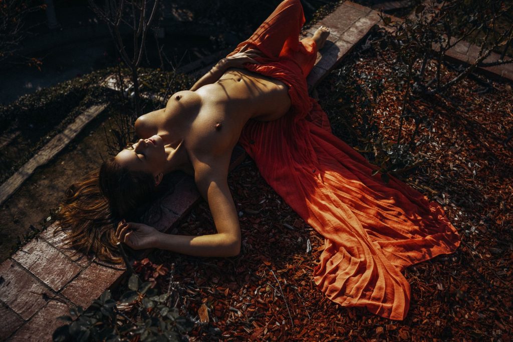 Американская модель Элизабет Элам была сфотографирована Кеслером Траном, демонстрируя свою безупречную обнаженную попу и грудь в парке и у бассейна (2015).