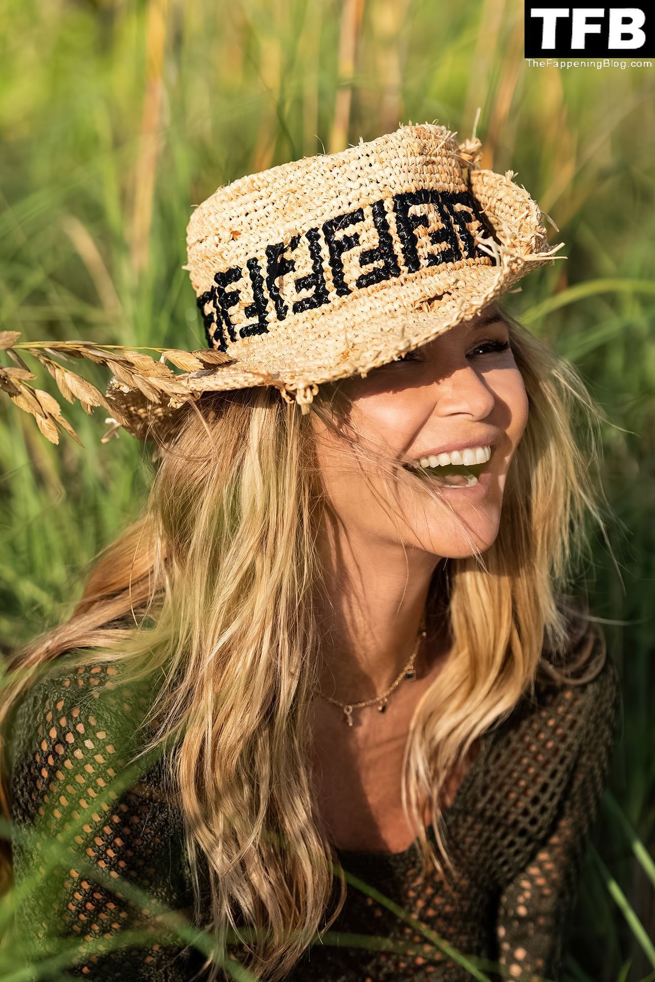 Австралийская топ-модель и актриса Эль Макферсон выглядит горячо в бикини и нарядах, демонстрируя свои обнажённые груди в фотосессии для журнала Elle France, июль 2022.