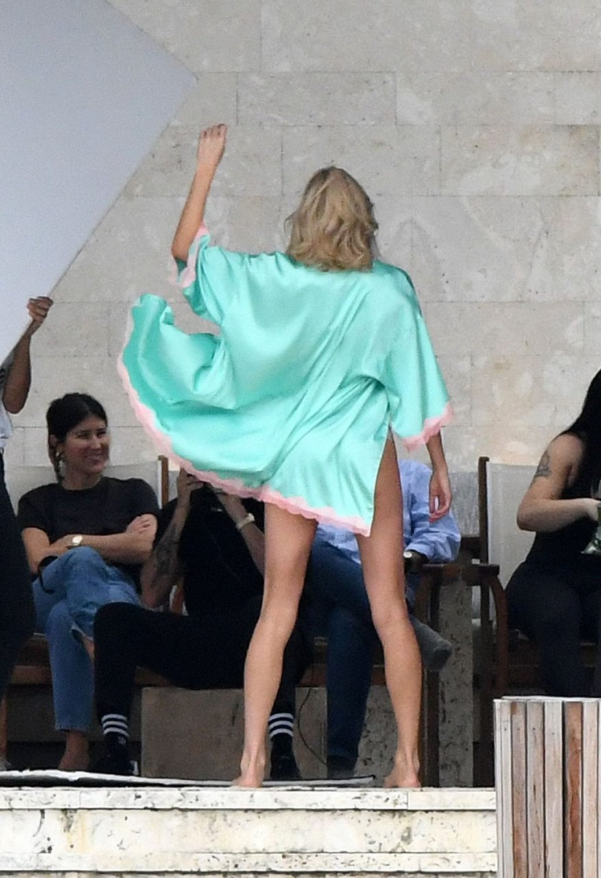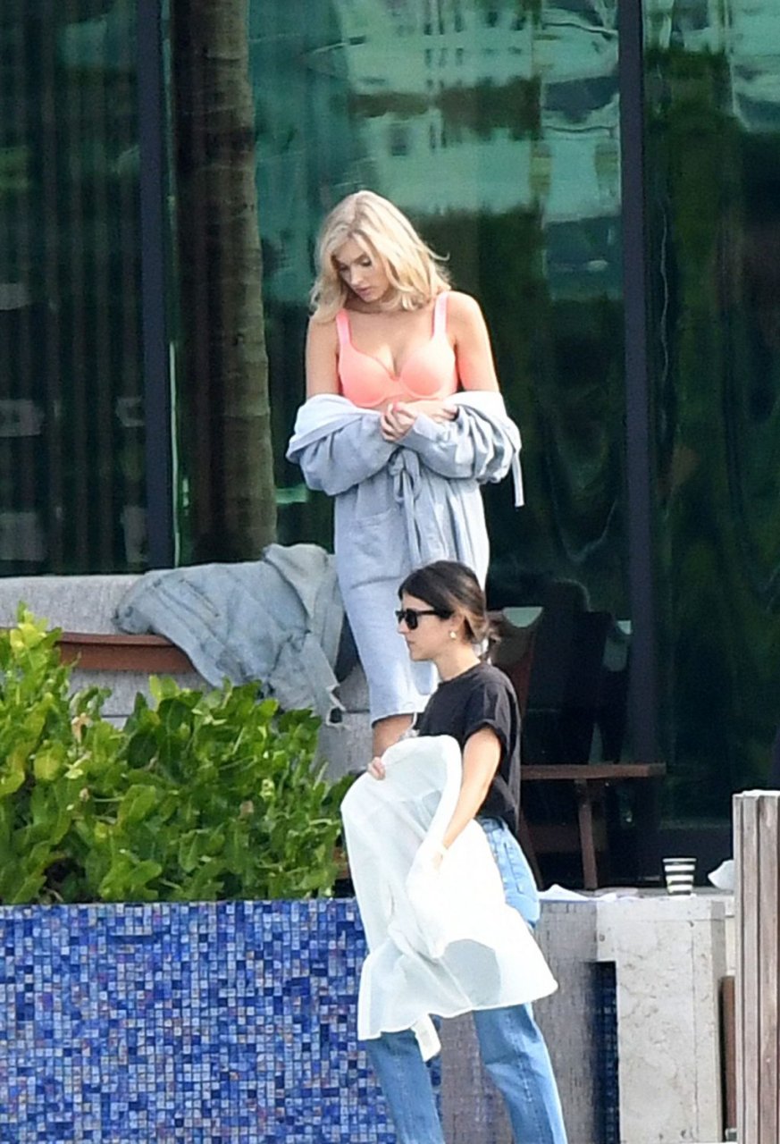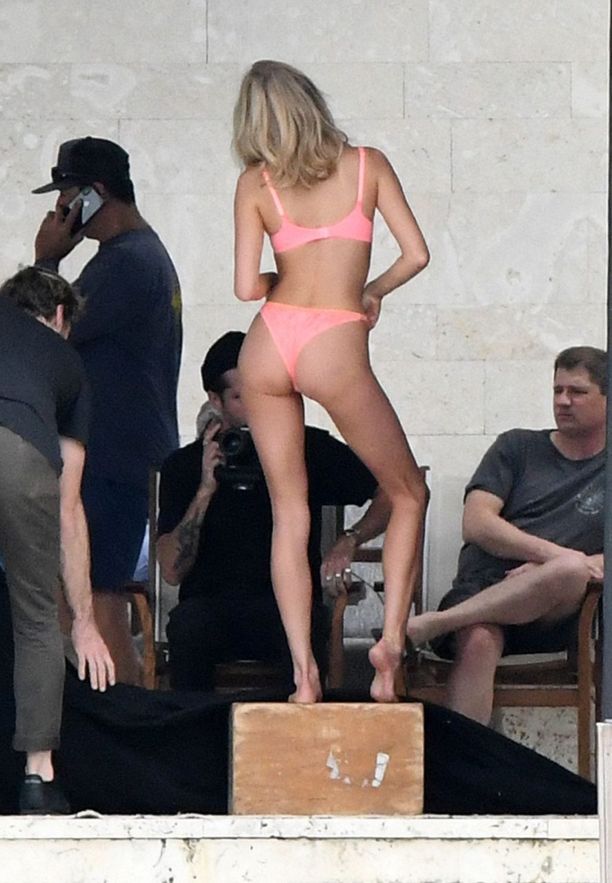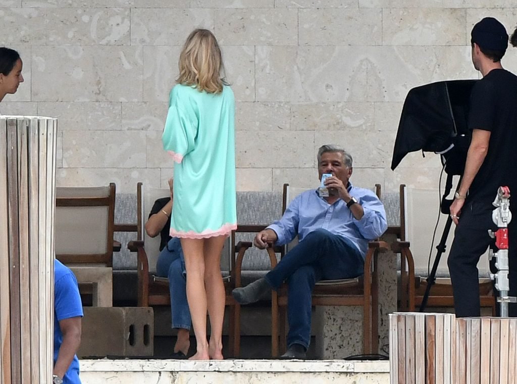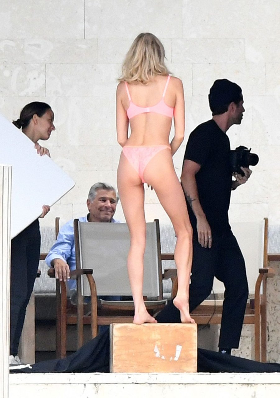 Красавицы Victoria’s Secret Элса Хоск, Барбара Палвин и Алексина Грэм позируют в нижнем белье, в то время как главный маркетолог Эд Разек занимает место в первом ряду на съемке, 30.11.2018. Разек недавно подвергся критике за свои спорные заявления о моделях, которых он выбирает для представления бренда.