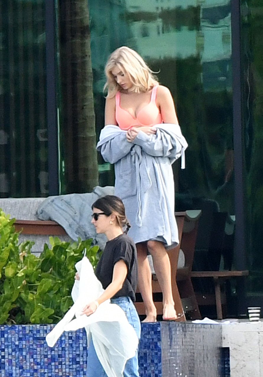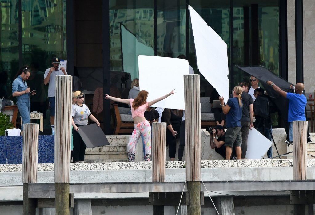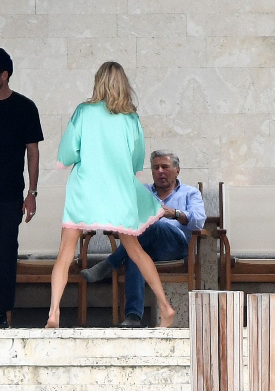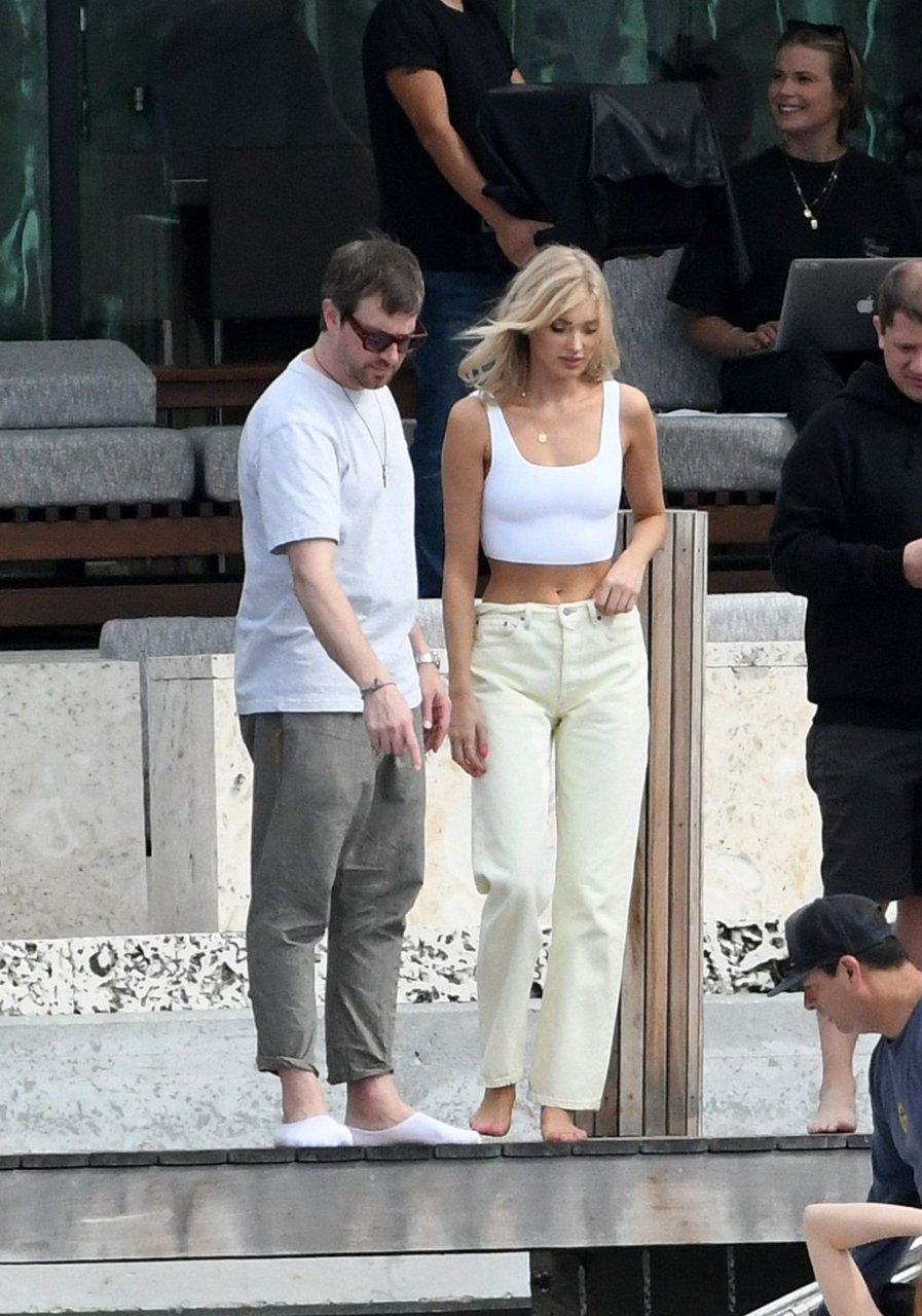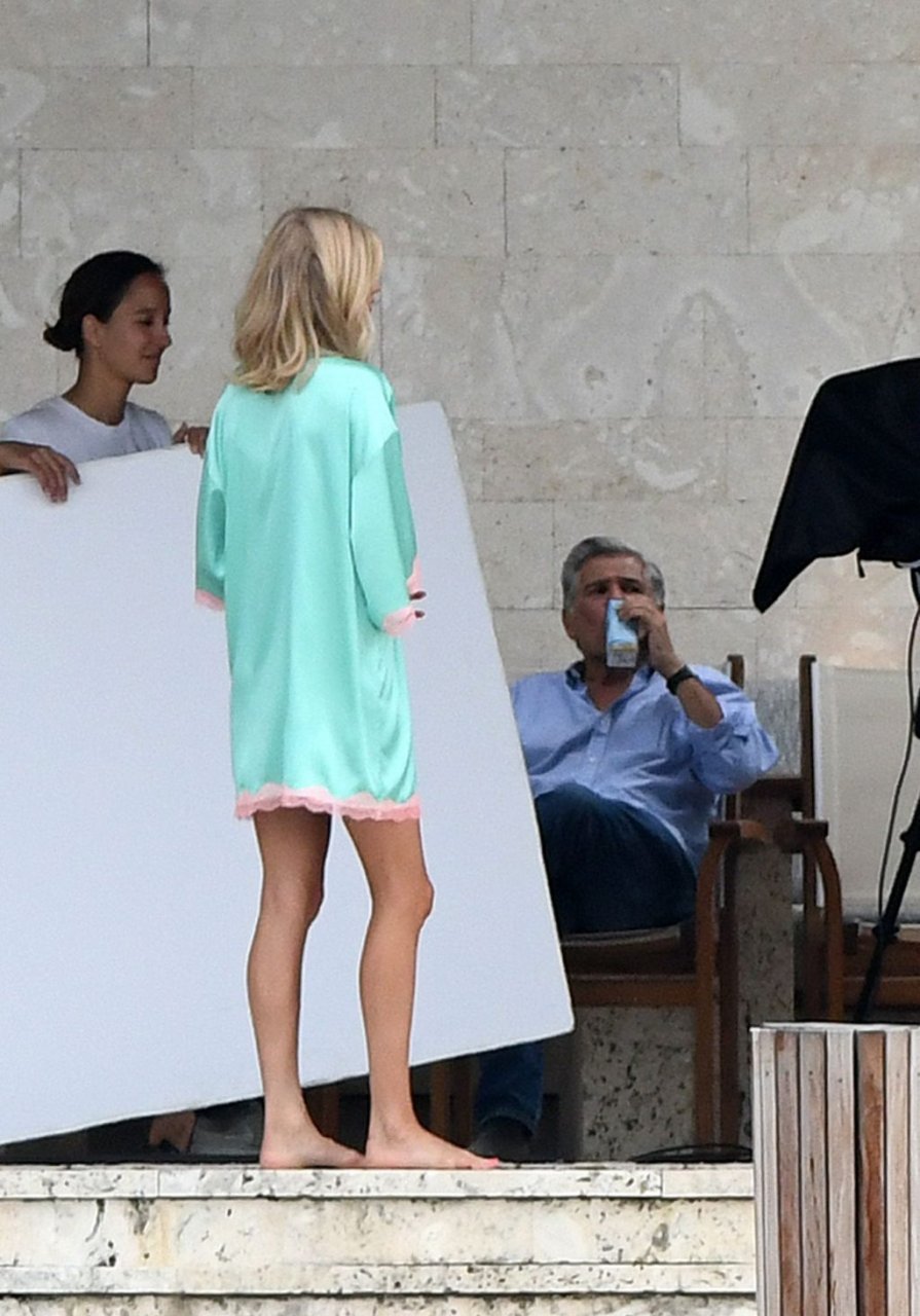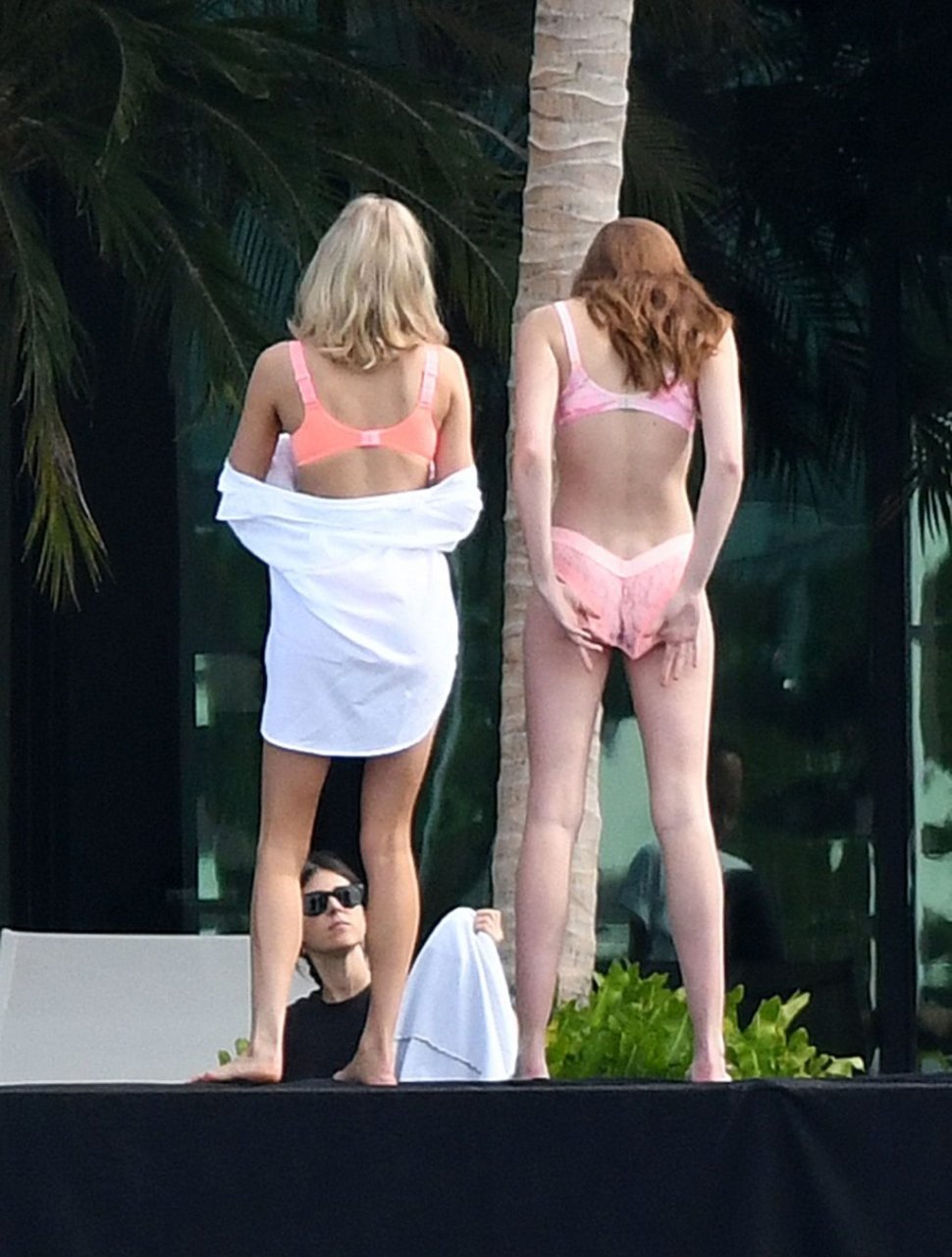 Красавицы Victoria’s Secret Элса Хоск, Барбара Палвин и Алексина Грэм позируют в нижнем белье, в то время как главный маркетолог Эд Разек занимает место в первом ряду на съемке, 30.11.2018. Разек недавно подвергся критике за свои спорные заявления о моделях, которых он выбирает для представления бренда.