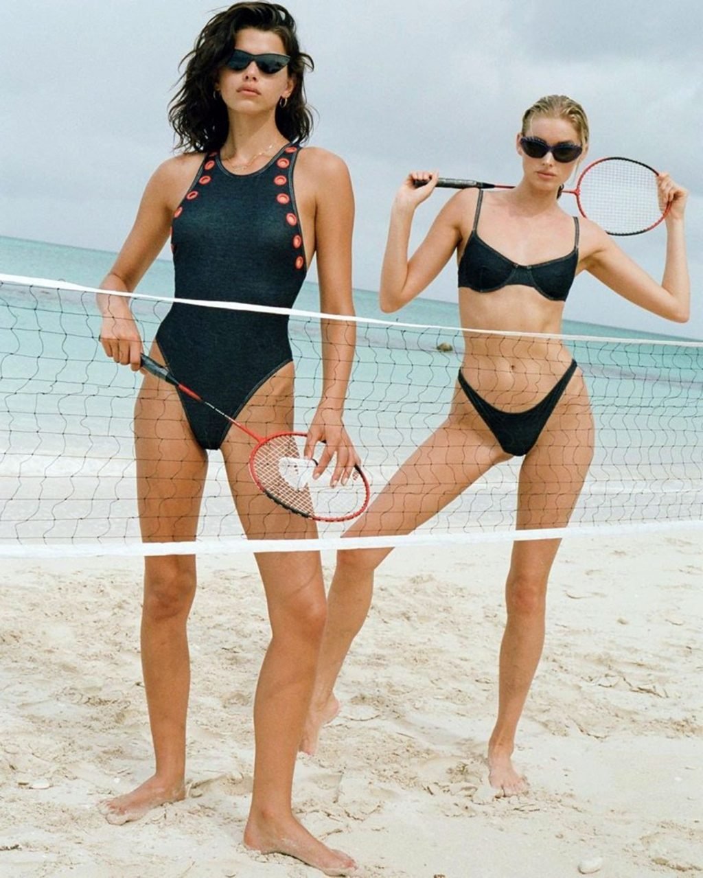 Модели Эльза Хоск и Джорджия Фаулер позируют для новой кампании нью-йоркского бренда купальников Solid & Striped, снятой на локации в Теркс и Кайкос, 04/02/2019.