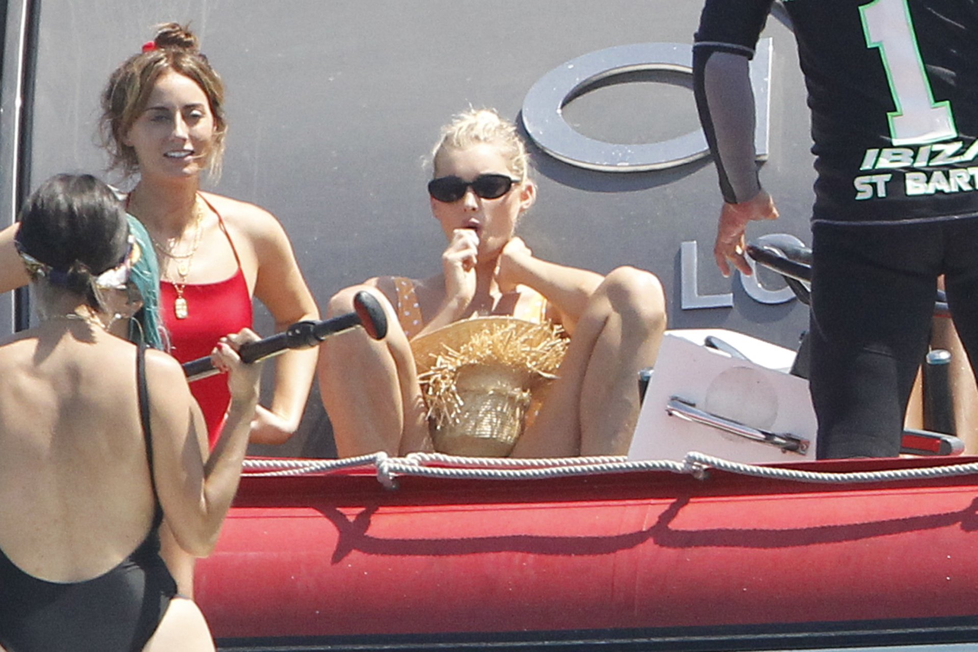 Ангел Victoria’s Secret Эльза Хоск (29) наслаждается днем на лодке в Форментере, 26.06.2018. Модель можно увидеть на задней палубе лодки, наслаждаясь солнцем и держа в руках и надевая соломенную шляпу.