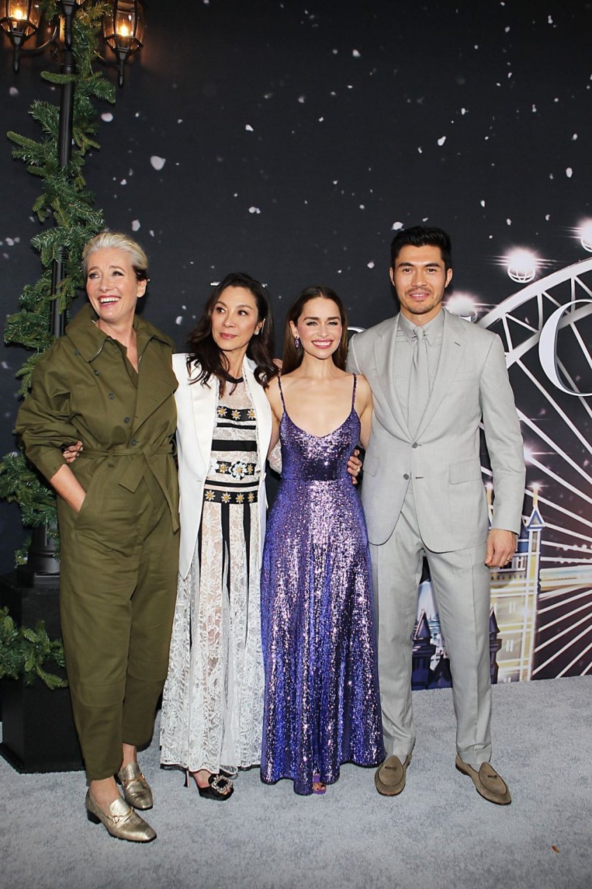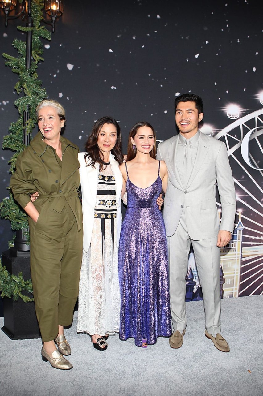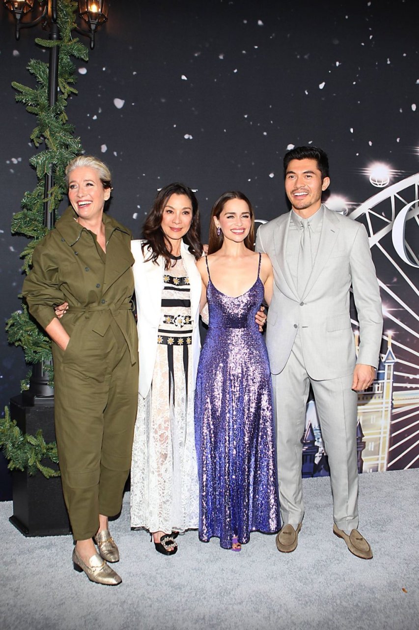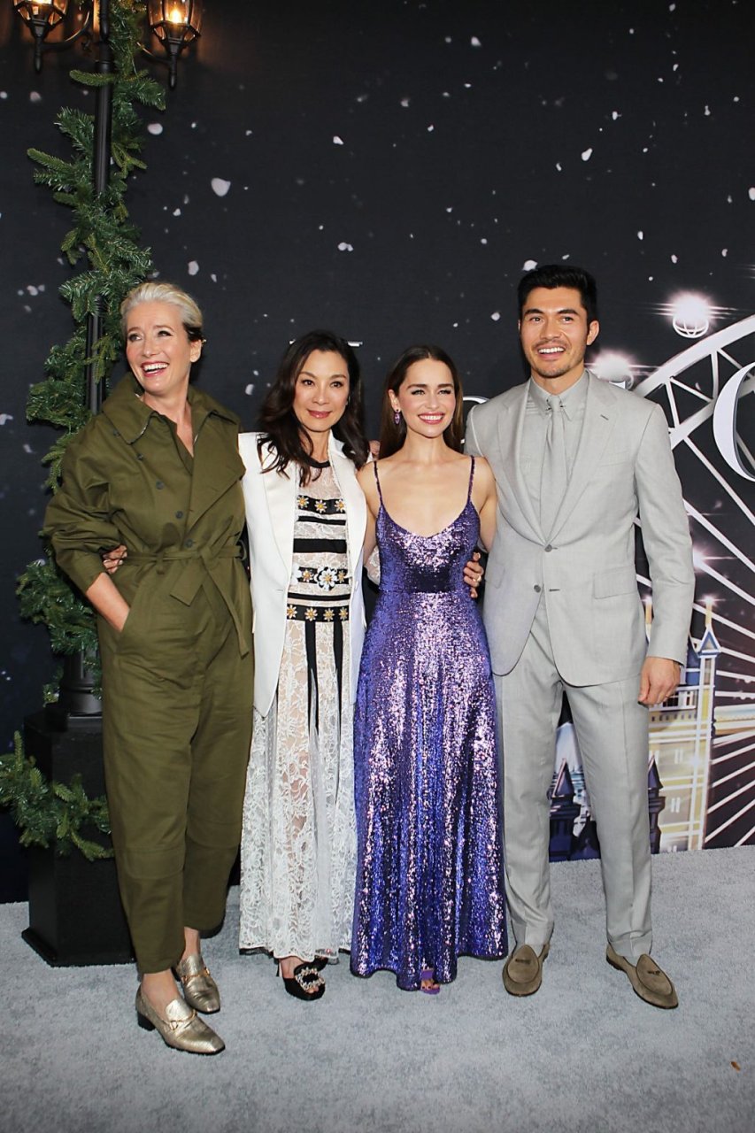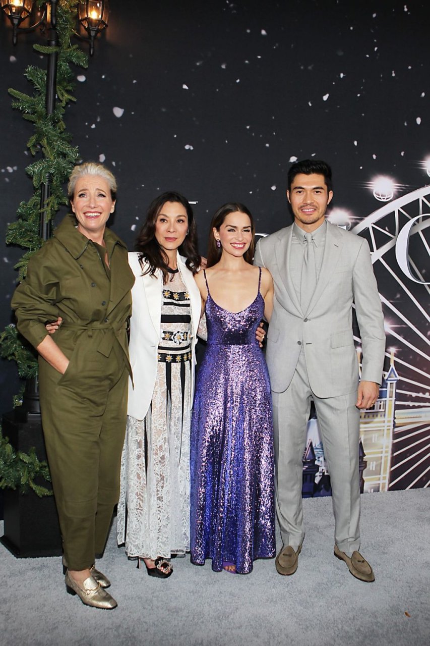 Участники съемок “Last Christmas” Эмилия Кларк, Генри Голдинг, Мишель Йео и Эмма Томпсон позируют вместе на красной дорожке премьеры фильма Last Christmas в Нью-Йорке, 30.10.2019. Мишель Йео и Генри Голдинг весело воссоздали сцену мать/сын из их последнего совместного фильма “Безумно богатые азиаты”.