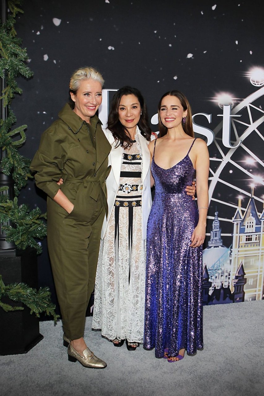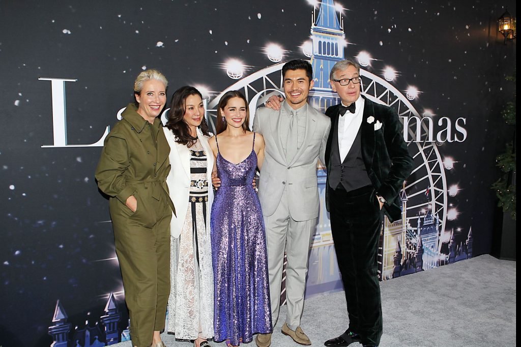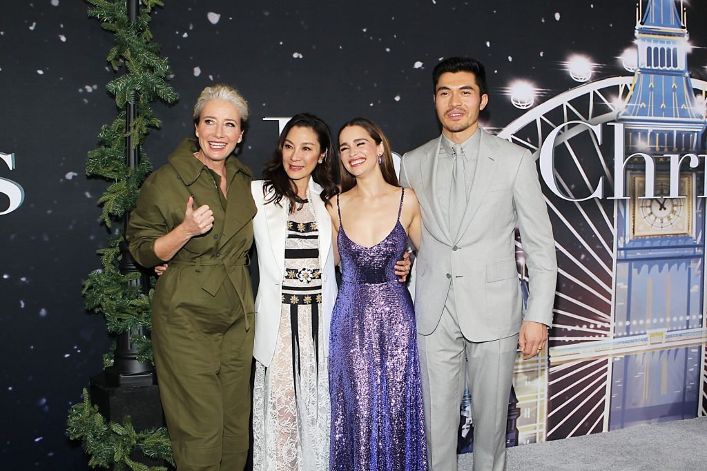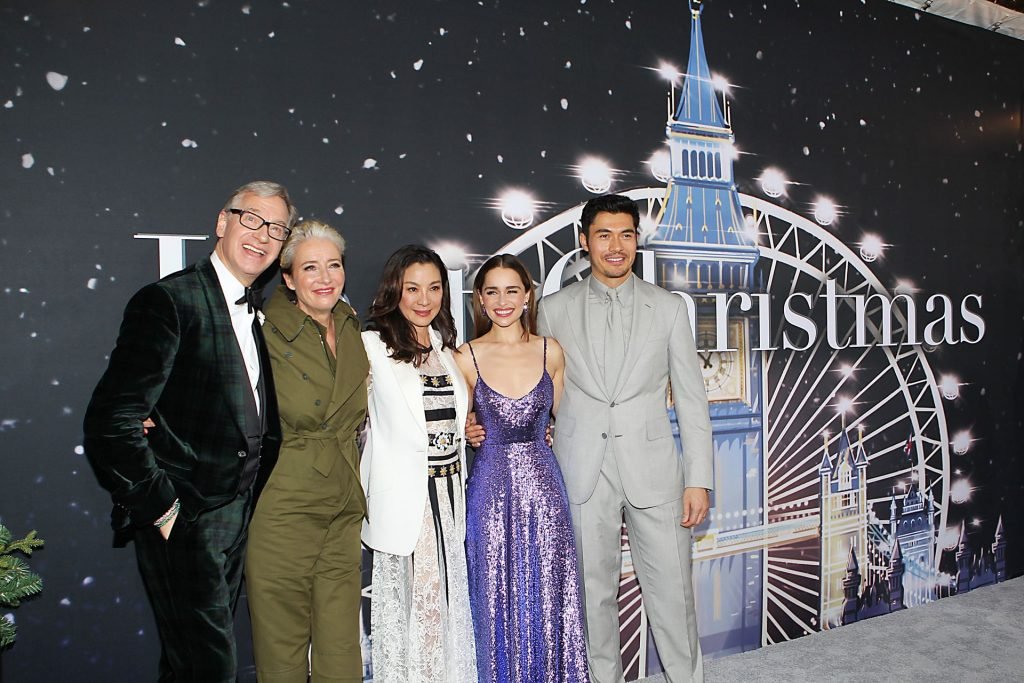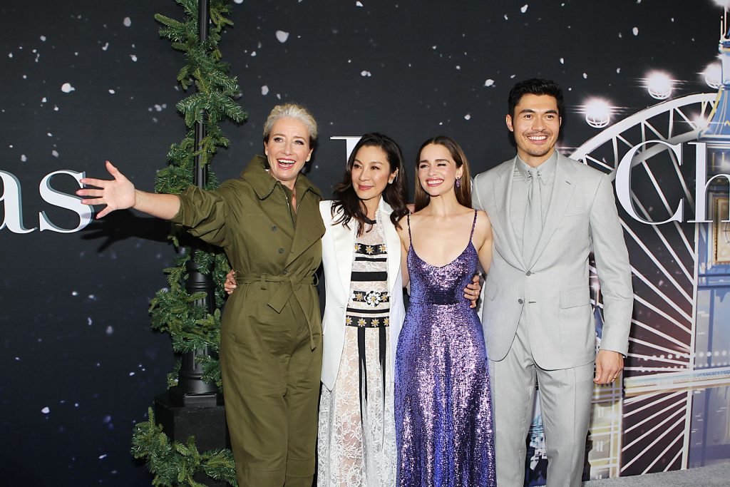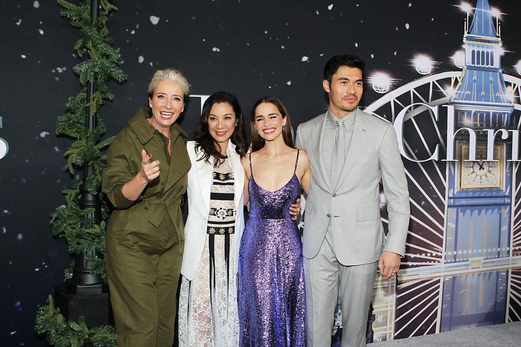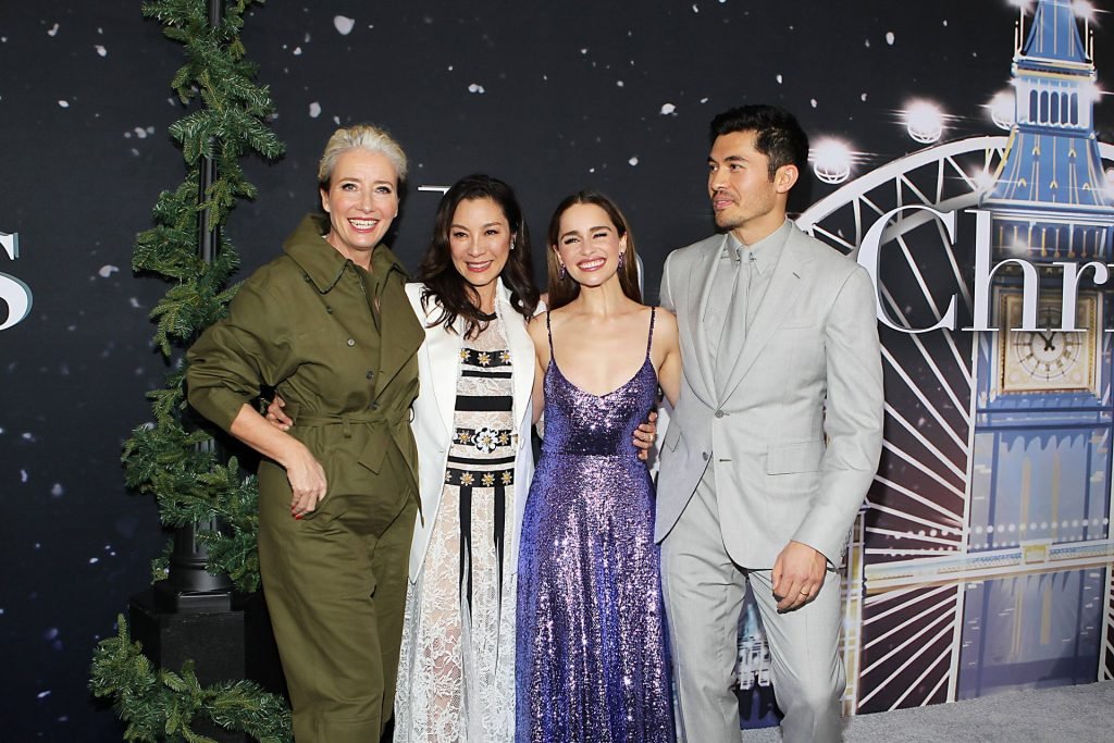 Участники съемок “Last Christmas” Эмилия Кларк, Генри Голдинг, Мишель Йео и Эмма Томпсон позируют вместе на красной дорожке премьеры фильма Last Christmas в Нью-Йорке, 30.10.2019. Мишель Йео и Генри Голдинг весело воссоздали сцену мать/сын из их последнего совместного фильма “Безумно богатые азиаты”.