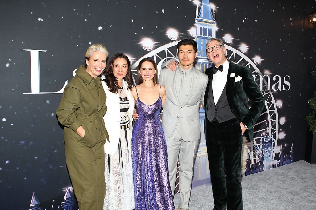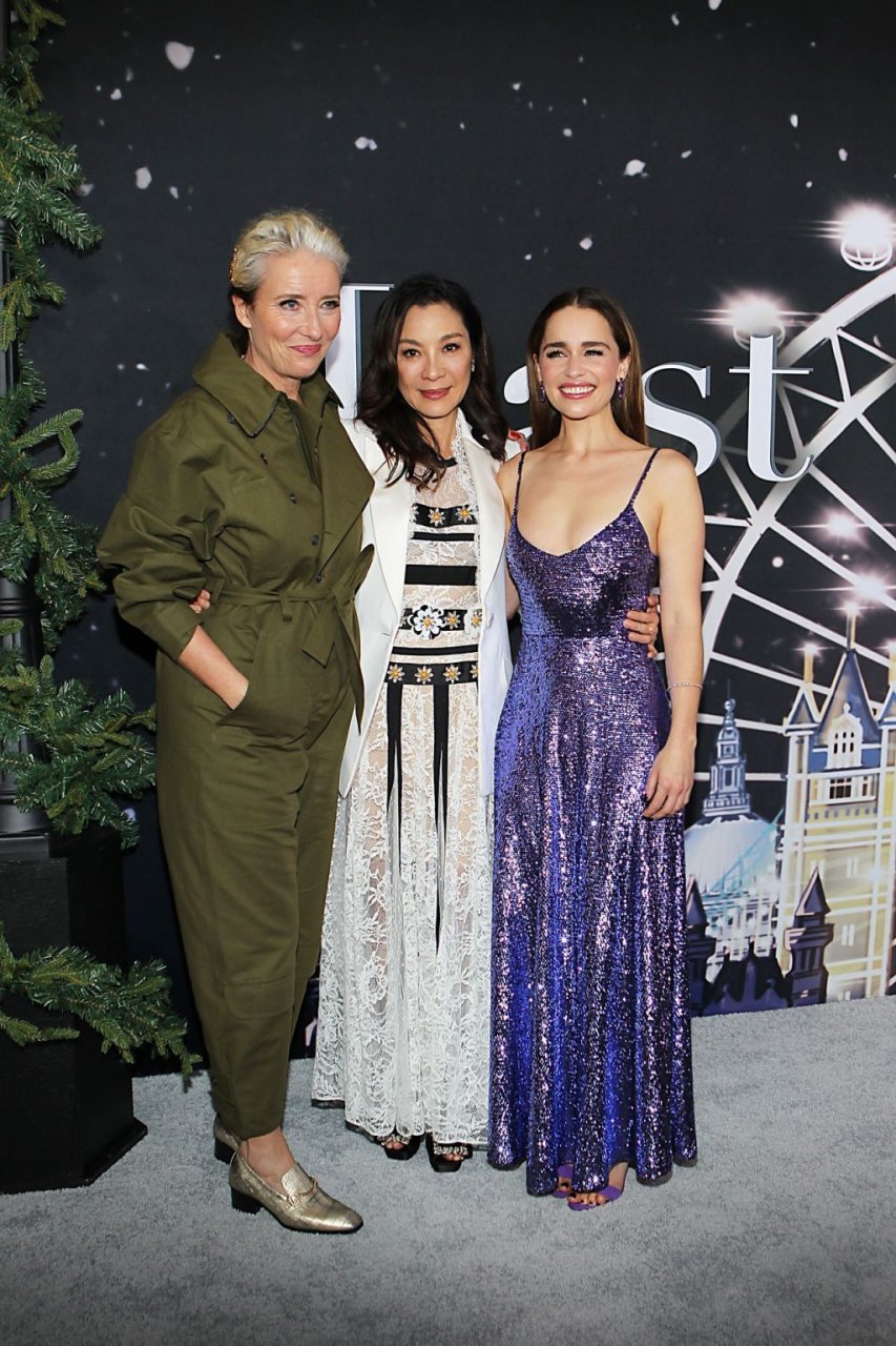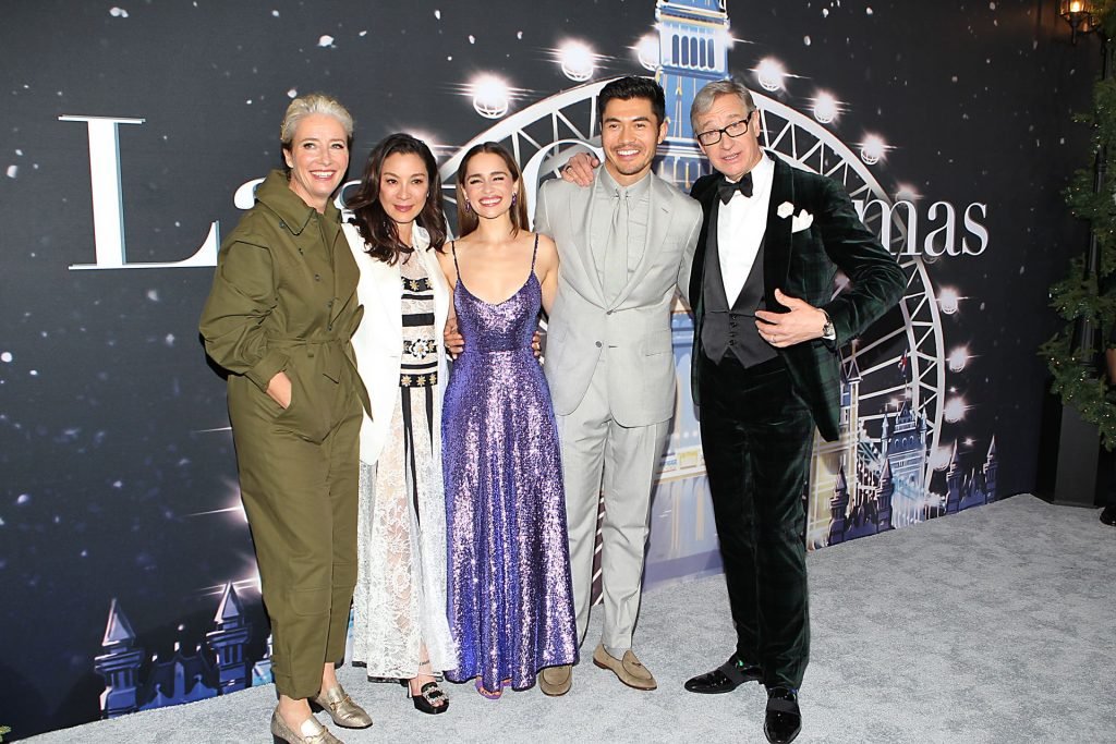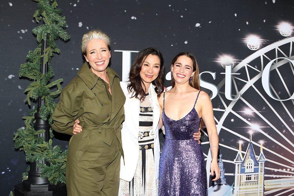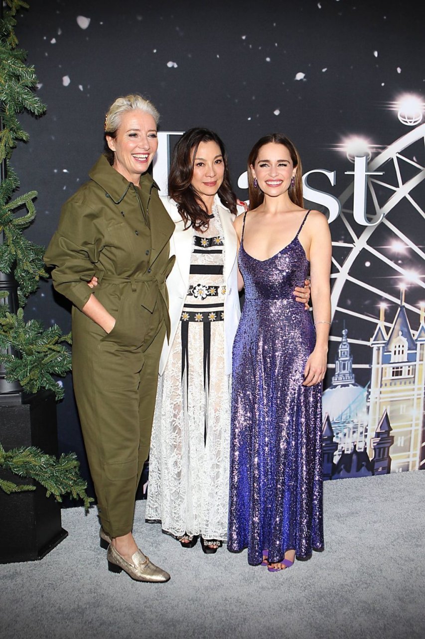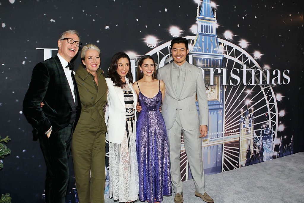 Участники съемок “Last Christmas” Эмилия Кларк, Генри Голдинг, Мишель Йео и Эмма Томпсон позируют вместе на красной дорожке премьеры фильма Last Christmas в Нью-Йорке, 30.10.2019. Мишель Йео и Генри Голдинг весело воссоздали сцену мать/сын из их последнего совместного фильма “Безумно богатые азиаты”.