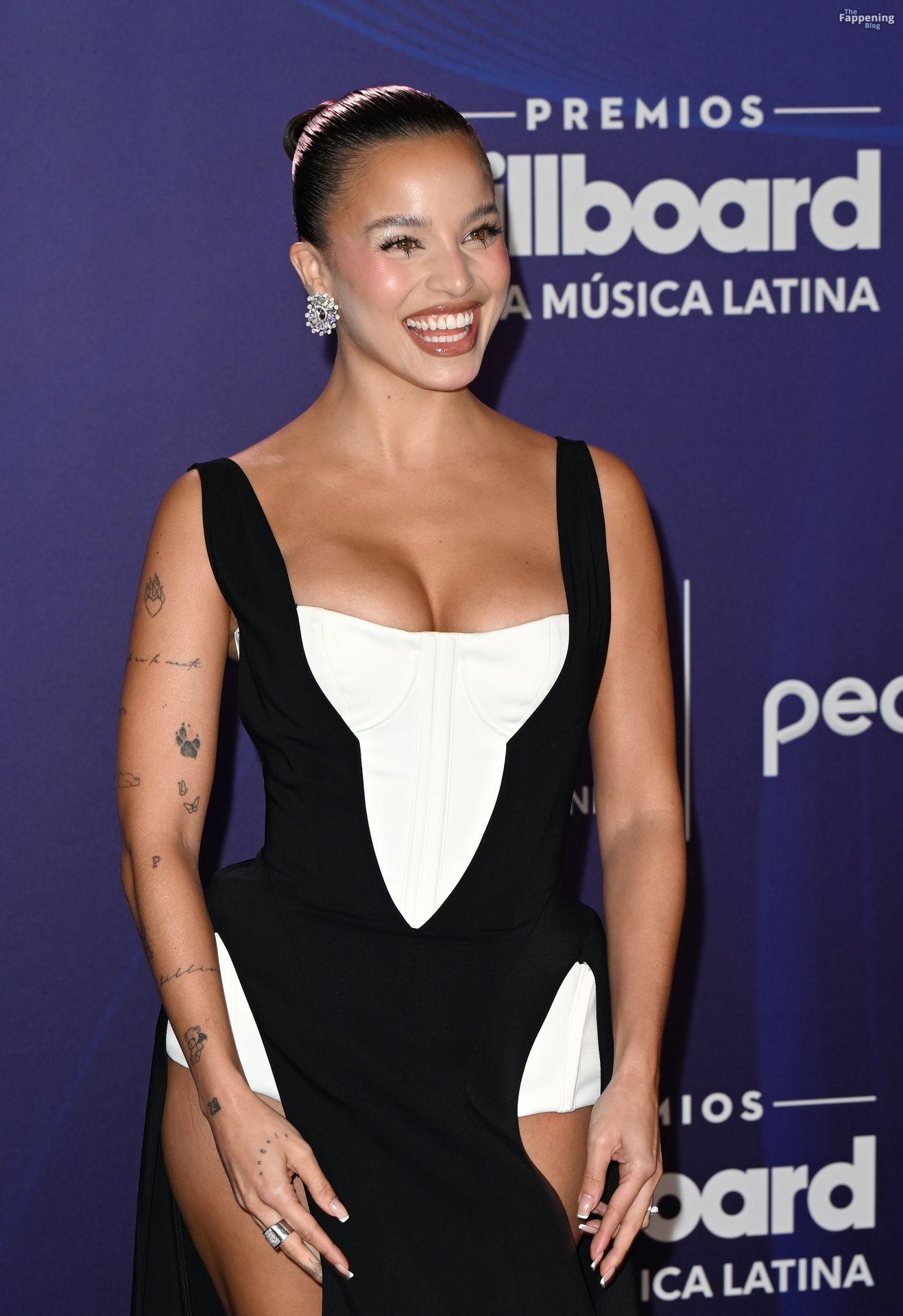 Emilia Mernes посетила церемонию Billboard Latin Music Awards 2025 в Майами, блистая в черно-белом платье с высоким разрезом, который подчеркивал её большую грудь и подтянутые ноги. Она появилась на красной дорожке в James L. Knight Center.