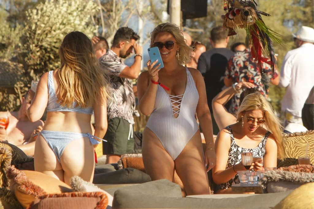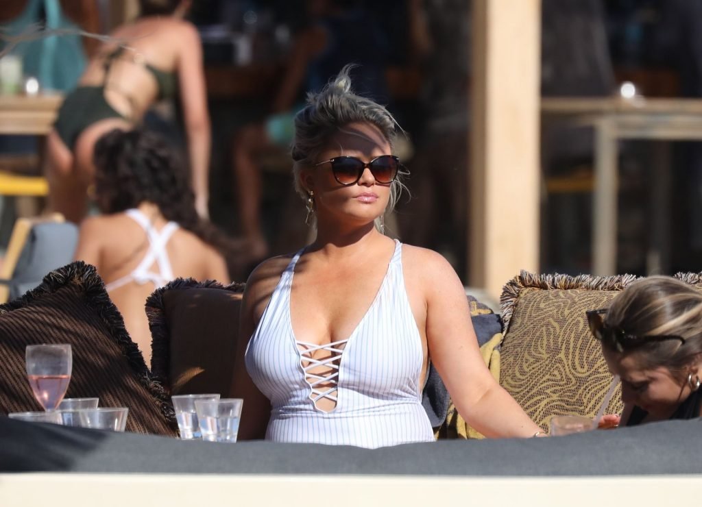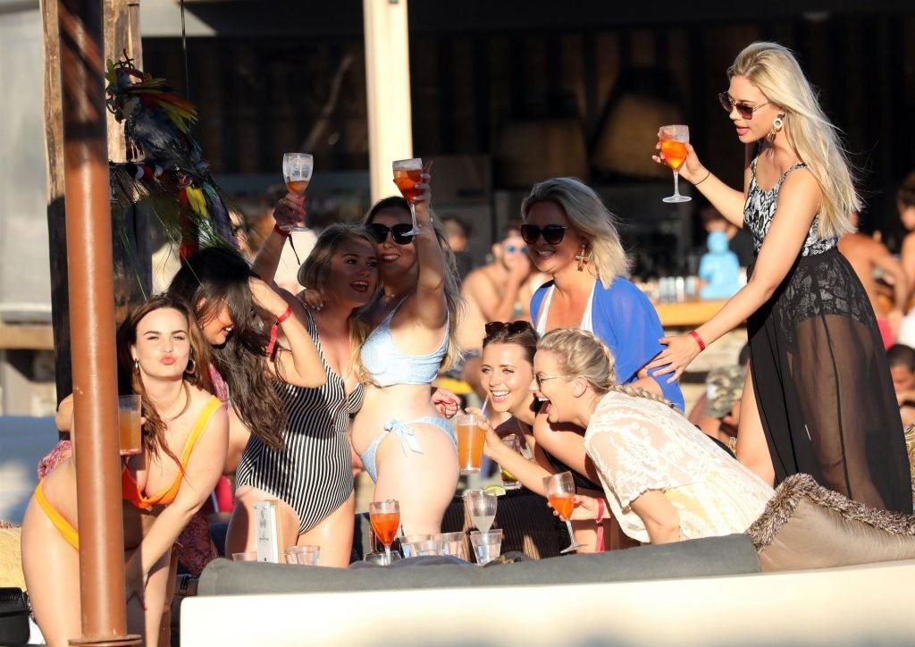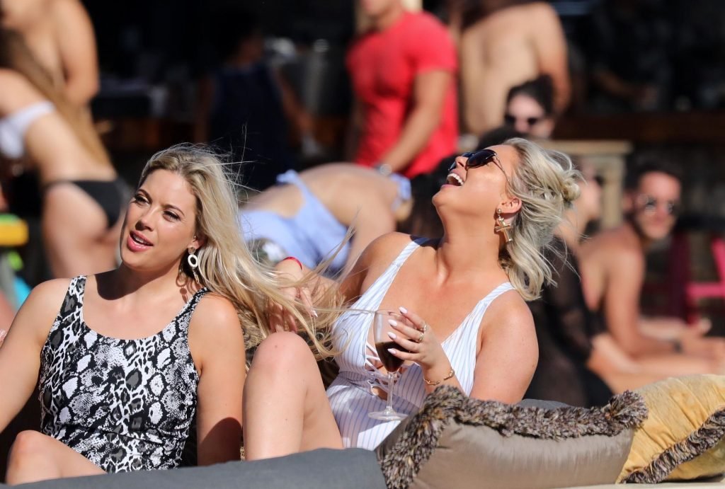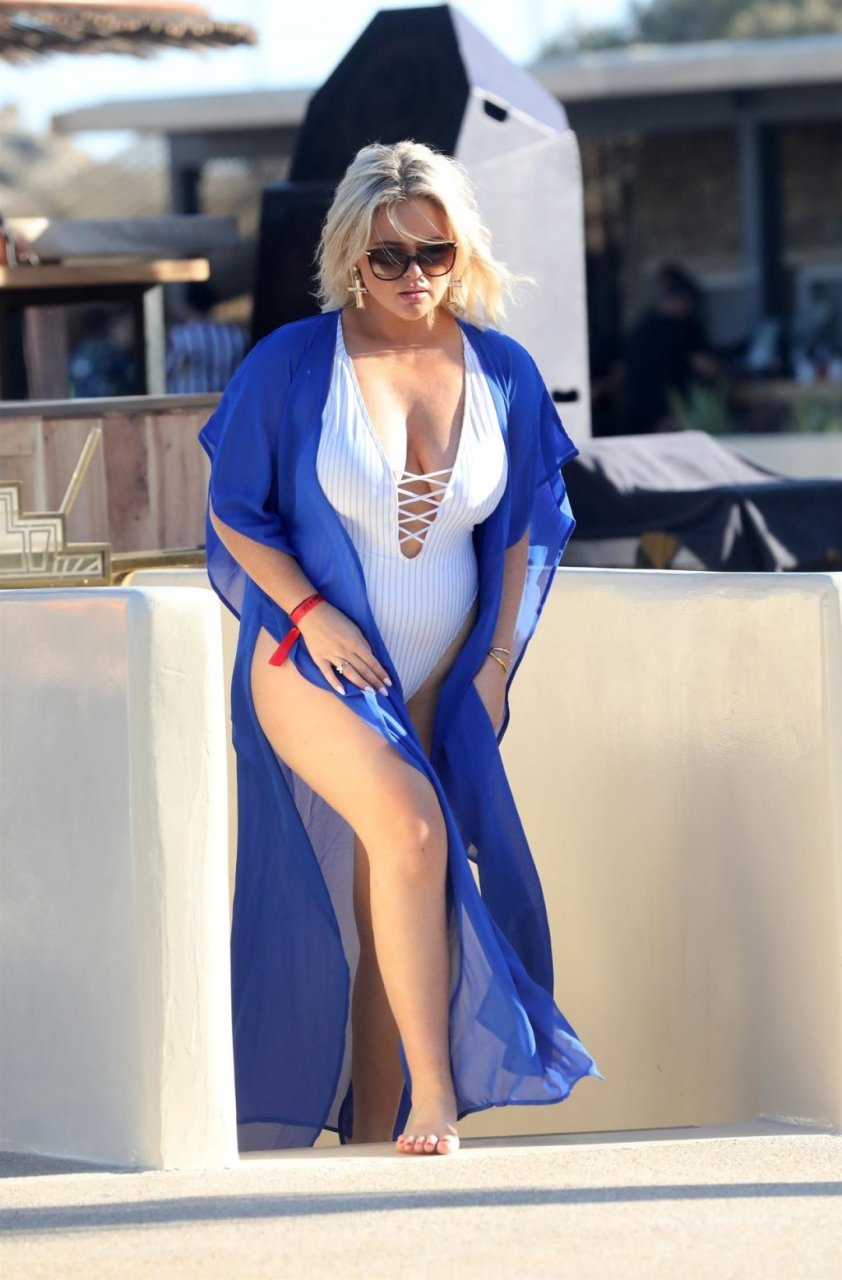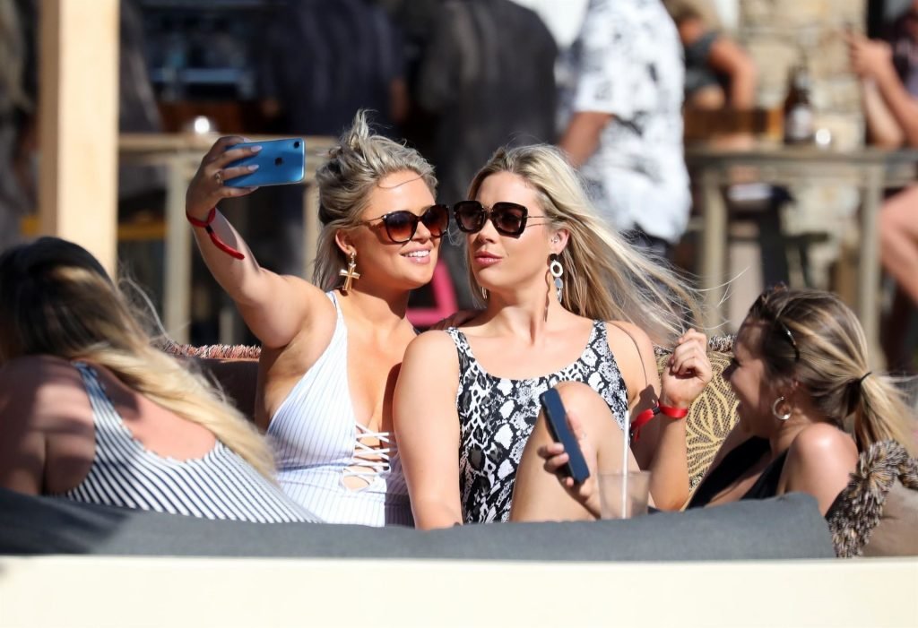 Английская актриса и звезда The Fappening Эмили Этак весело проводит время на солнце со своими подругами в баре Santana на острове Миконос, 08/09/2019.