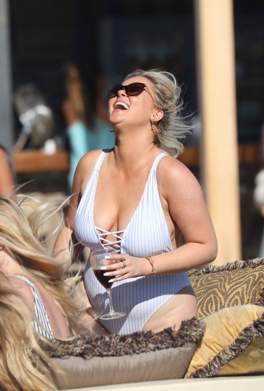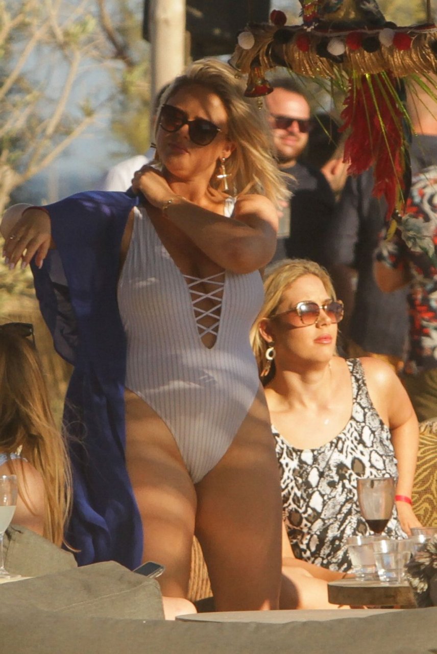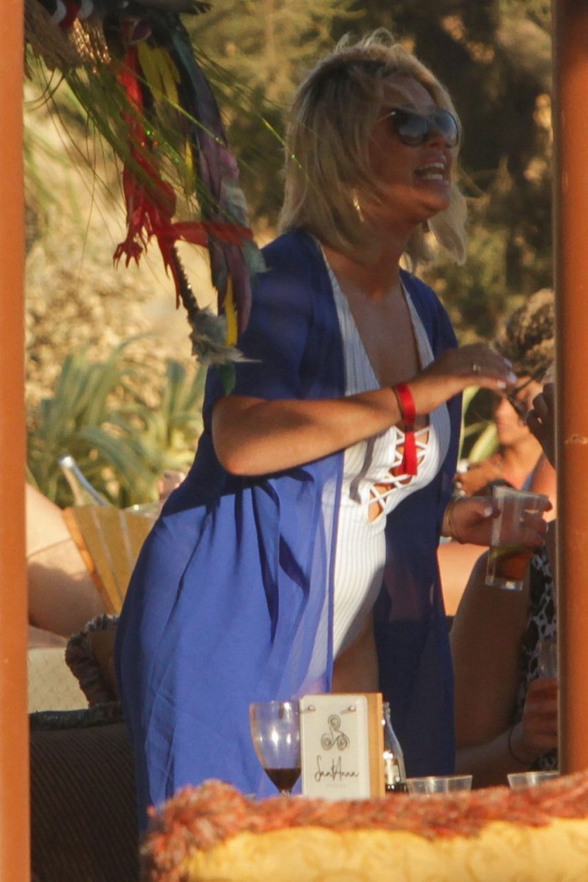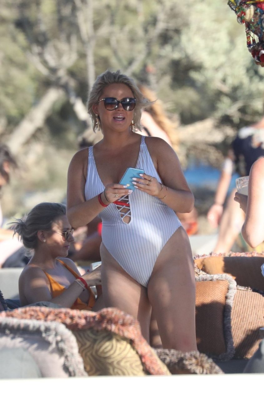 Английская актриса и звезда The Fappening Эмили Этак весело проводит время на солнце со своими подругами в баре Santana на острове Миконос, 08/09/2019.