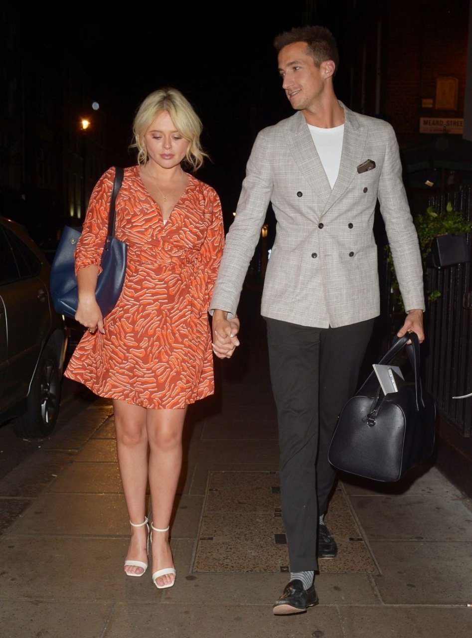 Актриса и звезда The Fappening Эмили Этак присутствует на запуске телешоу Adulting в оранжевом наряде в отеле Soho в Лондоне, 24.06.2019.