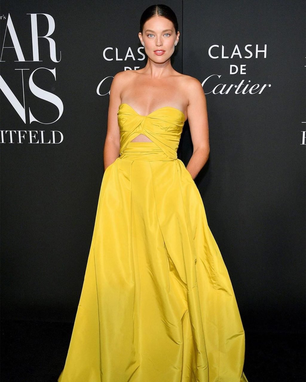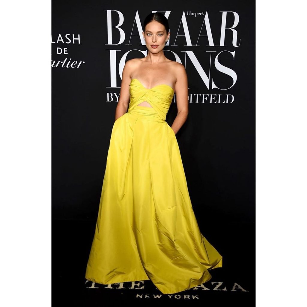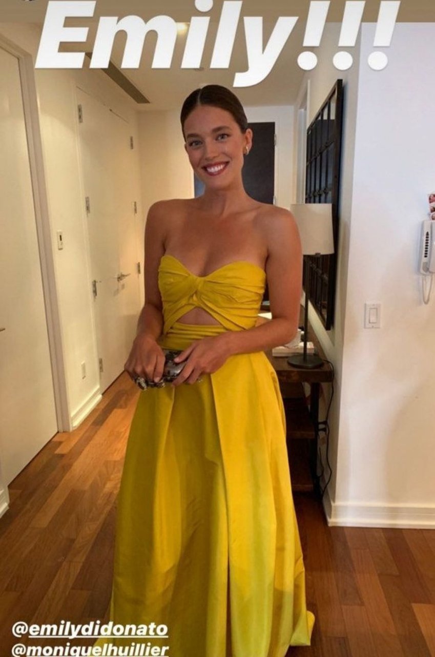 Американская супермодель Эмили ДиДонато была сфотографирована в желтом платье на вечеринке Harper’s Bazaar ICONS 2019 в отеле The Plaza в Нью-Йорке, 06.09.2019.