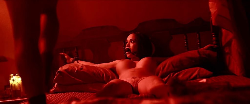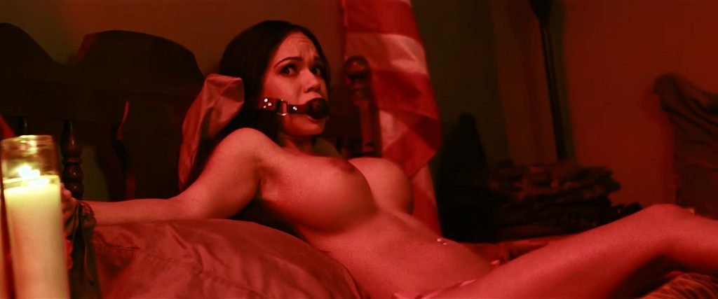 Смотрите голую сцену Эмили Мена из фильма “Rottentail” (2018), где вы можете увидеть эту пышногрудую латиноамериканскую актрису, лежащую в кровати, у неё связаны руки, и во рту кляп-шарик! Какое-то существо стоит рядом с кроватью, угрожая Эмили своим маленьким членом и спустя некоторое время трахает её!