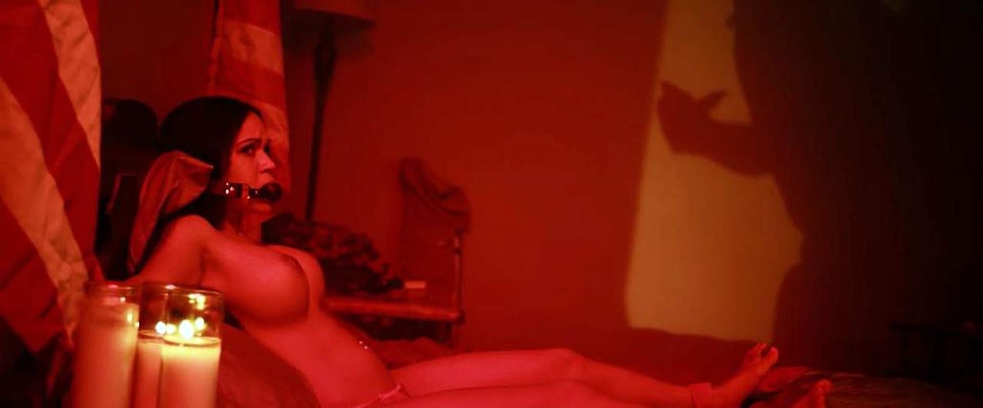 Смотрите голую сцену Эмили Мена из фильма “Rottentail” (2018), где вы можете увидеть эту пышногрудую латиноамериканскую актрису, лежащую в кровати, у неё связаны руки, и во рту кляп-шарик! Какое-то существо стоит рядом с кроватью, угрожая Эмили своим маленьким членом и спустя некоторое время трахает её!