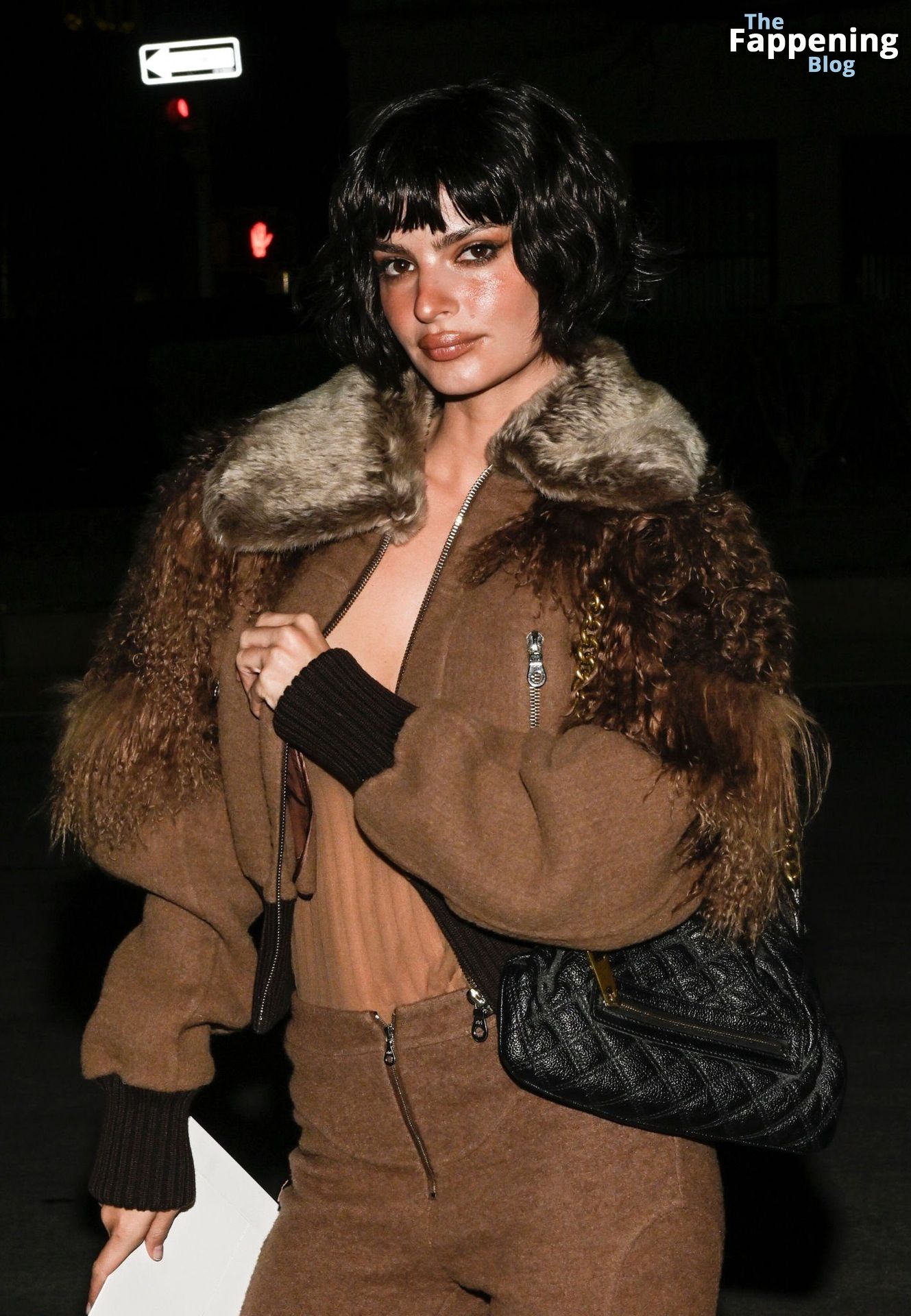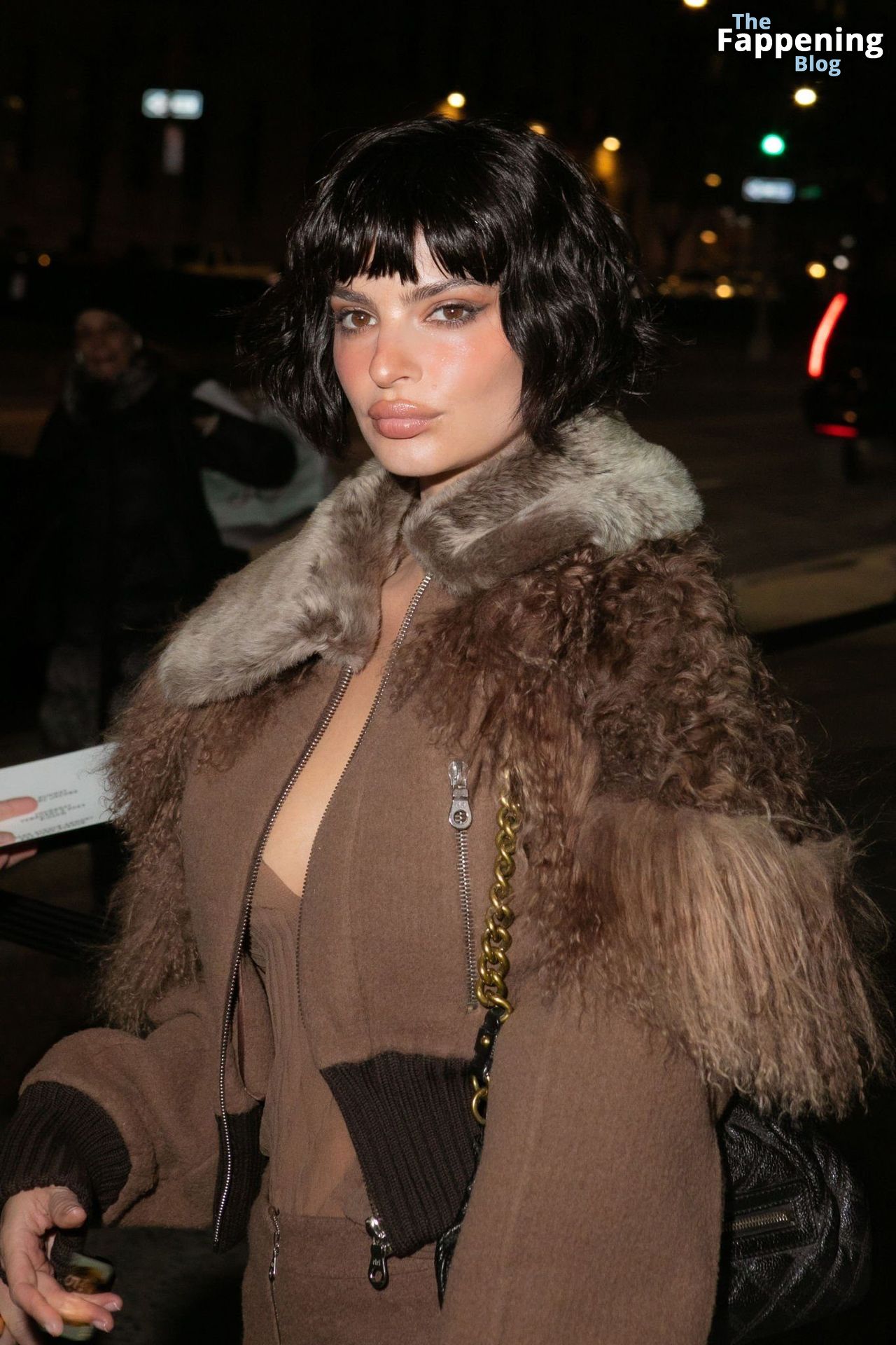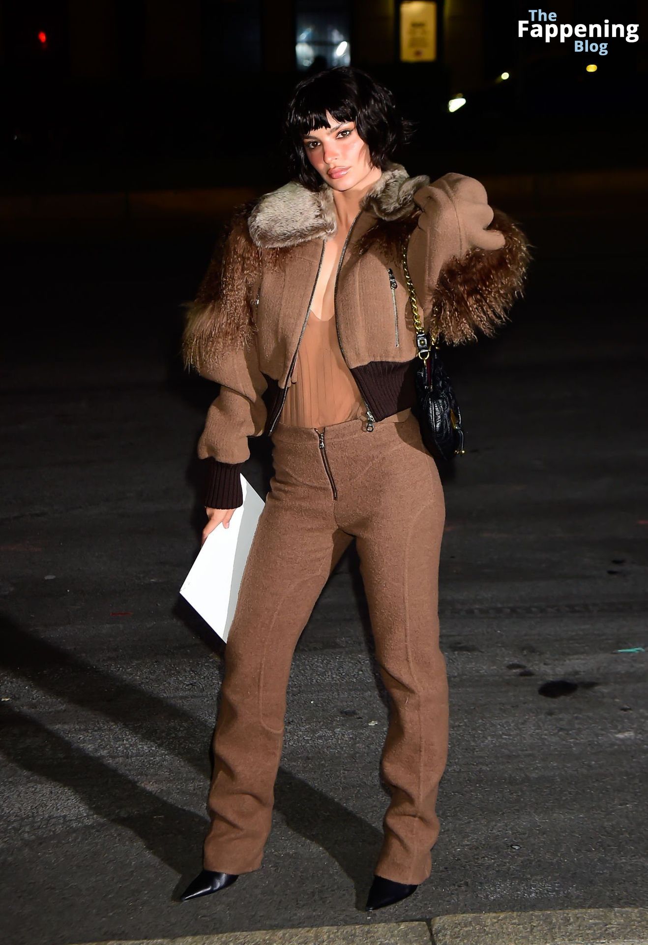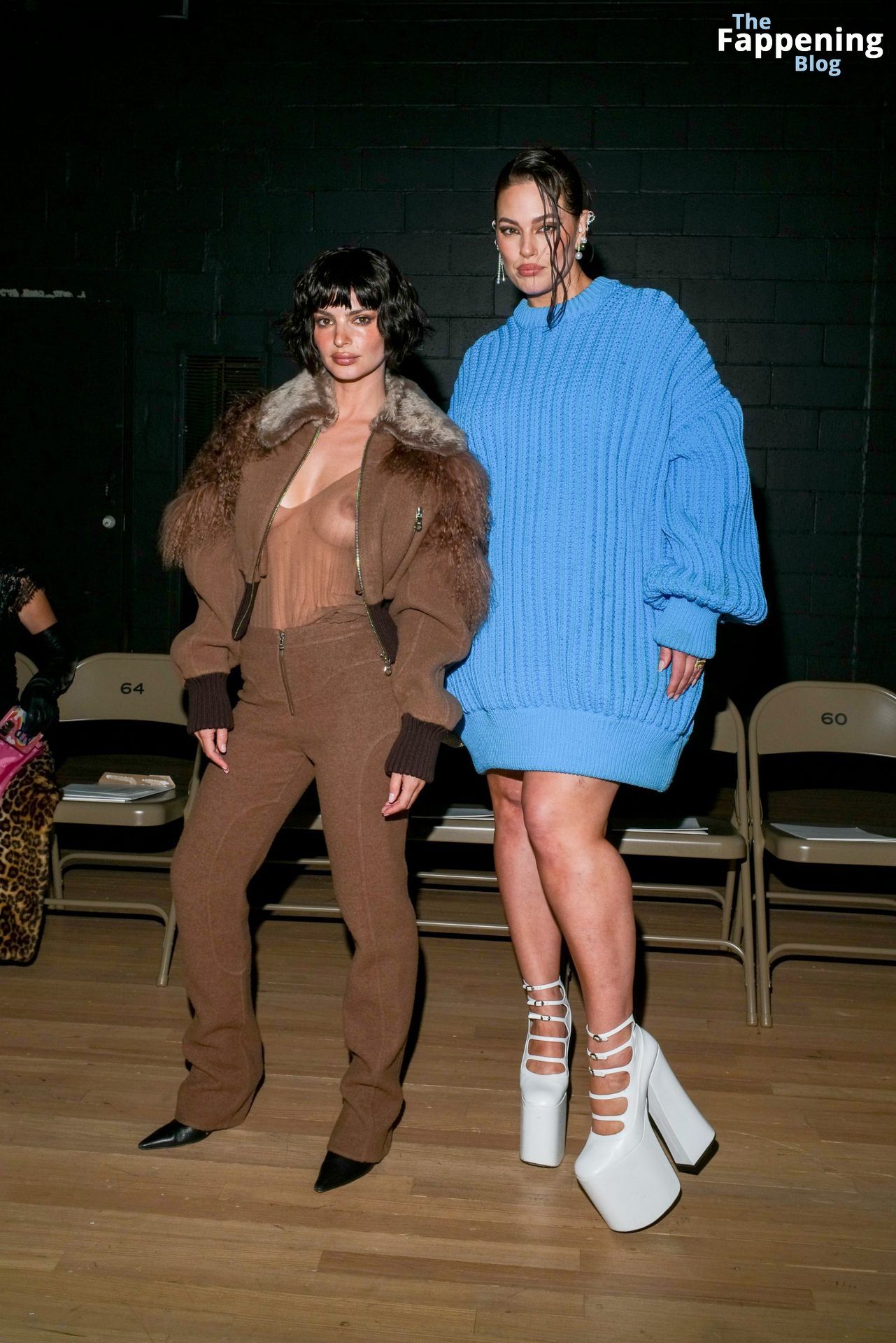 Эмили Ратаковски показывает свои сексуальные груди без бюстгальтера и соски в прозрачном топе, посещая показ Marc Jacobs в Нью-Йорке