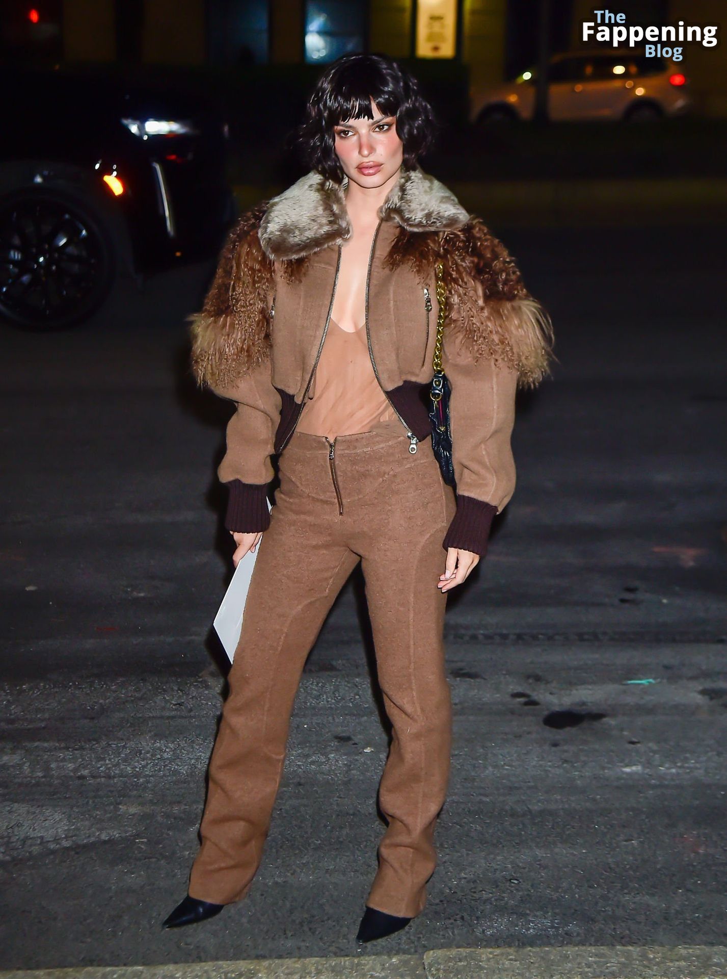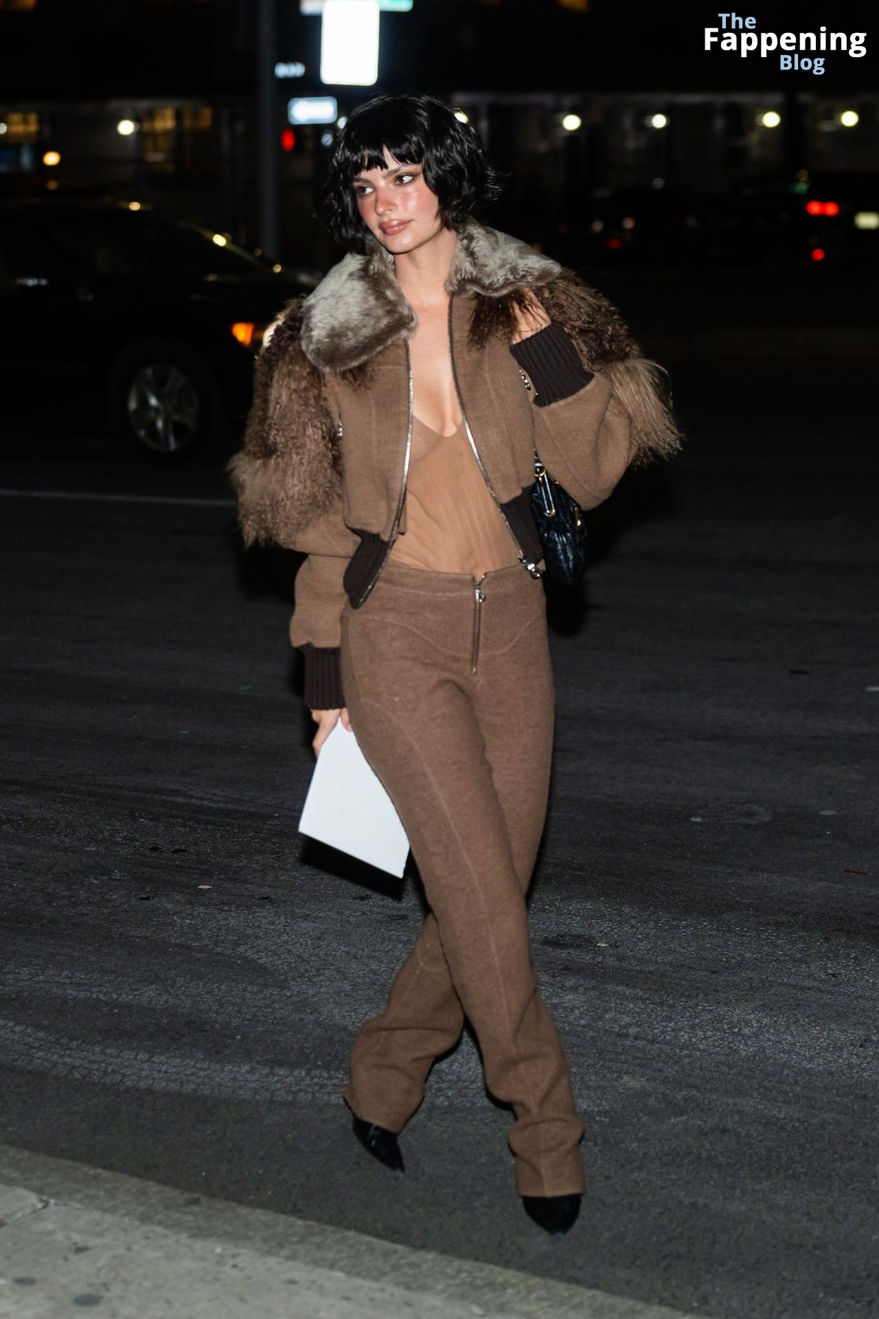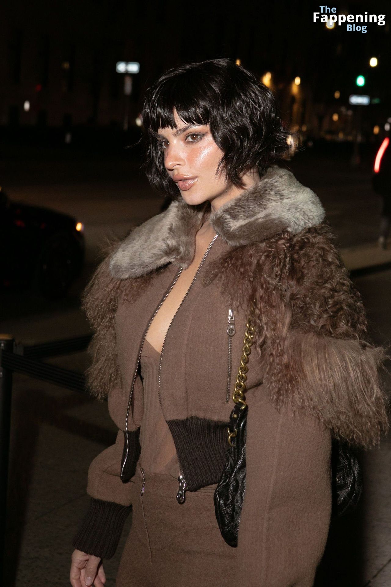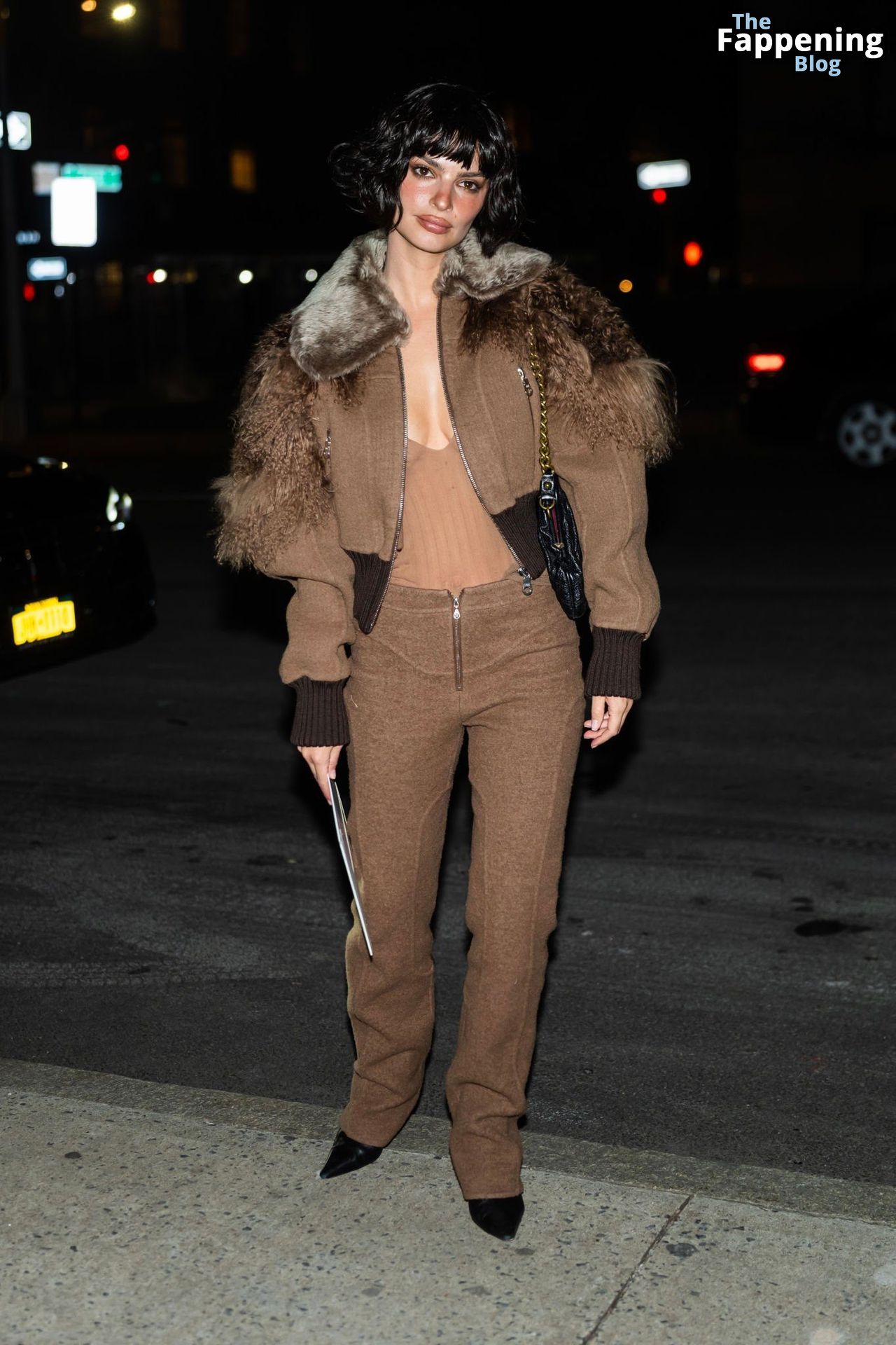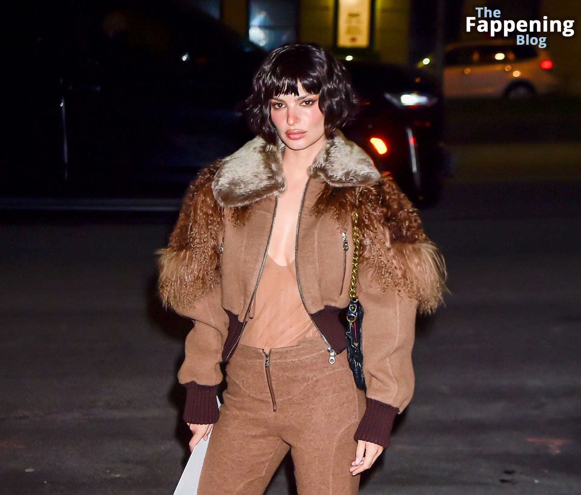 Эмили Ратаковски показывает свои сексуальные груди без бюстгальтера и соски в прозрачном топе, посещая показ Marc Jacobs в Нью-Йорке