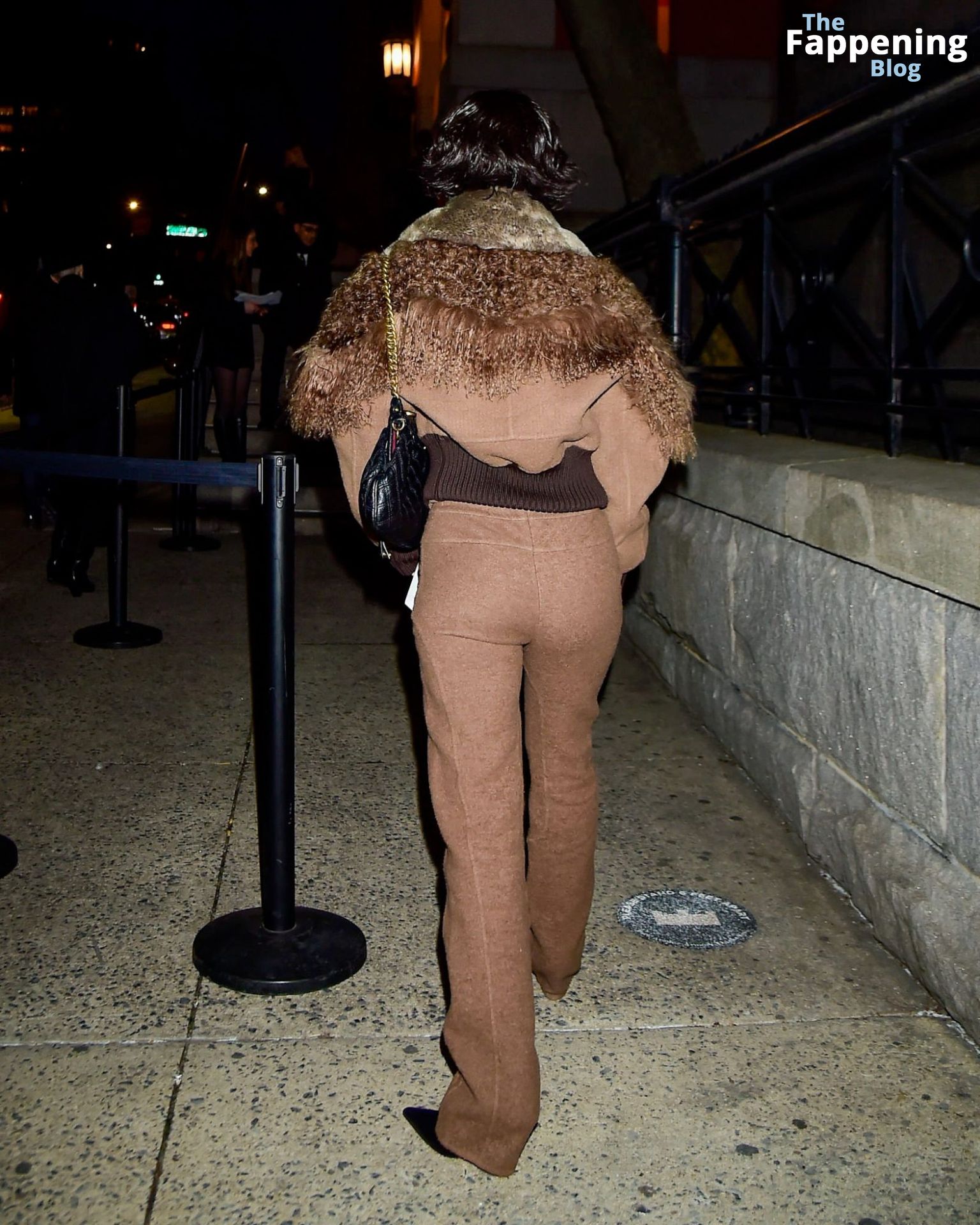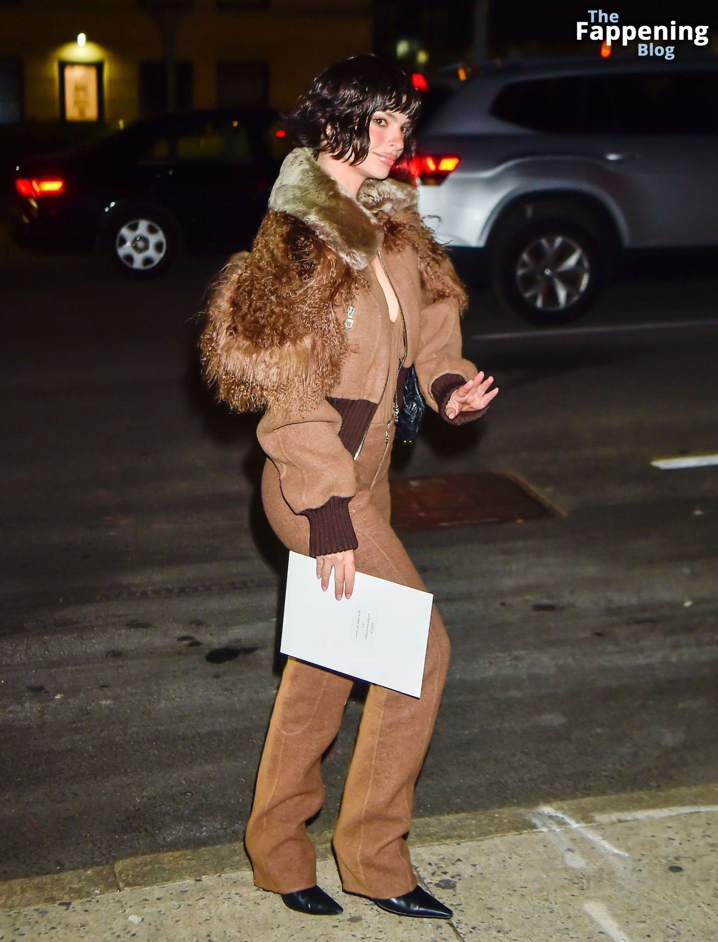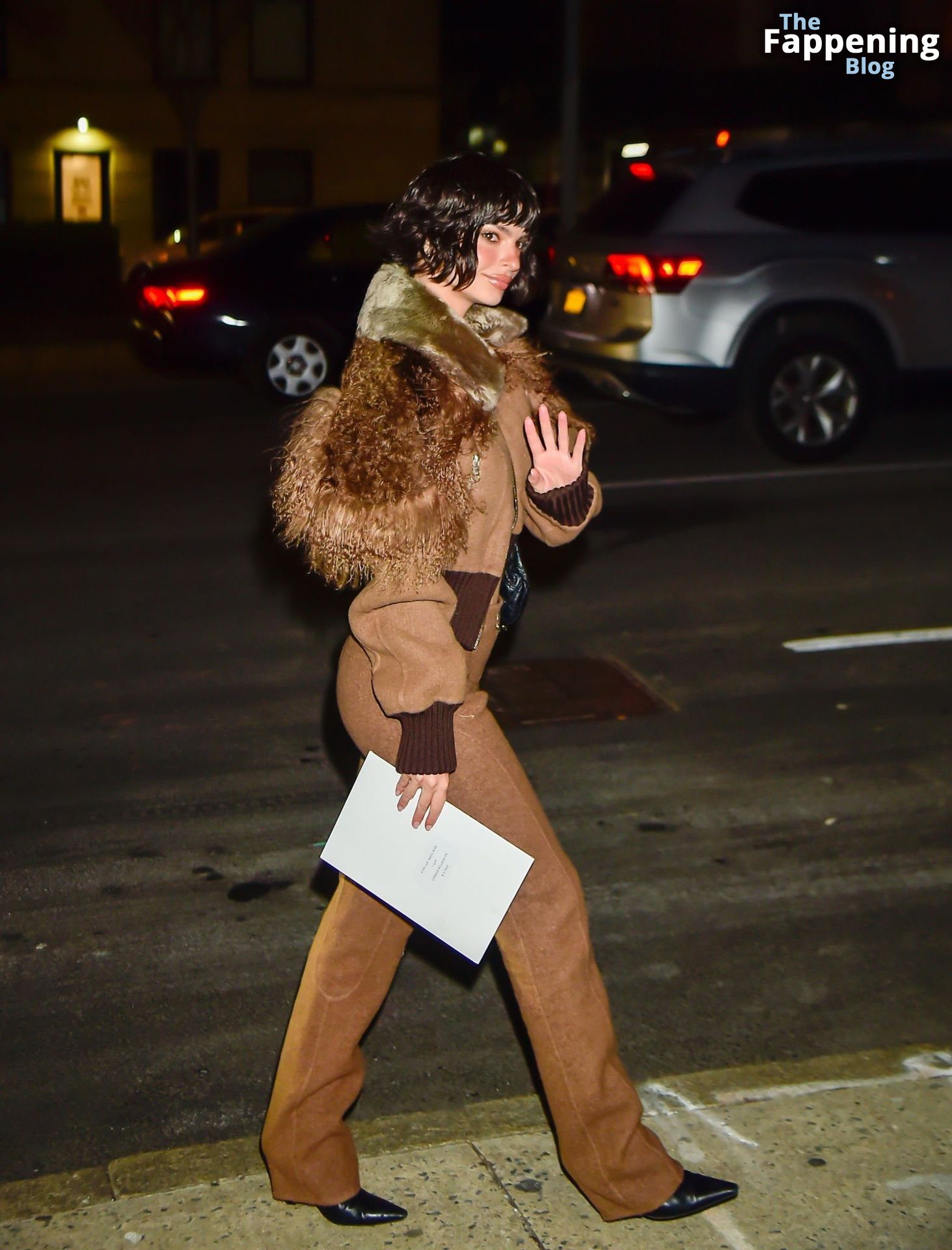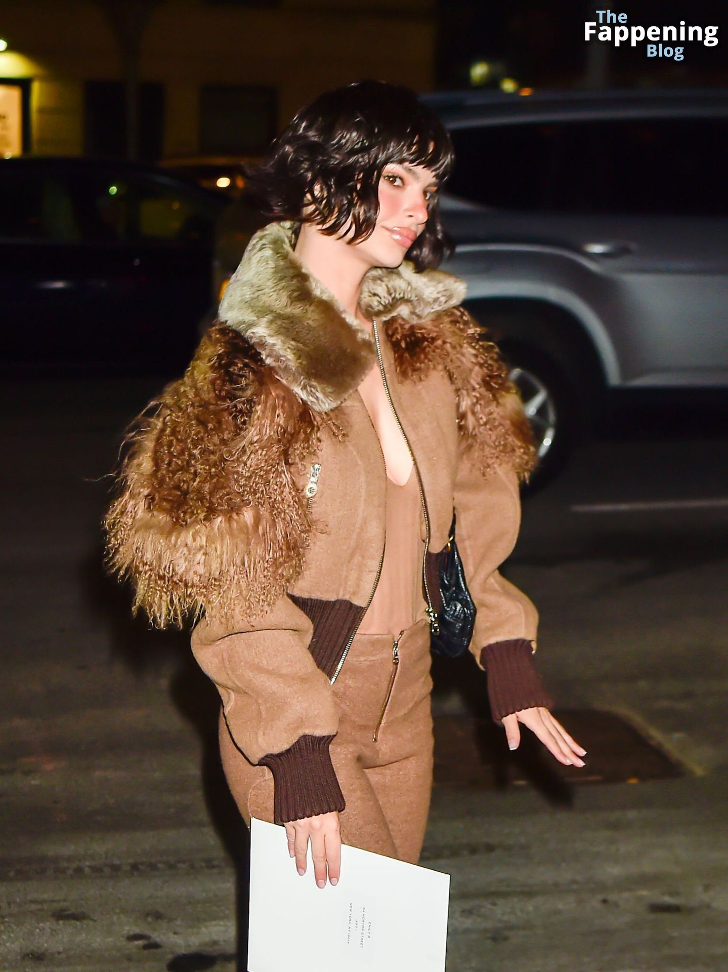Эмили Ратаковски показывает свои сексуальные груди без бюстгальтера и соски в прозрачном топе, посещая показ Marc Jacobs в Нью-Йорке
