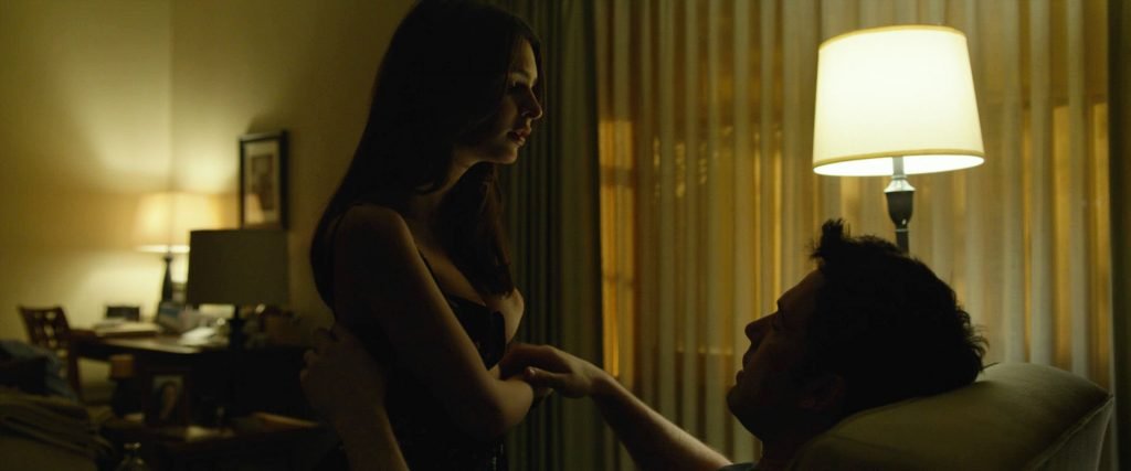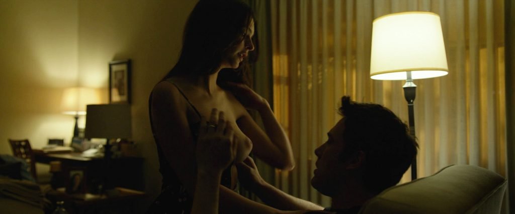 Эмили расстегивает топ, чтобы заняться с Эффлеком, и мы видим краткий взгляд на её потрясающие груди.