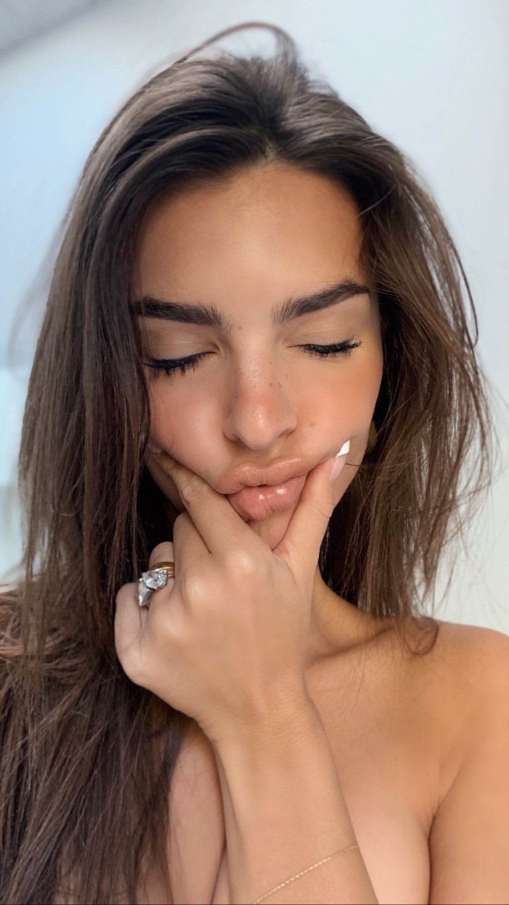Потрясающая супермодель Эмили Ратаковски позирует топлесс, демонстрируя новые серьги от её модного бренда «Inamorata» (2019).