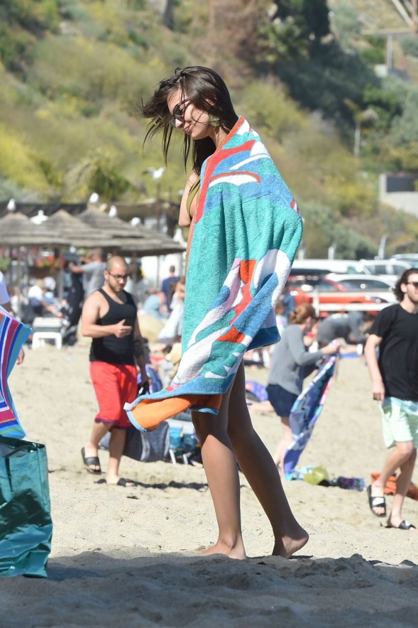 Эмили Ратаковски проводит время на пляже с подругой в Малибу, 23.04.2019. 27-летняя модель была в зелёном бикини от своего бренда Inamorata. Дуэт провёл 3 часа, наслаждаясь солнцем, и в какой-то момент к ним подошёл молодой парень просто поболтать с Эмили и её подругой.