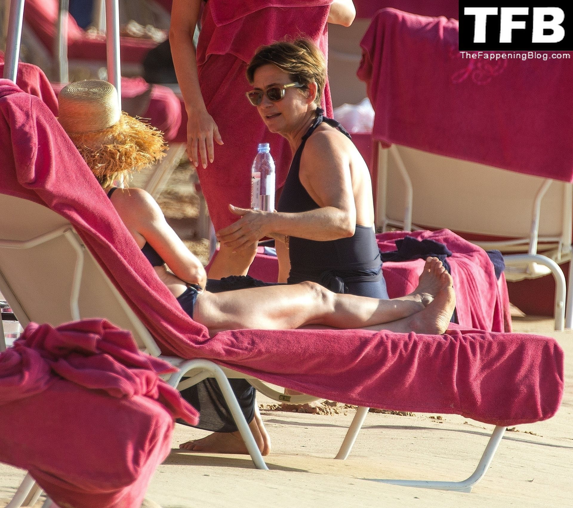 Телеведущая Эмма Форбс демонстрирует свою сексуальную фигуру в черном купальнике во время солнечного отпуска на пляже отеля Sandy Lane на Барбадосе, 22.12.2022.