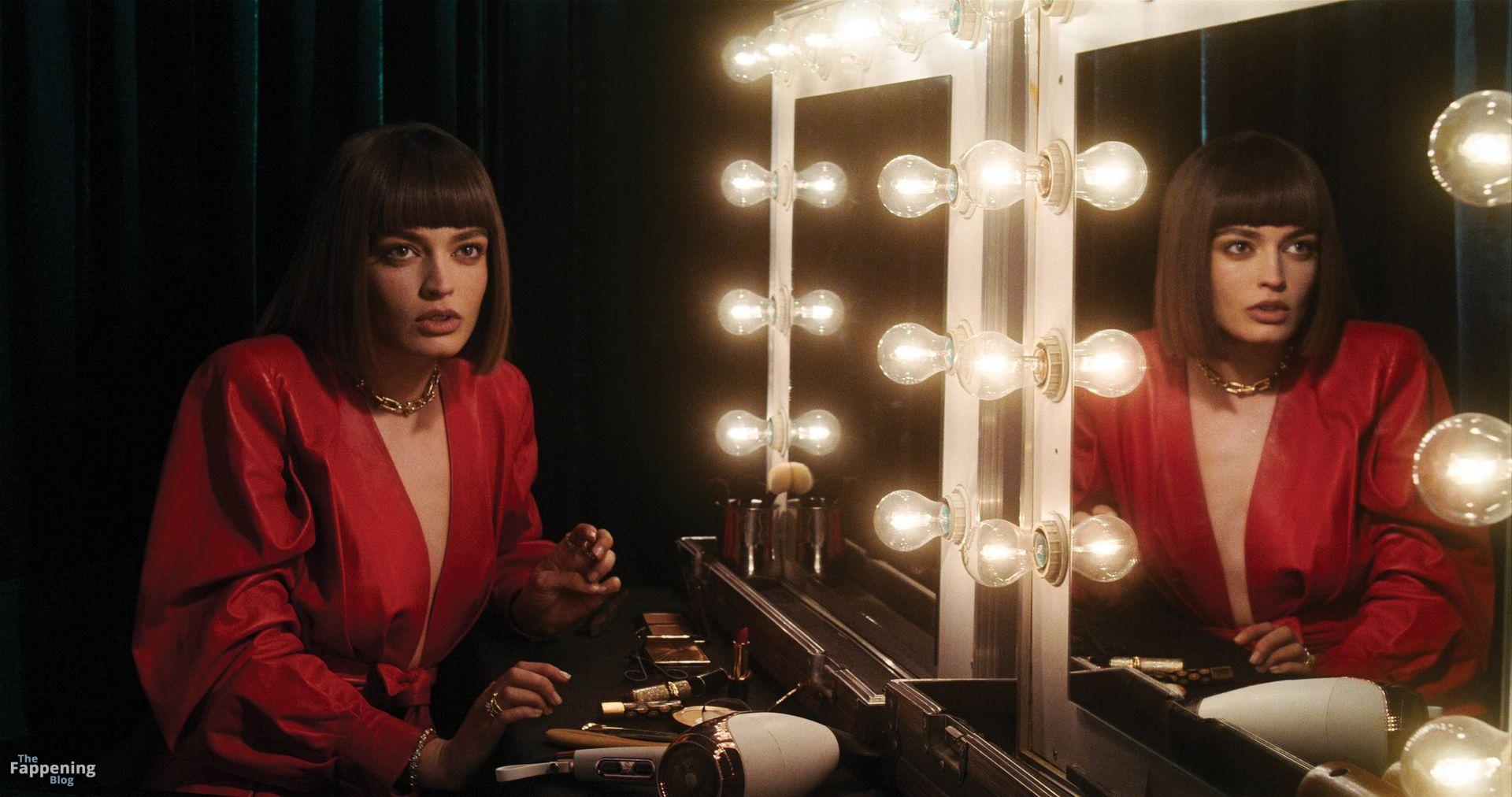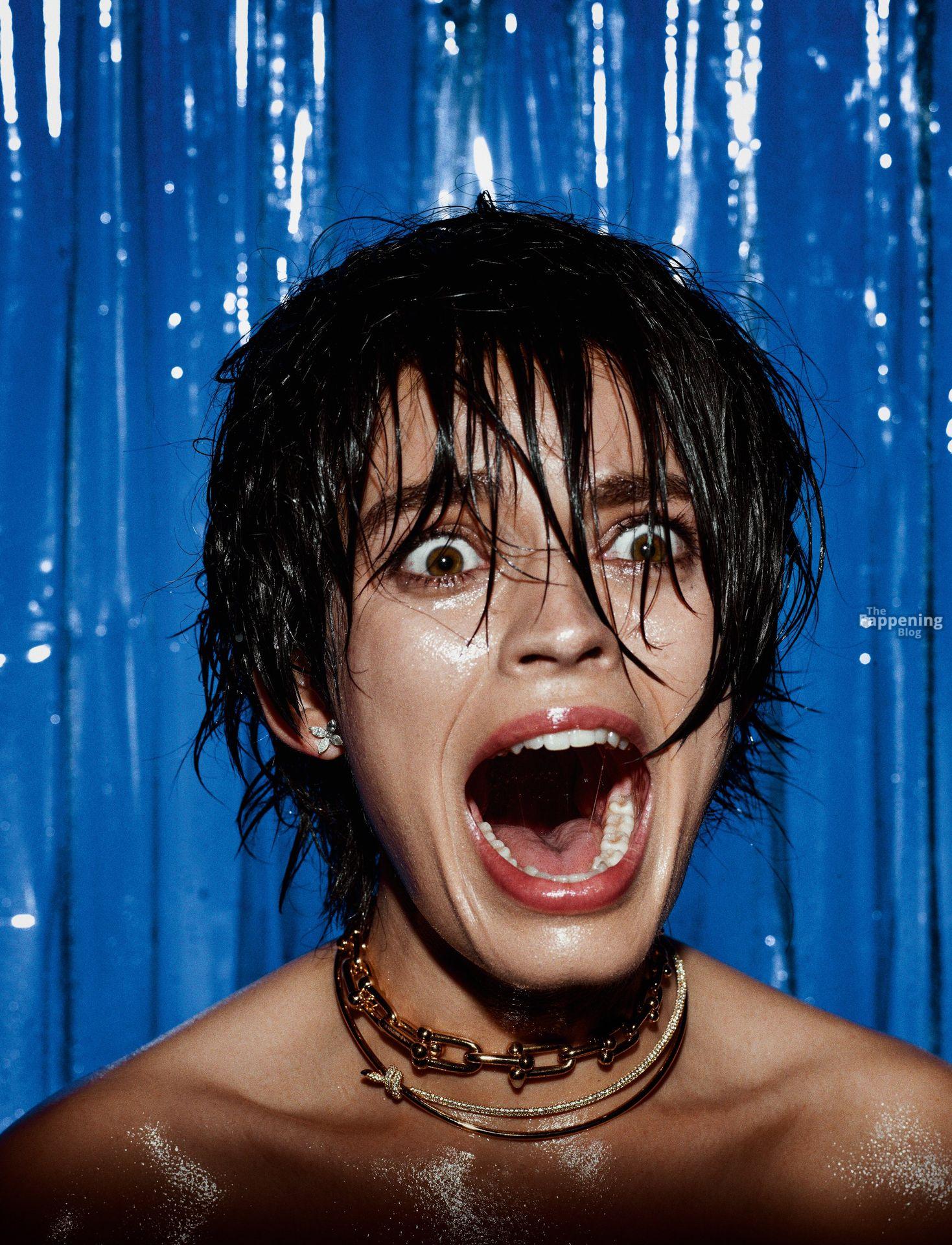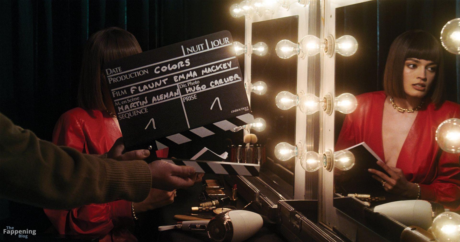 Французско-британская актриса Эмма Маки позировала для съемки журнала Flaunt 2022 года, сделанной Мартином Алехманом, в прозрачном боди, которое обнажало её голые груди.