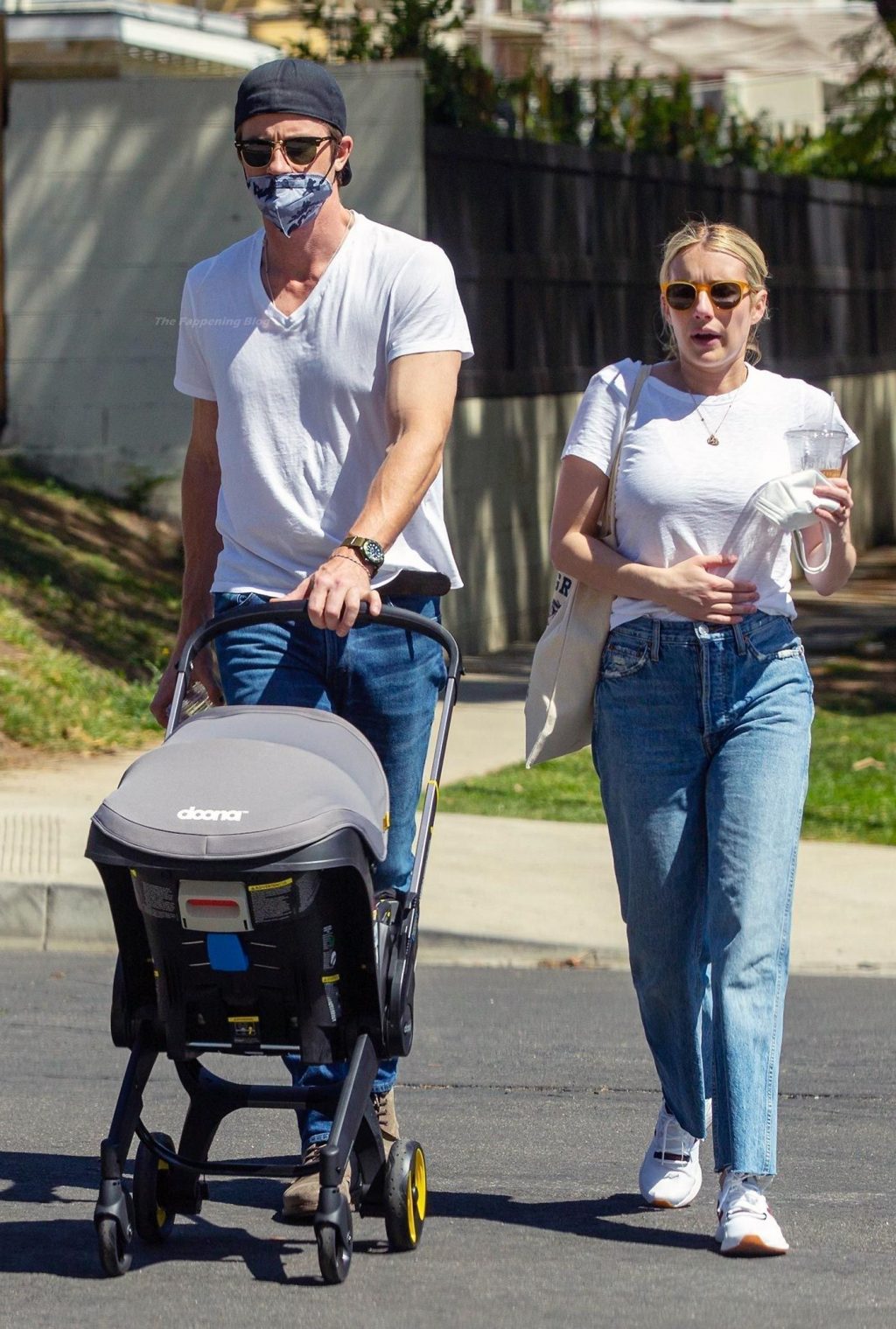Here guys, are a few more recent photos of miss Emma Roberts! She showed off her big tits when she went on a walk completely braless! Some sneaky paparazzi caught Emma Roberts and her boyfriend Garrett Hedlund as they went for a walk in the park, dressed in matching white tees and blue jeans.