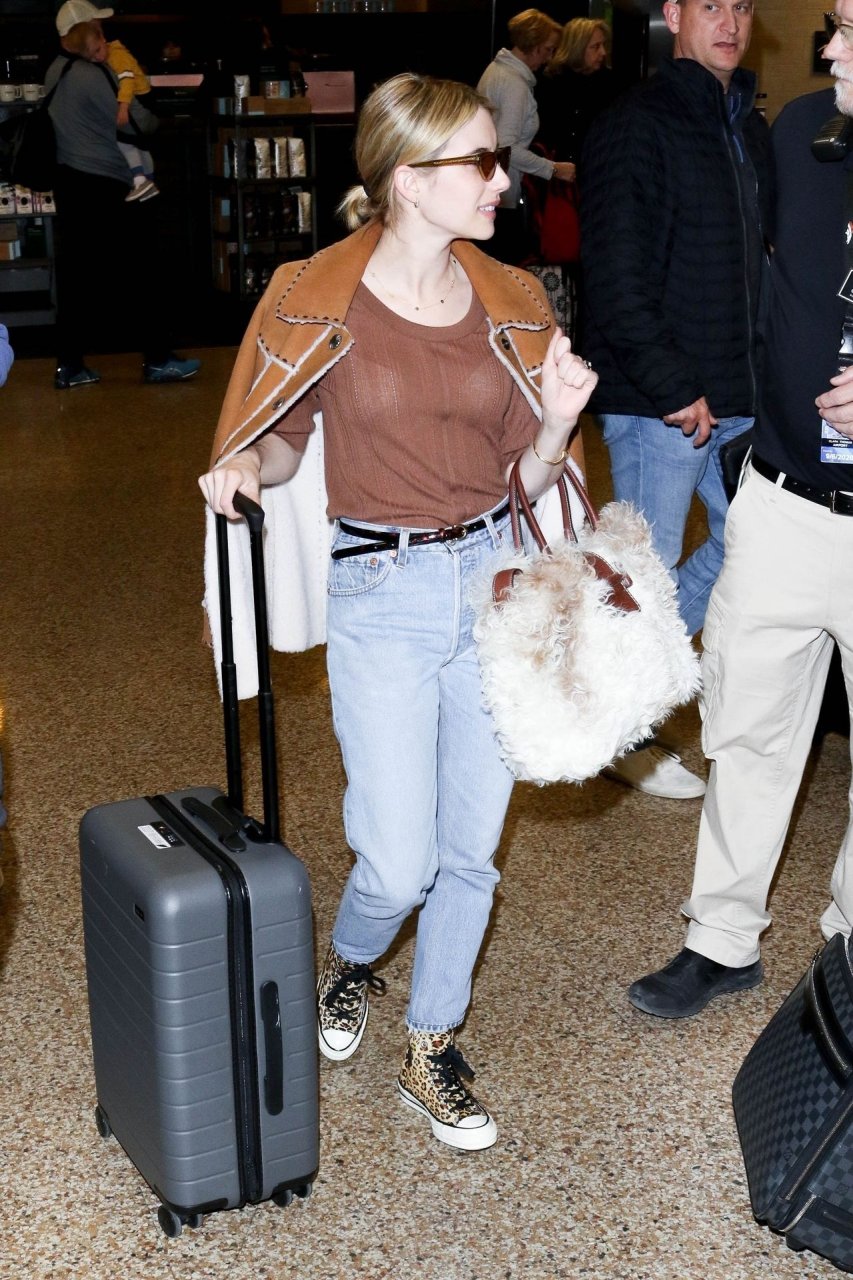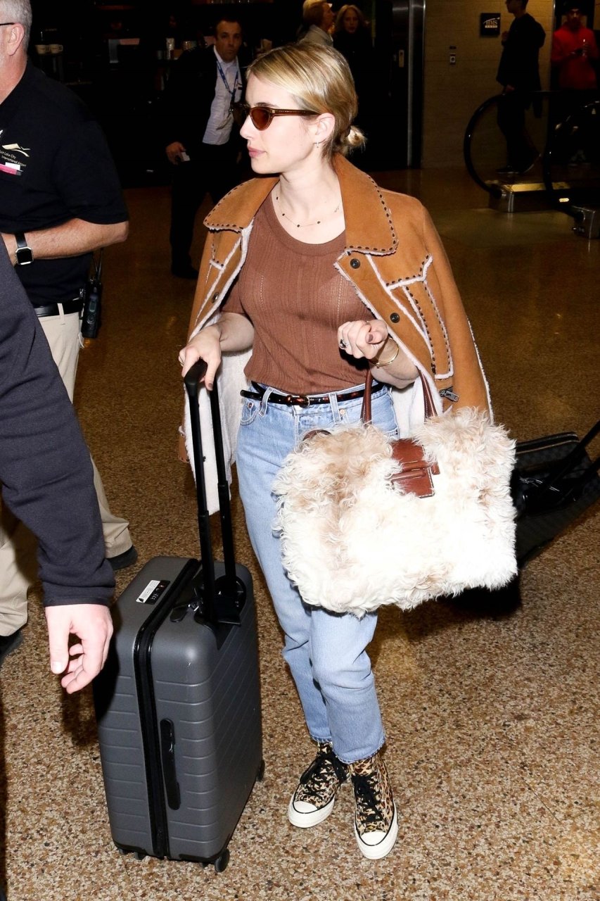Актриса Эмма Робертс стильно прибывает в аэропорт Солт-Лейк-Сити на кинофестиваль Sundance в Солт-Лейк-Сити, штат Юта, 25.01.2019.