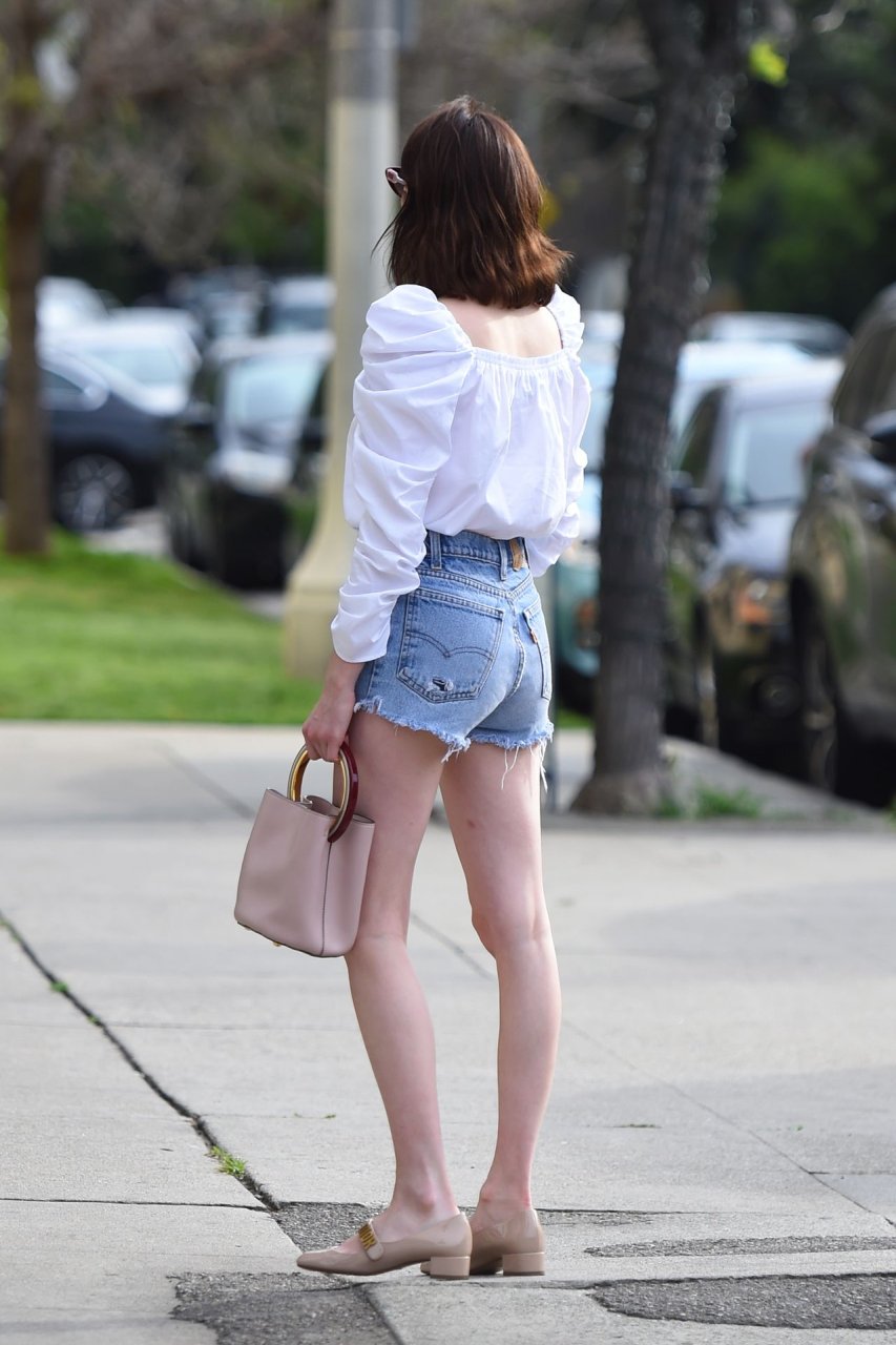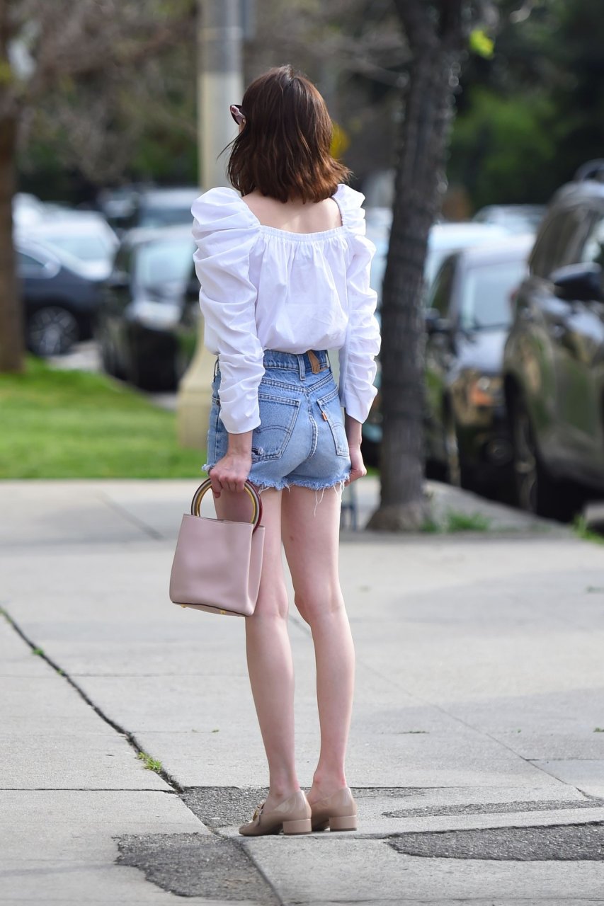 Актриса Эмма Робертс (28) была замечена на улице в джинсовых шортах, демонстрируя свои сексуальные ноги фотографам – Лос-Анджелес, 14.04.2019.