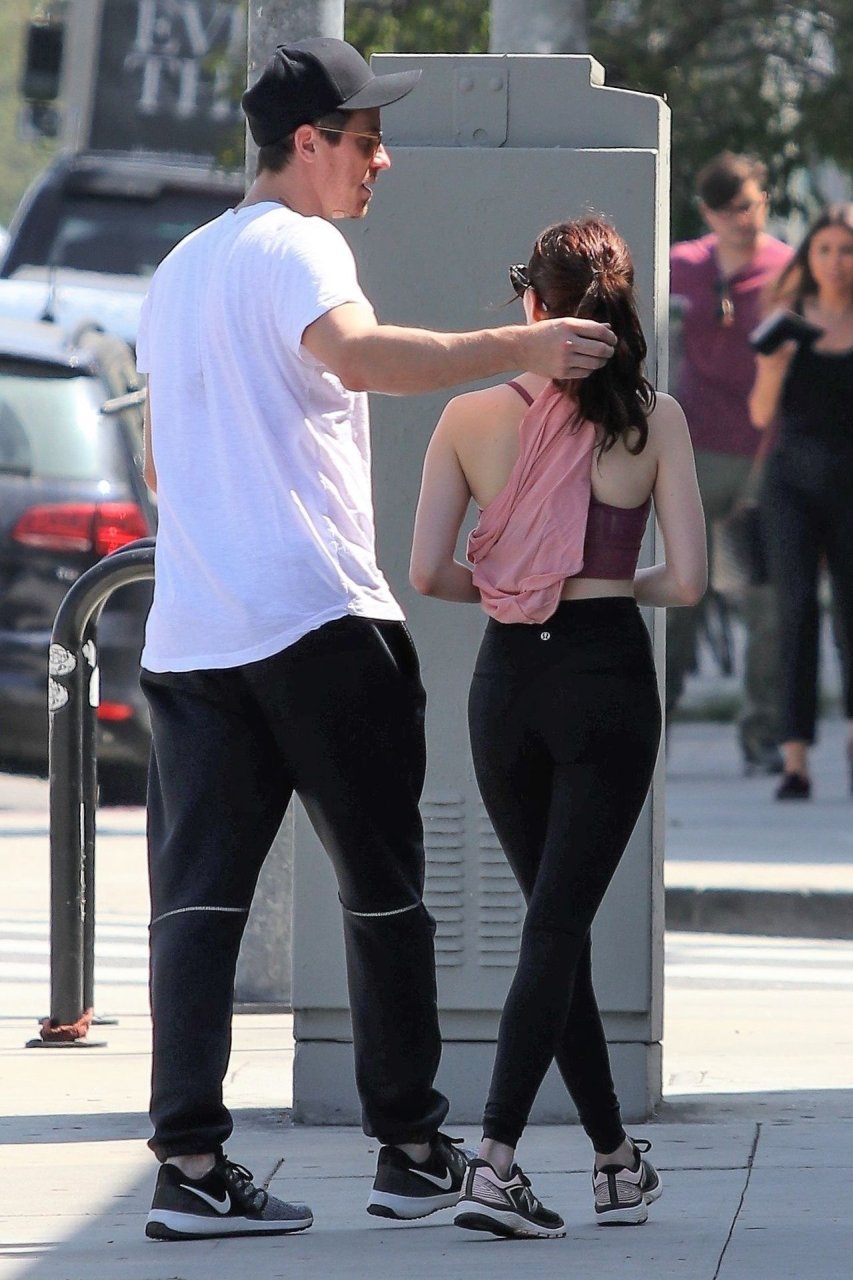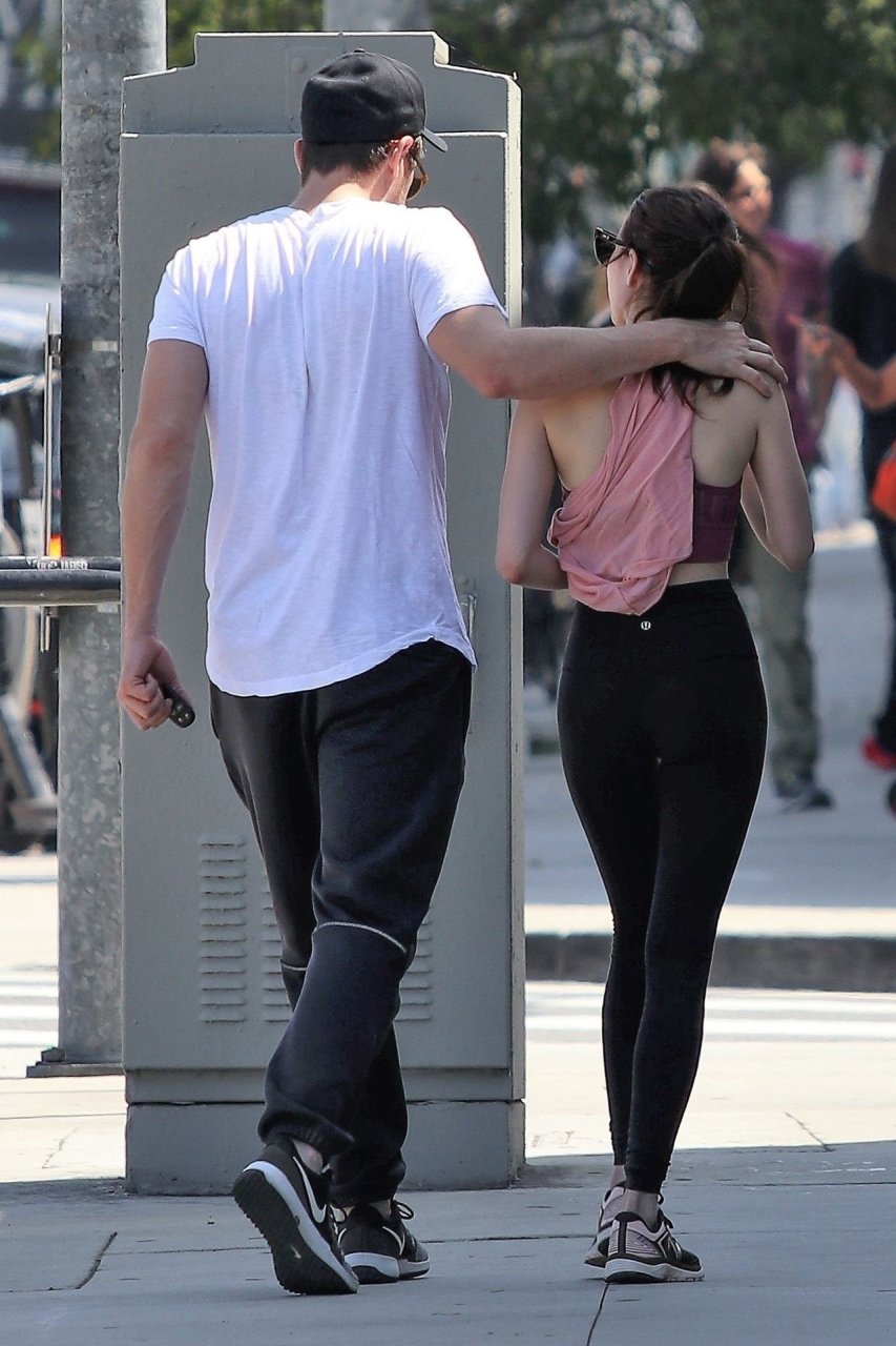 Актриса и певица Эмма Робертс и Гаррет Хедлунд демонстрируют проявления нежности после тренировки в спортзале в Лос-Анджелесе, 17.07.2019.