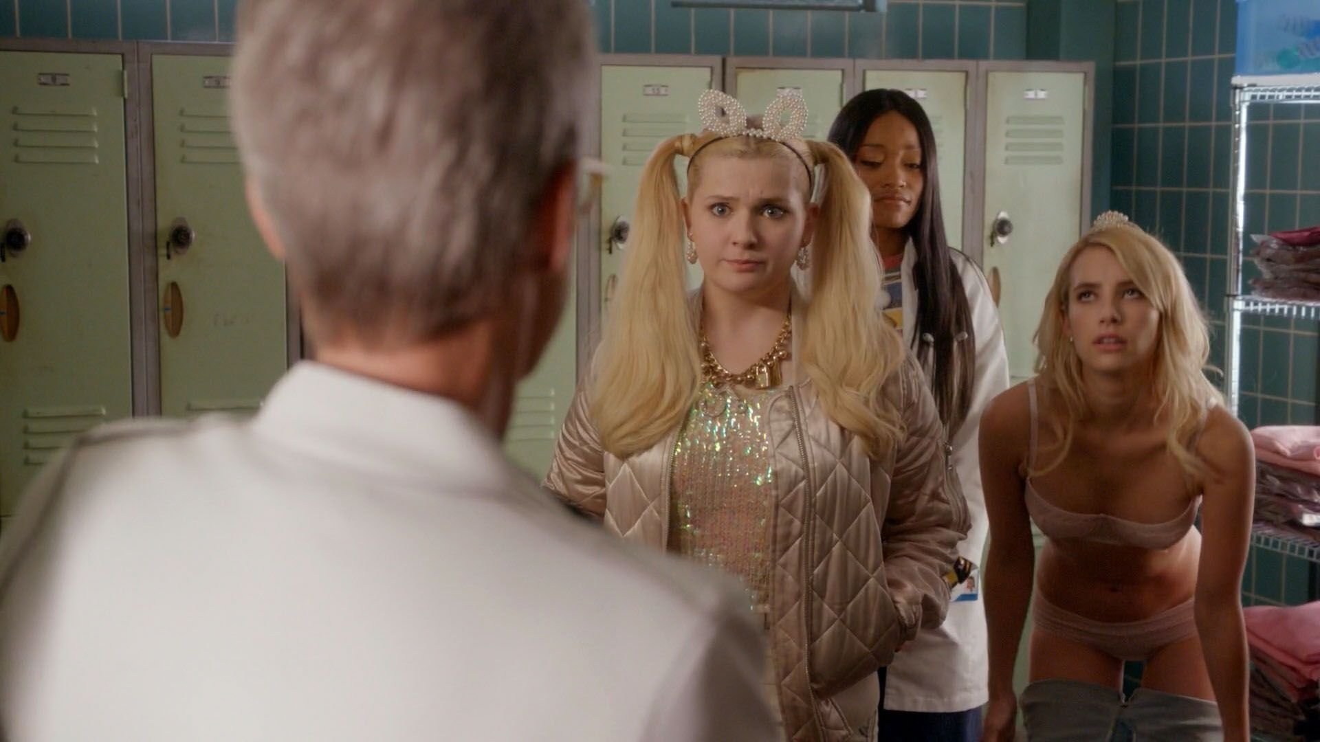 Новые скриншоты и клип с Эммой Робертс (в роли Шанель Оберлин) из Королевы ужаса (2016) s02e01. Эмма Робертс — американская актриса и певица. Возраст: 25 (10 февраля 1991).