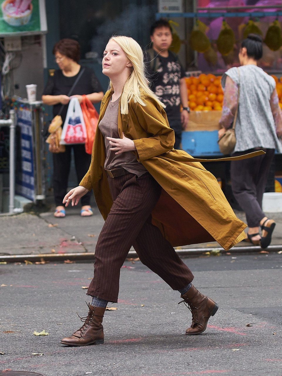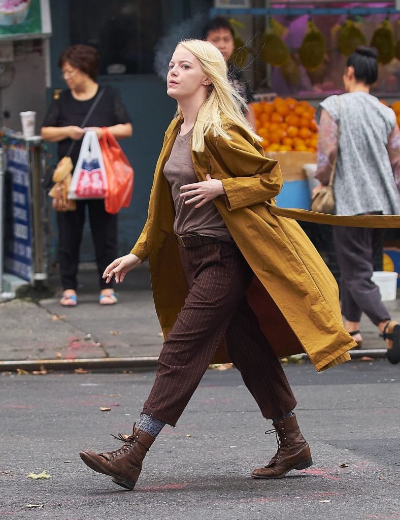 Оскароносная Эмма Стоун (28) курит сигарету во время съемок шоу Netflix Maniac в Нью-Йорке, 14.08.2017.