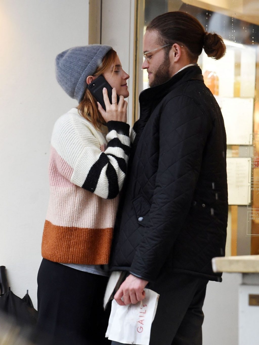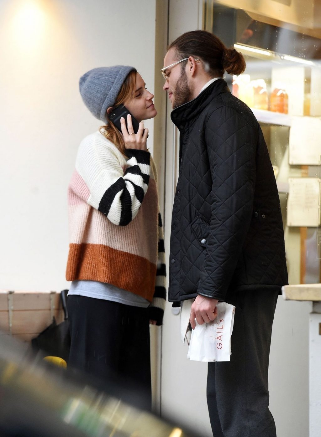 Эмма взяла сладкое угощение в пекарне Gail’s Bakery, когда они вместе с Лео Робинтоном выходили, и была замечена разговаривающей по телефону, а в один особенный момент пара разделила свое маленькое сладкое угощение с милым нежным моментом, прежде чем их проводили к ожидающему автомобилю.