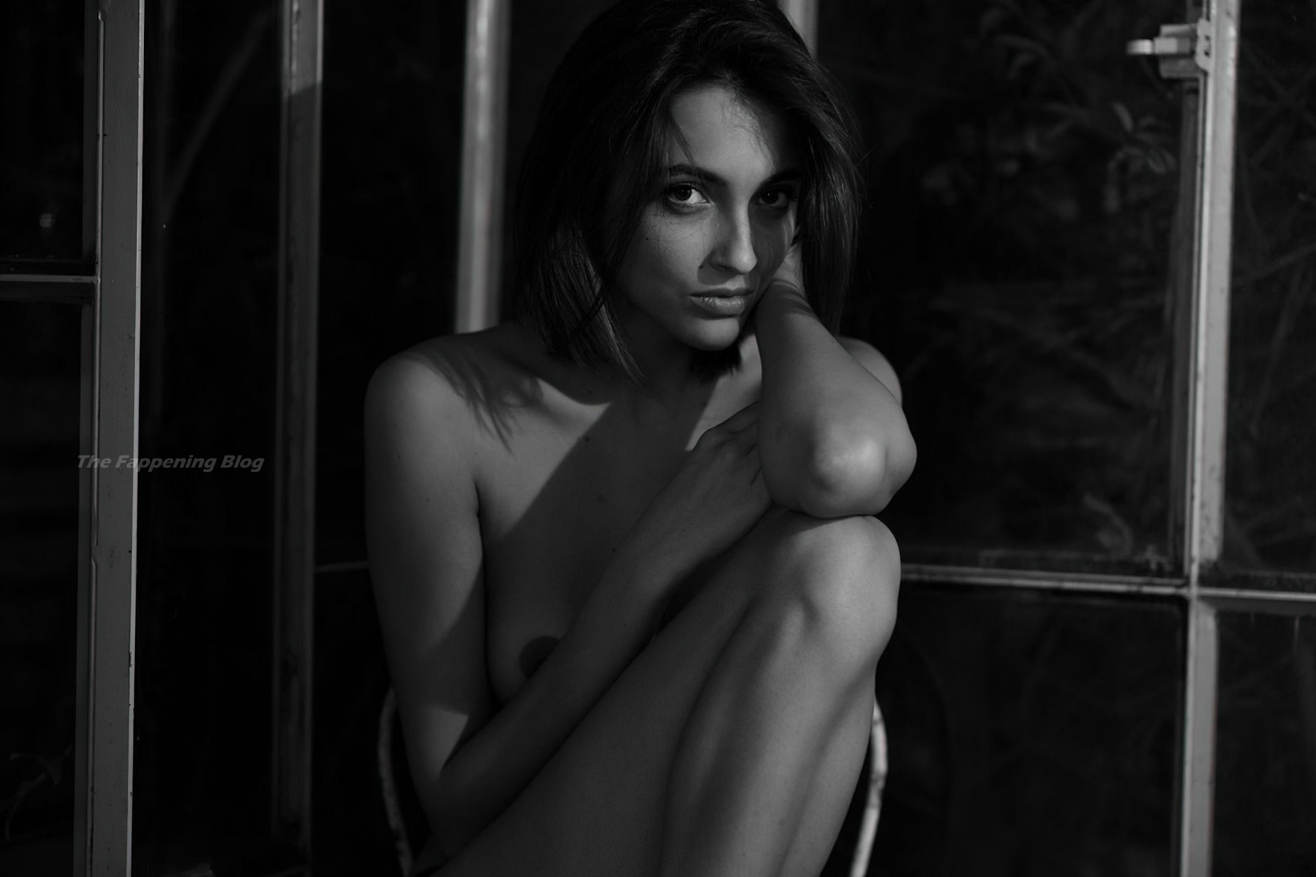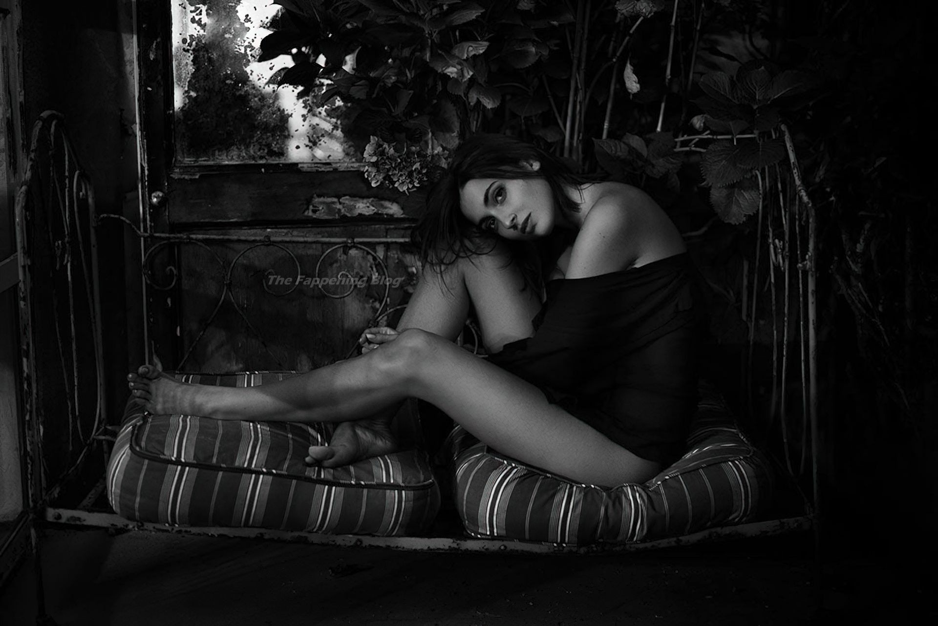 Вот черно-белые ню фотографии Эрики Альбонетти от Питера Коулсона (2017). Итальянская брюнетка демонстрирует свои маленькие груди и сексуальные ноги, позируя обнаженной в садовом домике.