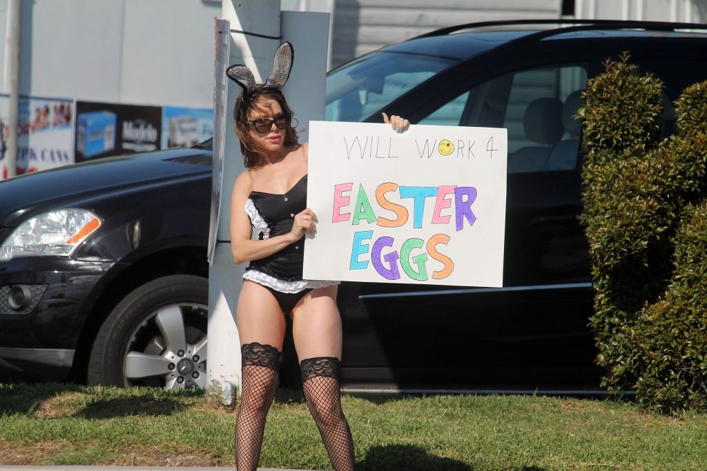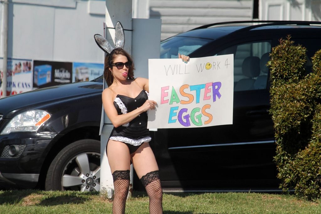 Эрика Джордан замечена во время съемок сексуального скетча с Пасхальным Кроликом в Лос-Анджелесе, 11.04.2017. Эрика Джордан — немецкая актриса (Swinging – 2015), рестлер, ведущая Playboy TV. Возраст — 34 года (родилась 18 мая 1982).