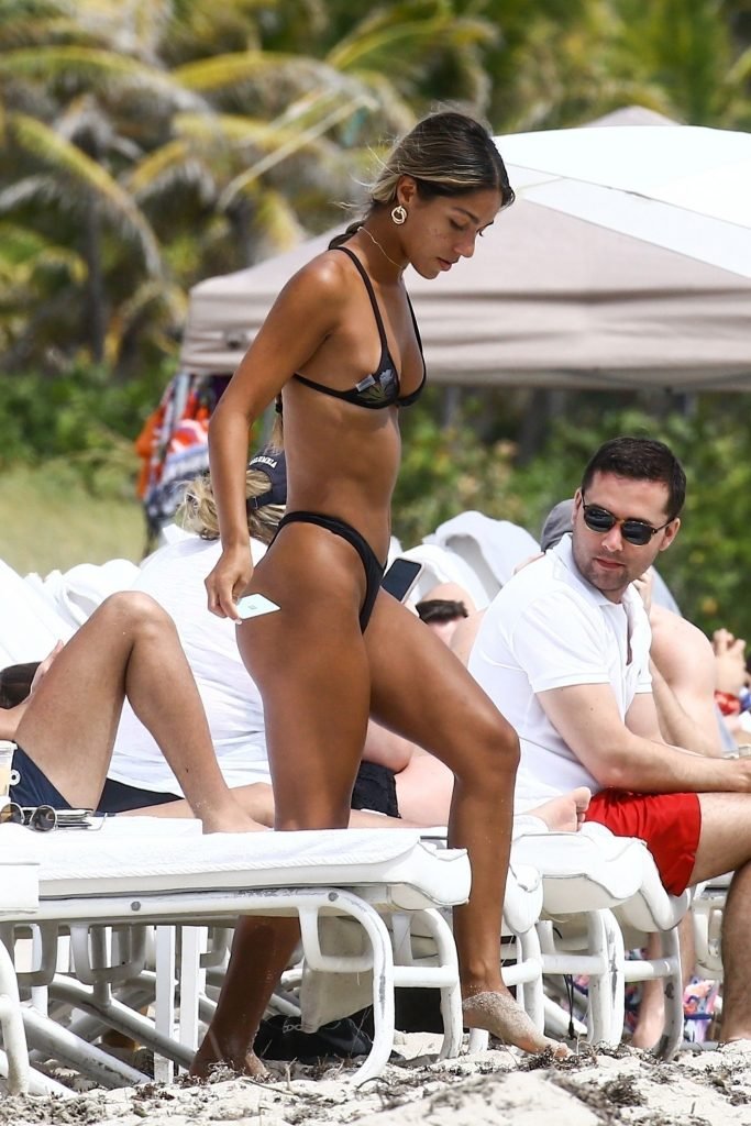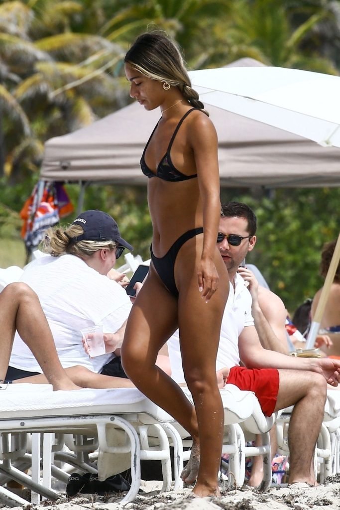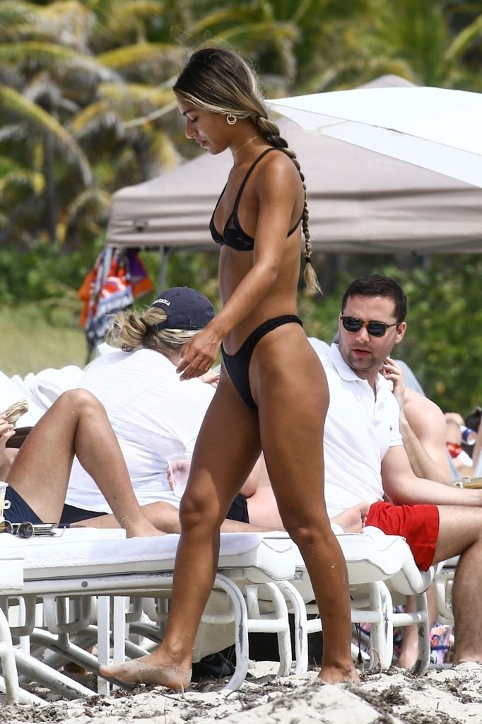 Эрика Уитон демонстрирует свою подтянутую фигуру в бикини во время отдыха на пляже в Майами, Флорида, 31.03.2018. Эрика отлично выглядит в маленьком черном бикини, наслаждаясь солнцем. Эрика Уитон — колумбийско-американская модель. Возраст — 20 лет.