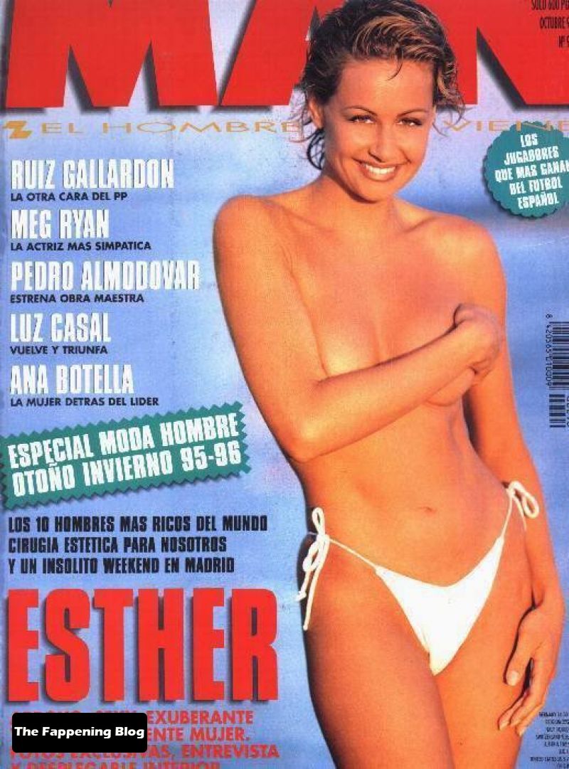Испанская актриса и модель Эстер Арройо представлена в новой коллекции обнажённых, топлесс фотографий из её эротических съёмок и архивов папарацци с пляжа, демонстрирующих её обнажённую грудь.