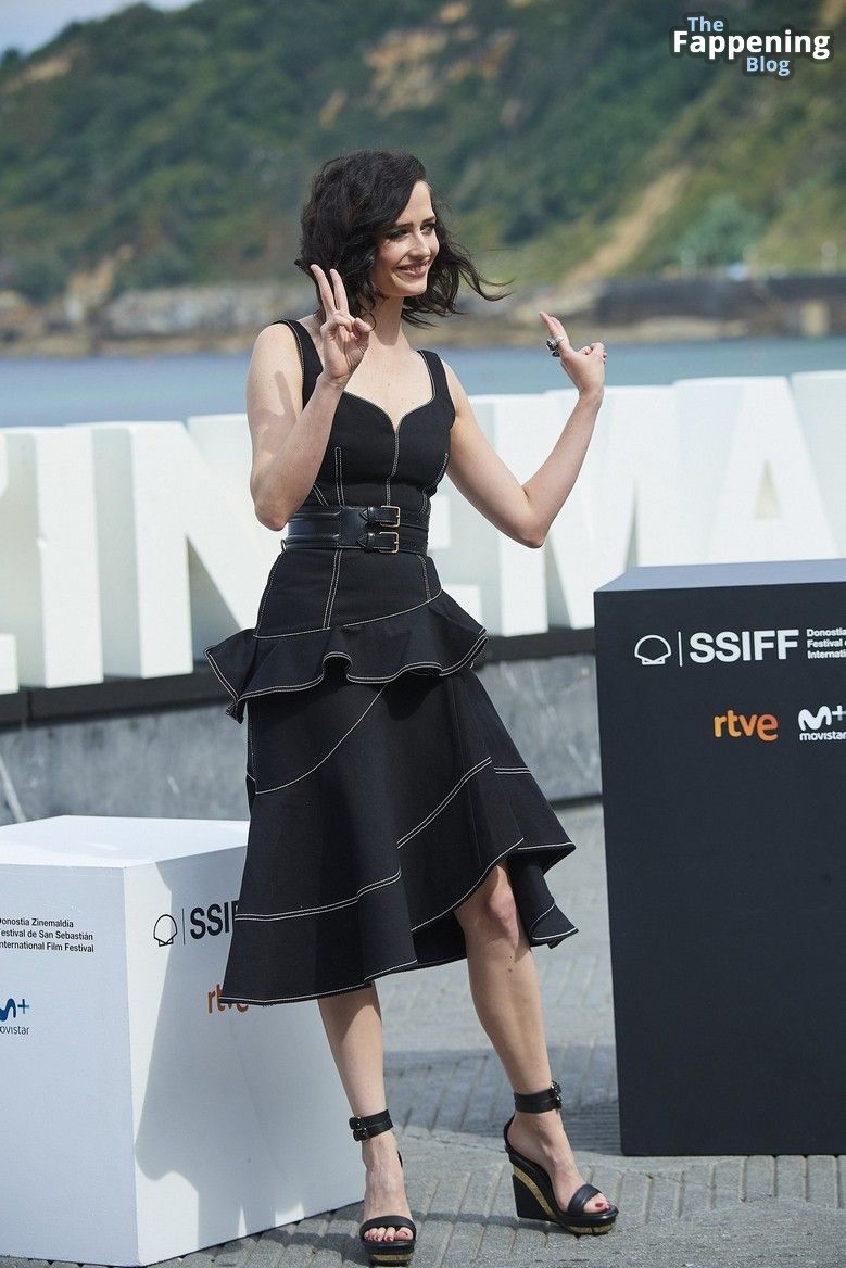 Черт возьми, у Евы Грин глаза у фанатов вылезали из орбит, когда она появилась на 67-м кинофестивале в Сан-Себастьяне. Эта сексуальная красотка была в эффектном черном платье от Alexander McQueen, без бюстгальтера, и её большая грудь была полностью видна с боку! Её волосы и макияж сделали Ален Сушон и Лиза Элдридж, и, черт возьми, она выглядела потрясающе!