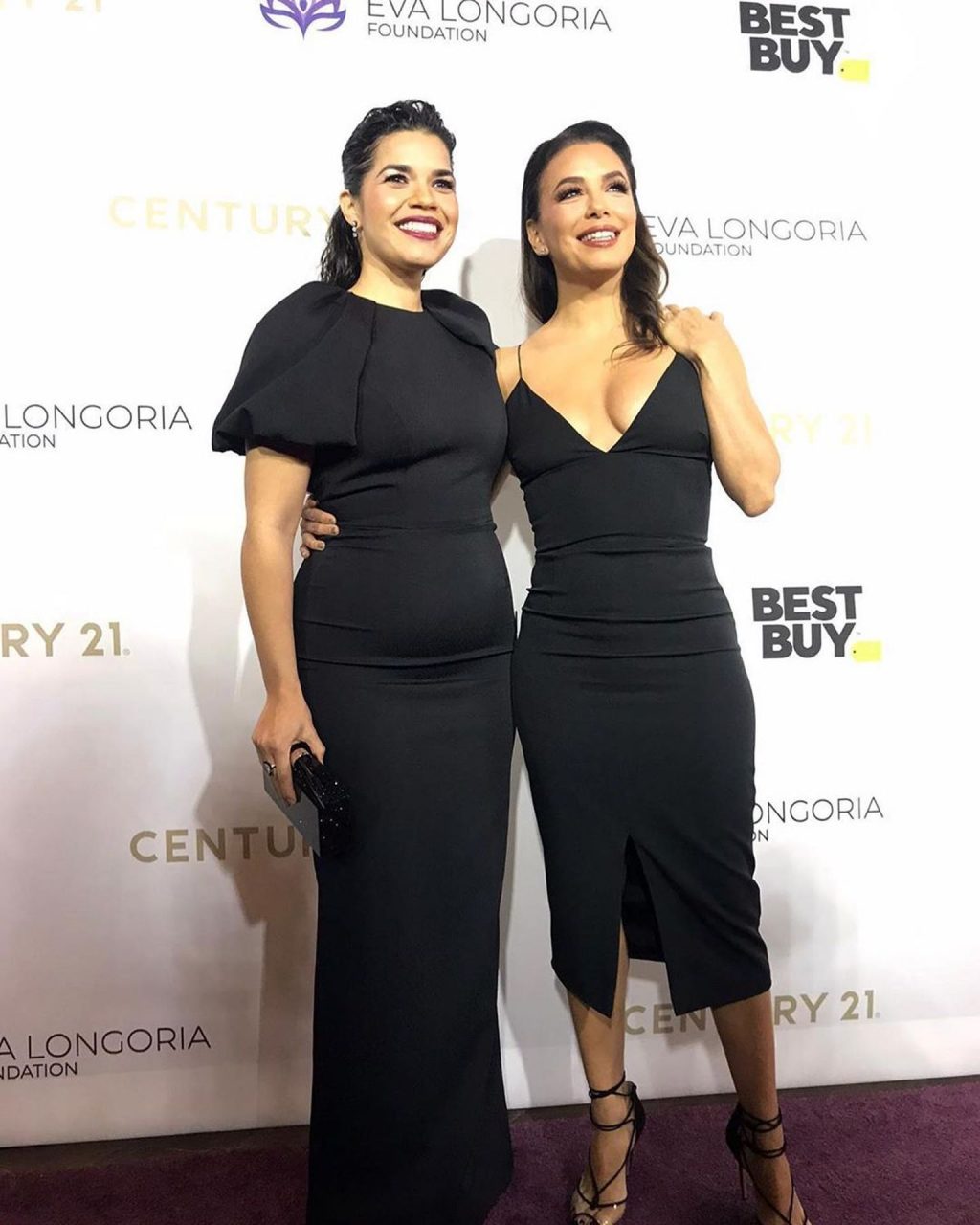 Актриса Ева Лонгория прибывает на гала-ужин Фонда Евы Лонгории 2019 года, который прошёл в отеле Four Seasons Los Angeles в Беверли-Хиллз, 15.11.2019. Для мероприятия она выбрала чёрное платье с глубоким декольте, демонстрируя грудь гостям.