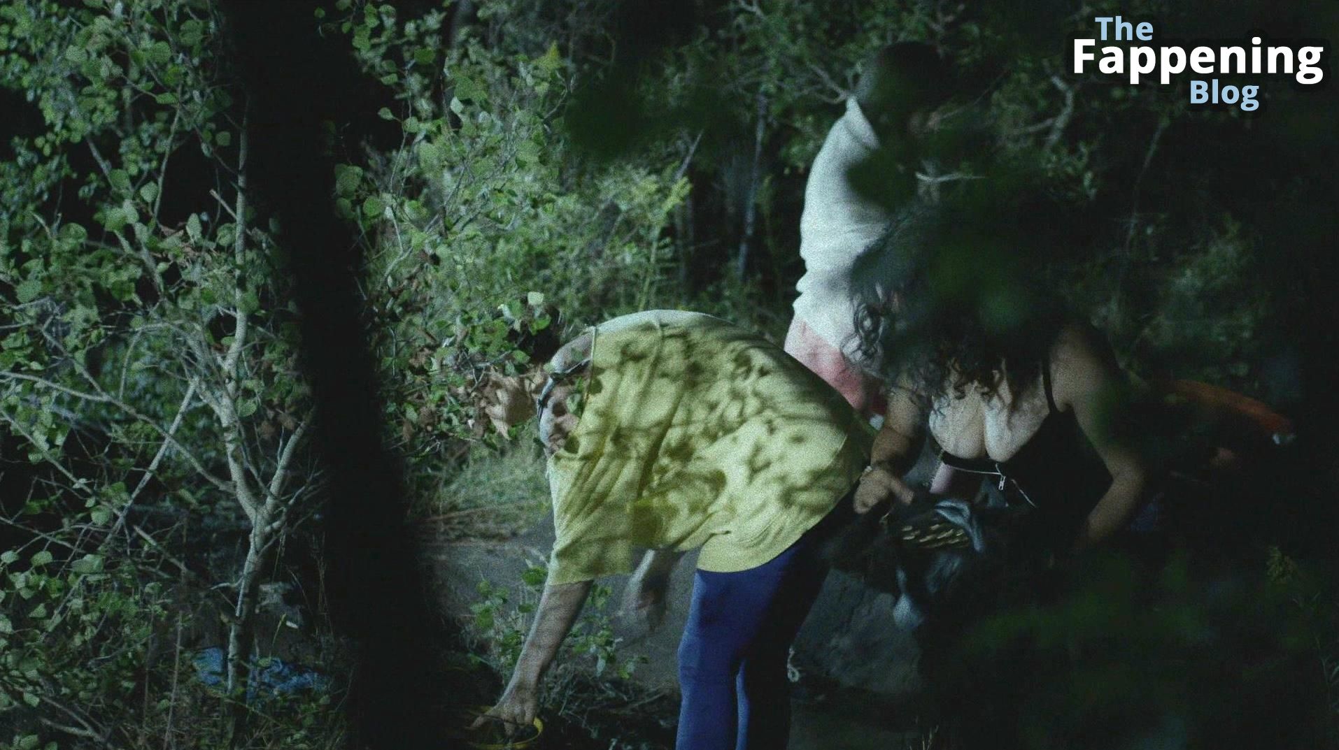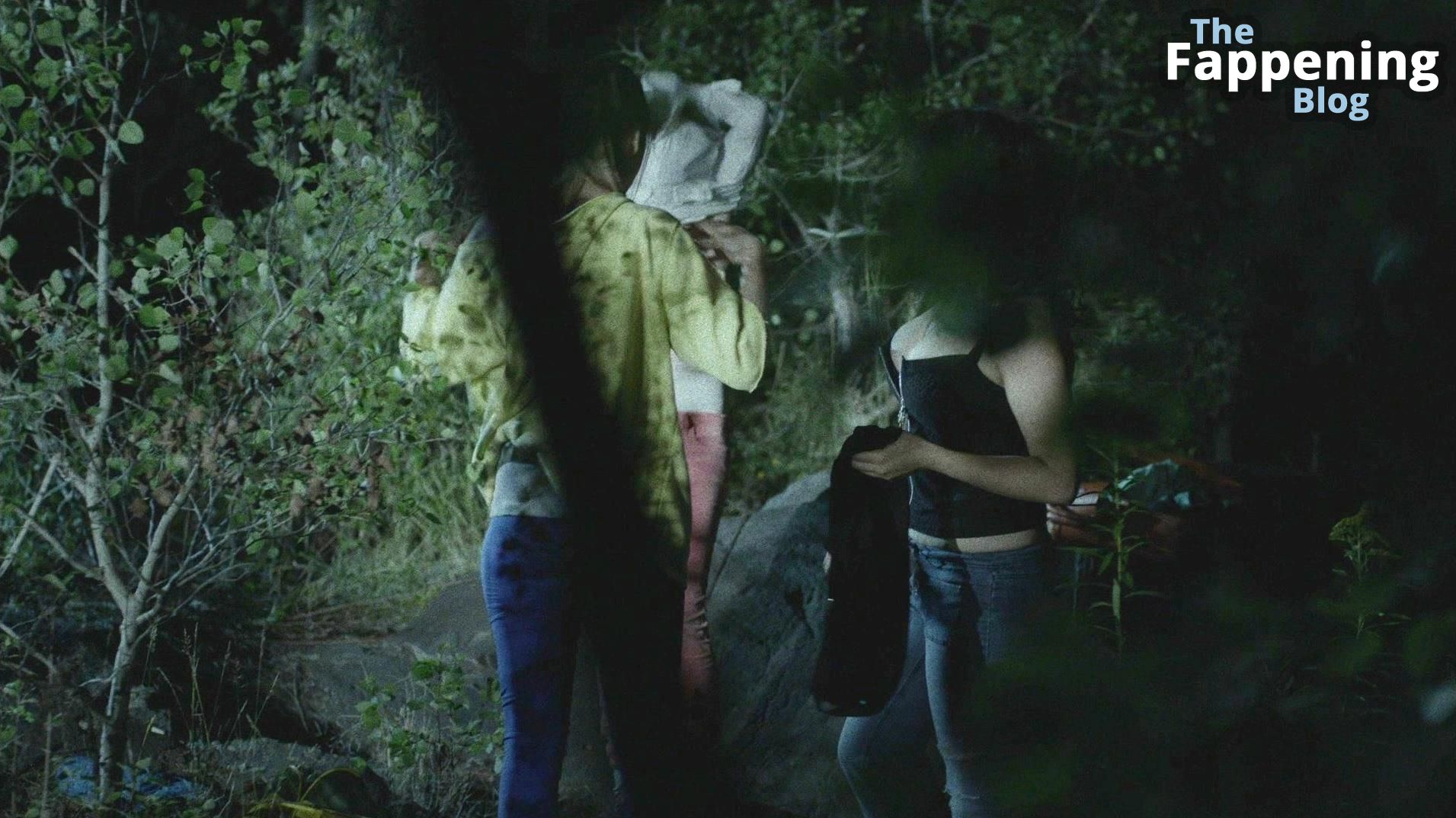 Eve Harlow is chillin’ in the woods with her two homegirls, both rockin’ just bras. They start gettin’ dressed and at one point, Eve starts mackin’ on one of ’em. But little did they know, someone’s creepin’ behind a bush, peepin’ their whole scene. Suddenly, a dude sprints past ’em all. They keep gettin’ ready and gather all their stuff that’s scattered around.