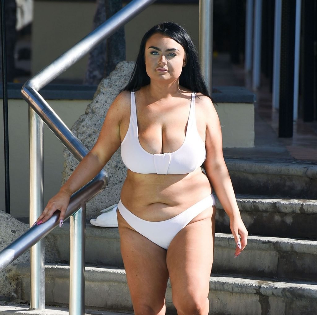 “Звезда “Geordie Shore” Фэйт Маллен попала в неловкую ситуацию во время отпуска на Лансароте, 14.01.2019. Эта модель с пышными формами отдыхает у бассейна в бикини, которое подчеркивает её пышную грудь и великолепные изгибы.