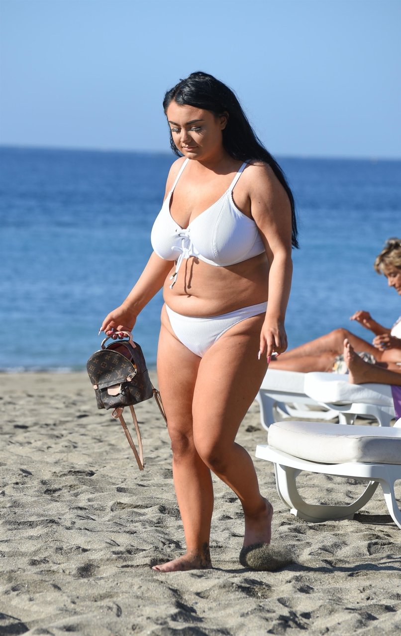 Звезда “Geordie Shore” Фейт Маллен была замечена на солнечном отдыхе на Тенерифе (2018). Звезда 16-го размера недавно призналась, что довольна своим весом и никогда не ляжет под нож, несмотря на постоянные троллинги от фанатов, называющих её “толстой”.