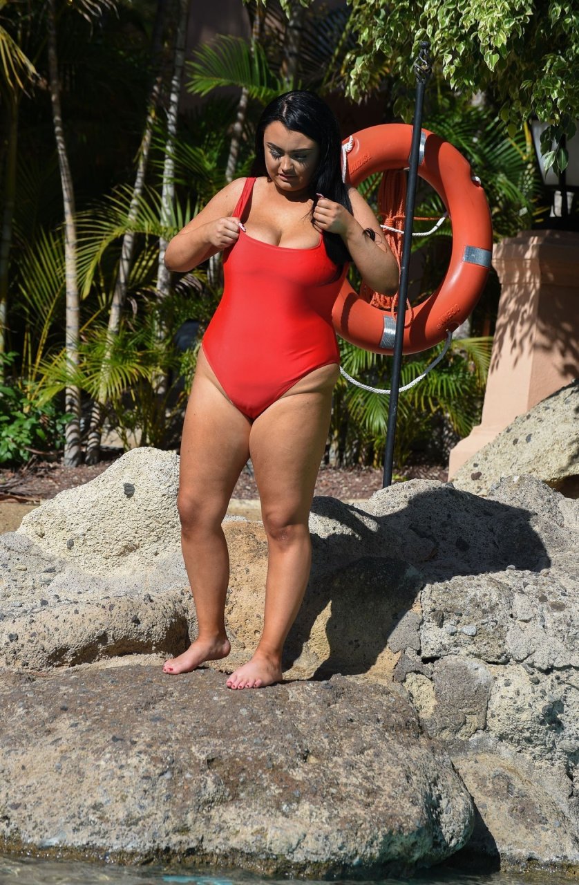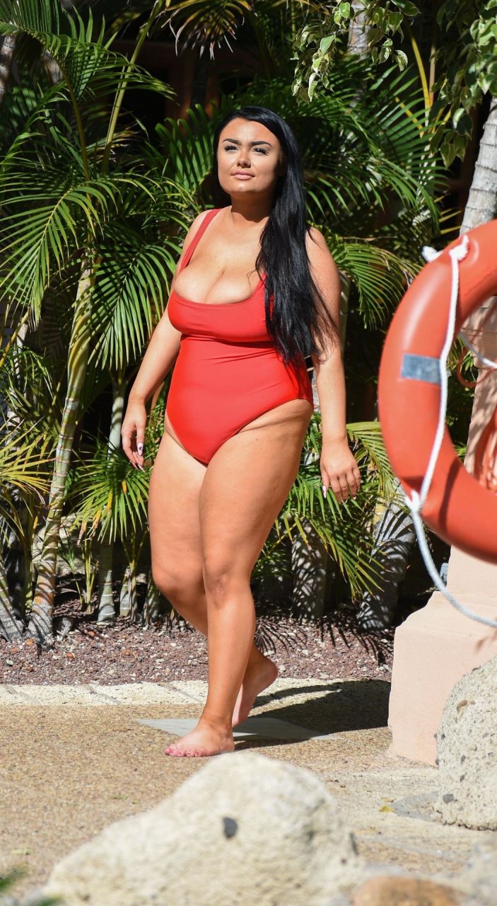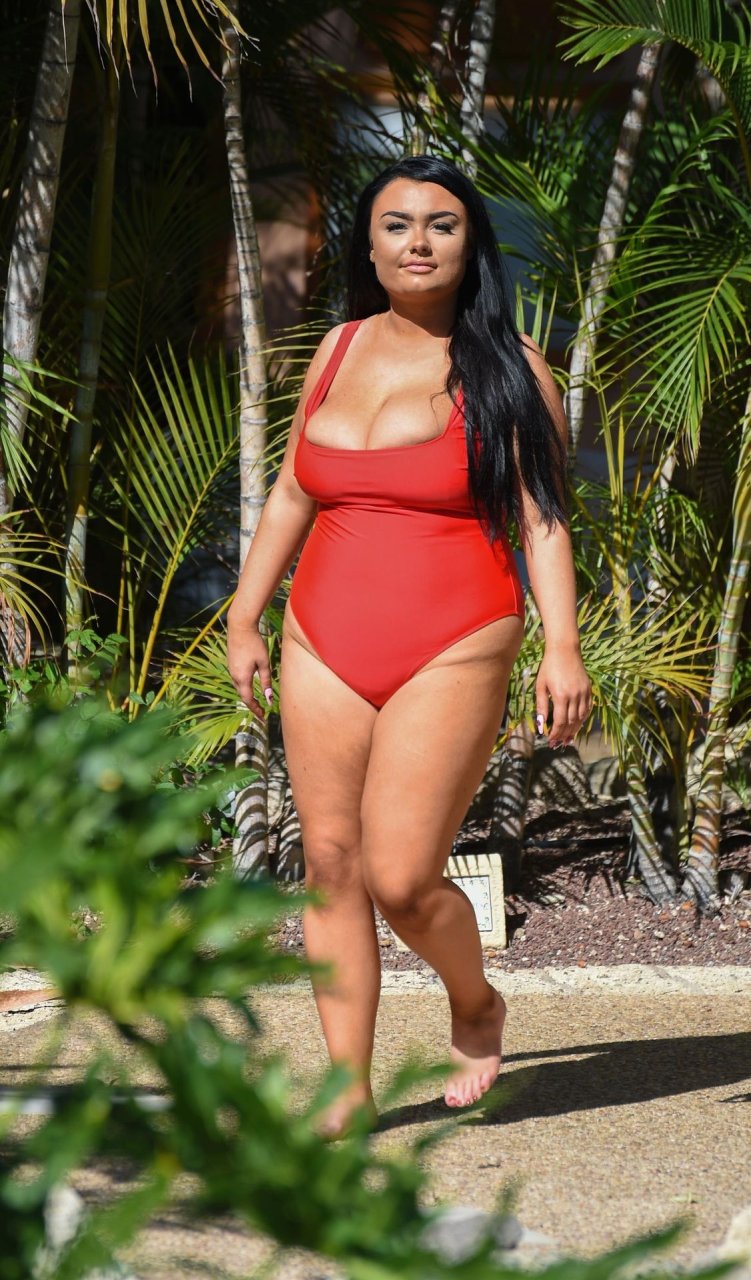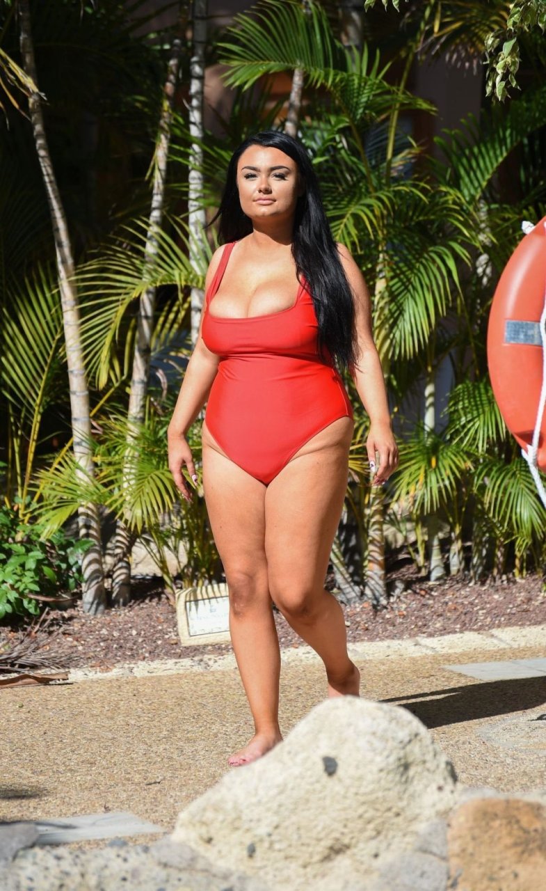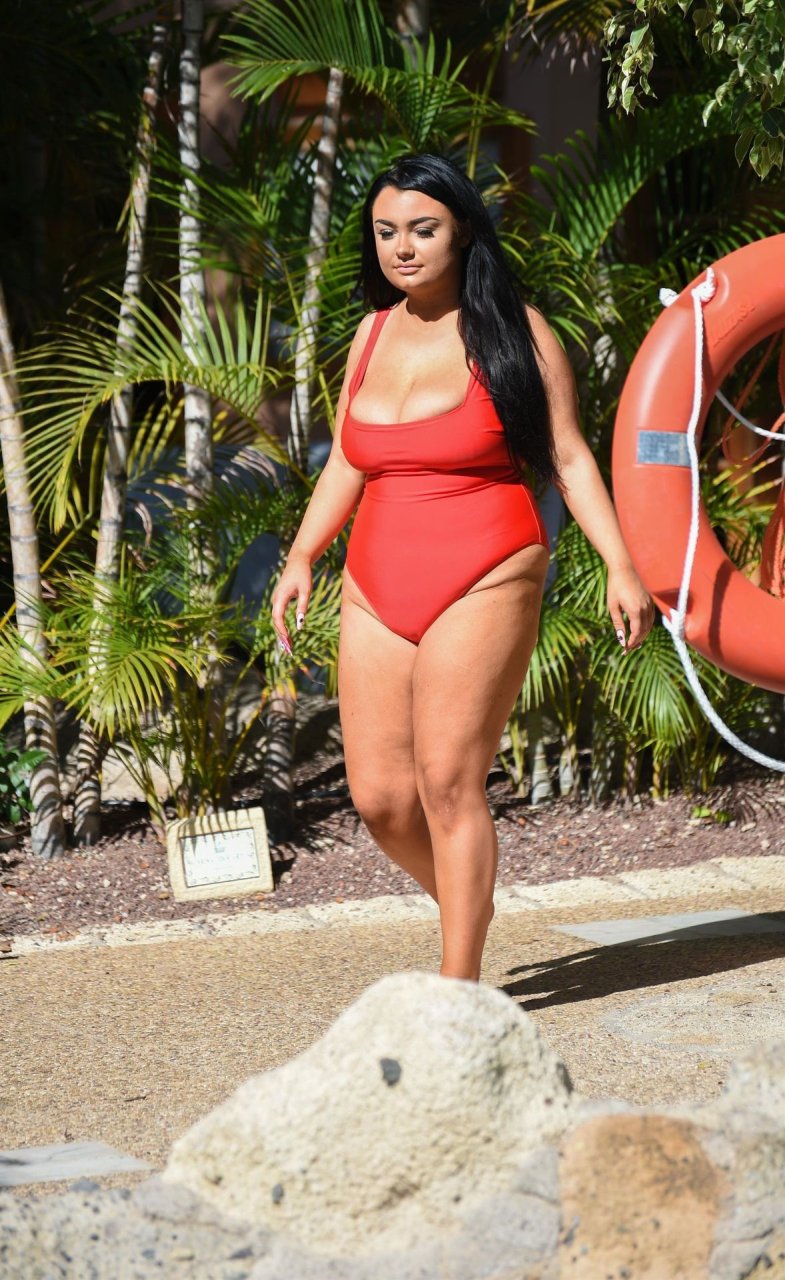 Звезда “Geordie Shore”, принцесса Plus Size Фейт Маллен, замечена на отдыхе в Лансароте, 03/06/2019. Риалити-звезда выглядывает из своего красного купальника, отдыхая у бассейна отеля.