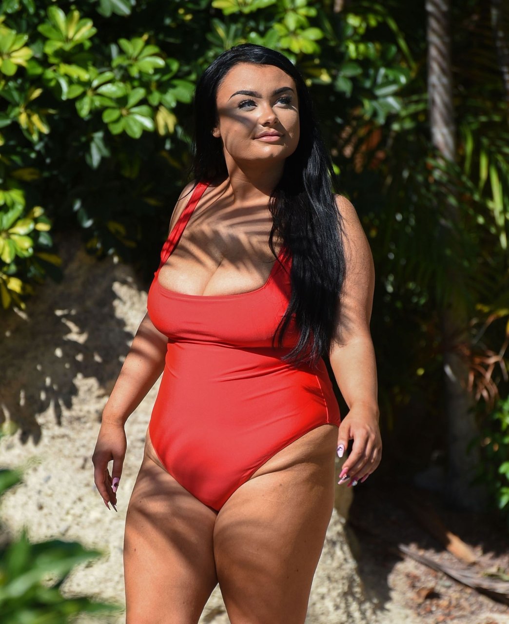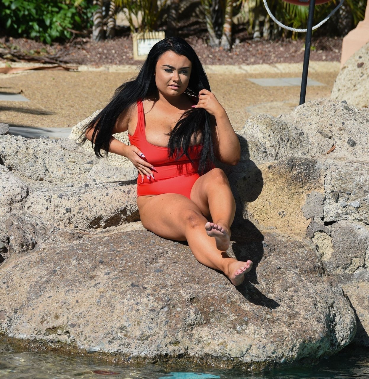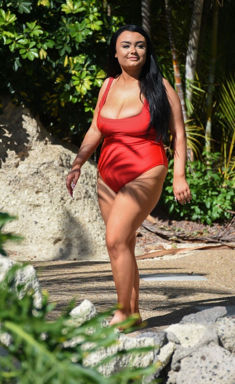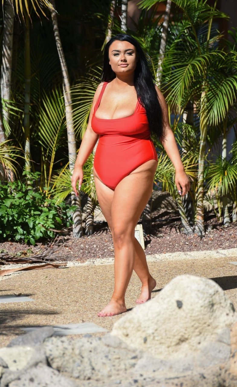 Звезда “Geordie Shore”, принцесса Plus Size Фейт Маллен, замечена на отдыхе в Лансароте, 03/06/2019. Риалити-звезда выглядывает из своего красного купальника, отдыхая у бассейна отеля.