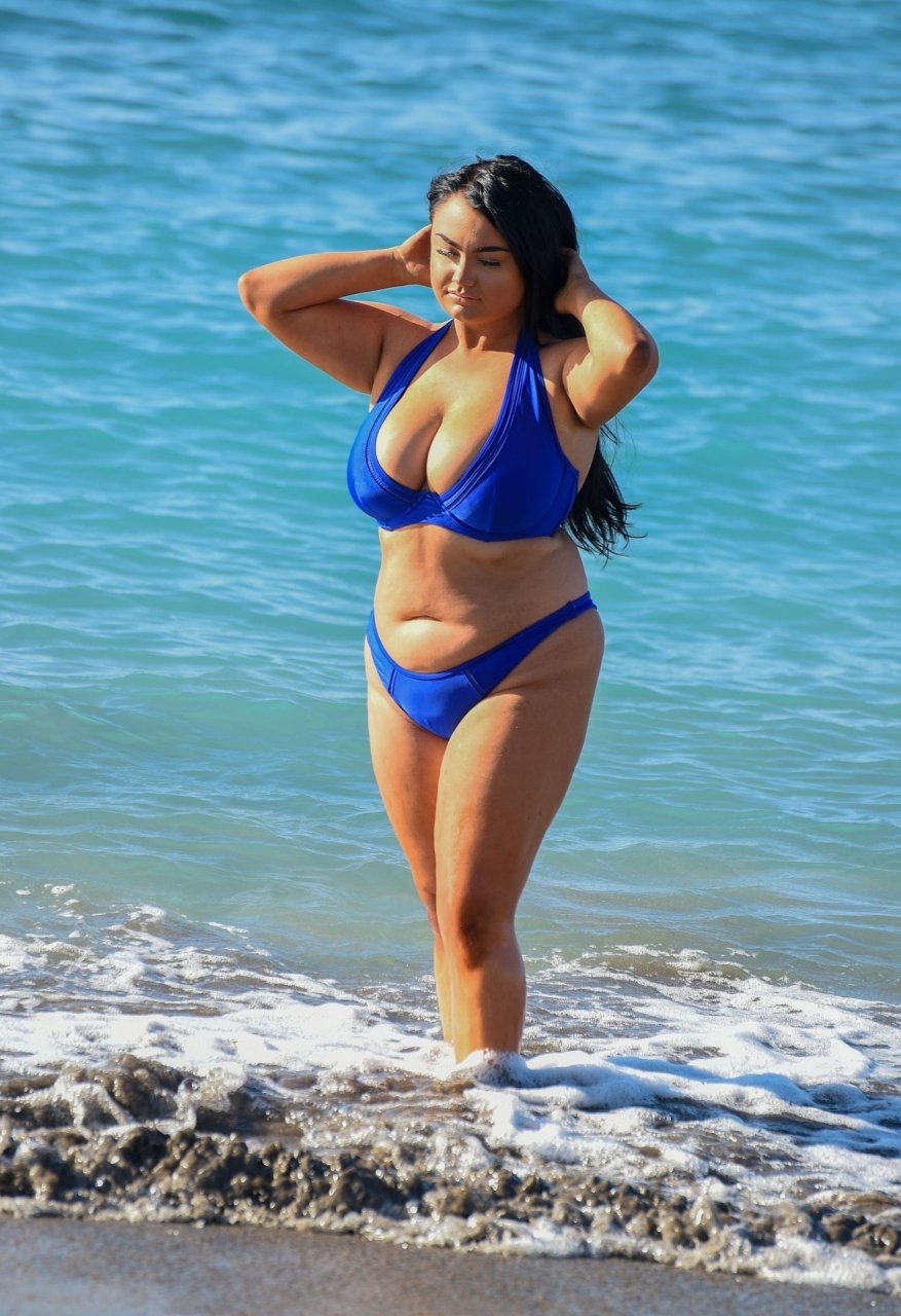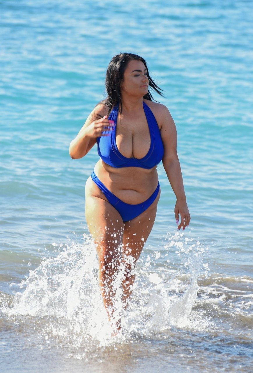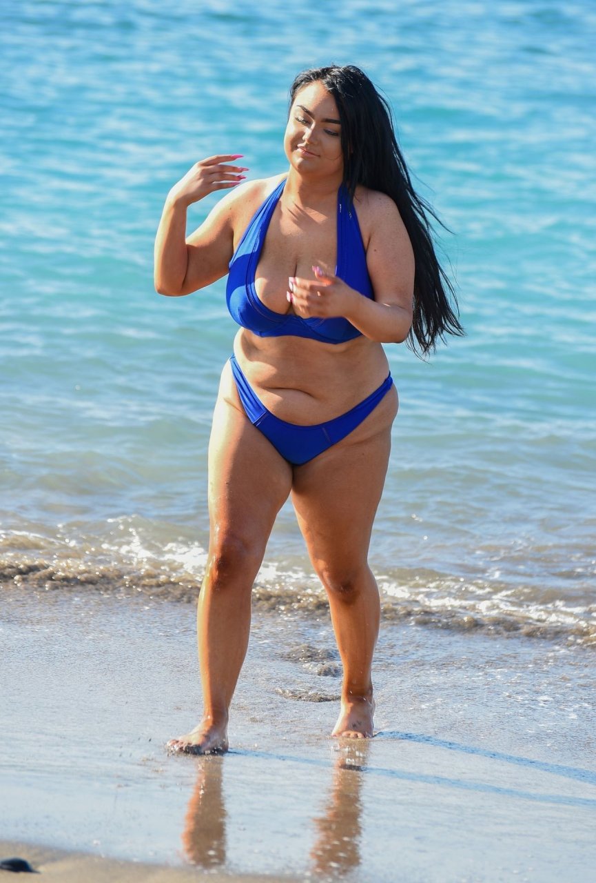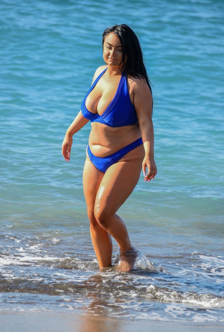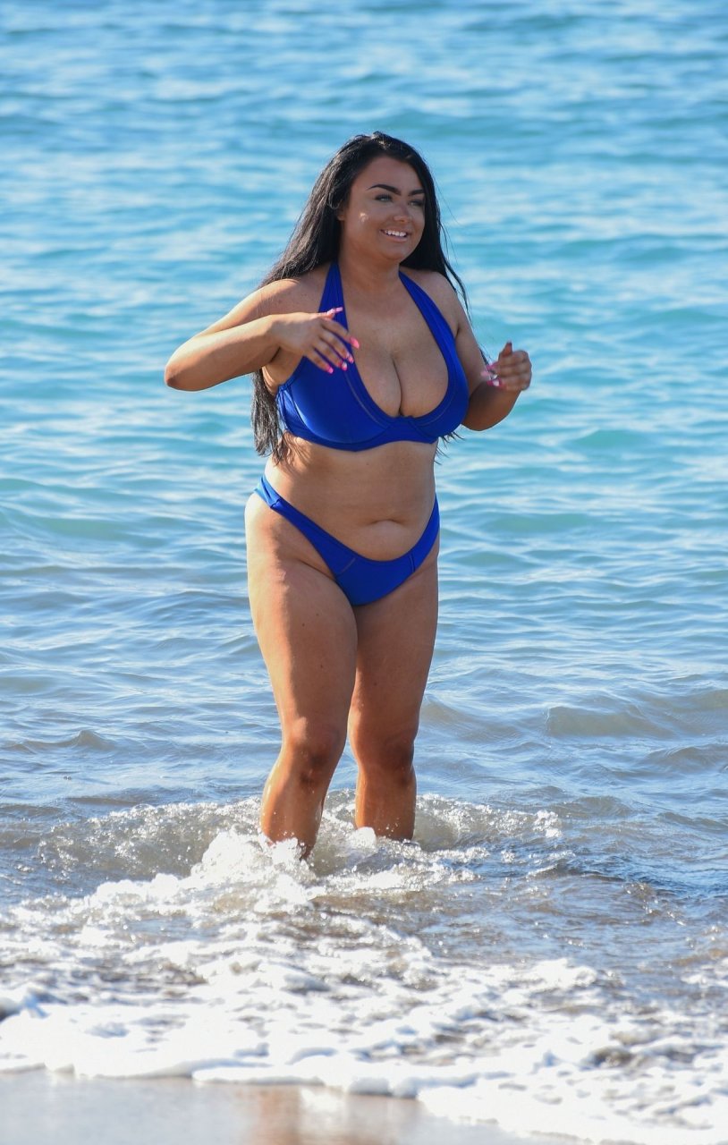 Красивая брюнетка, Фейт Маллен из Geordie Shore демонстрирует своё тело в купальнике размера 16 в синем бикини во время отпуска на Тенерифе, 18.12.2018.