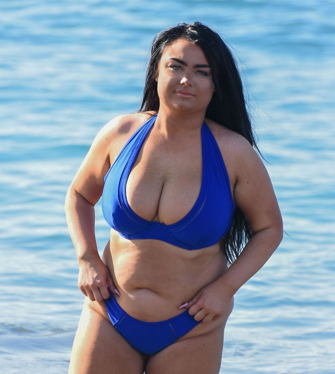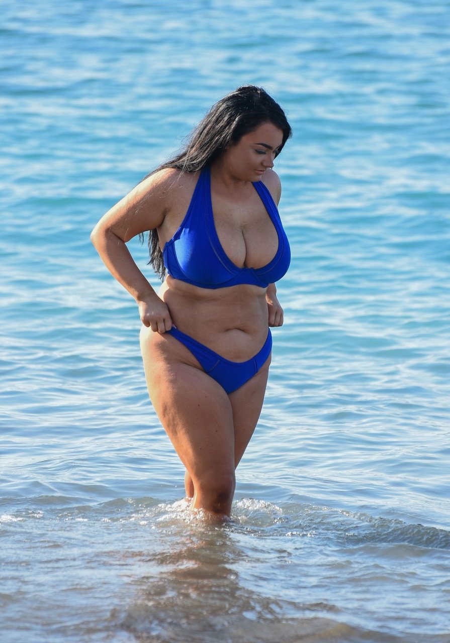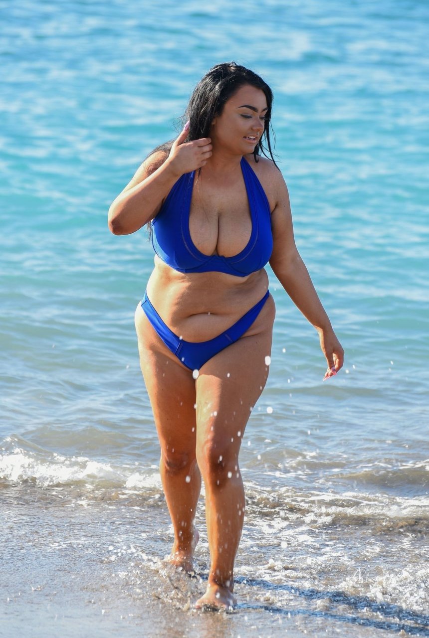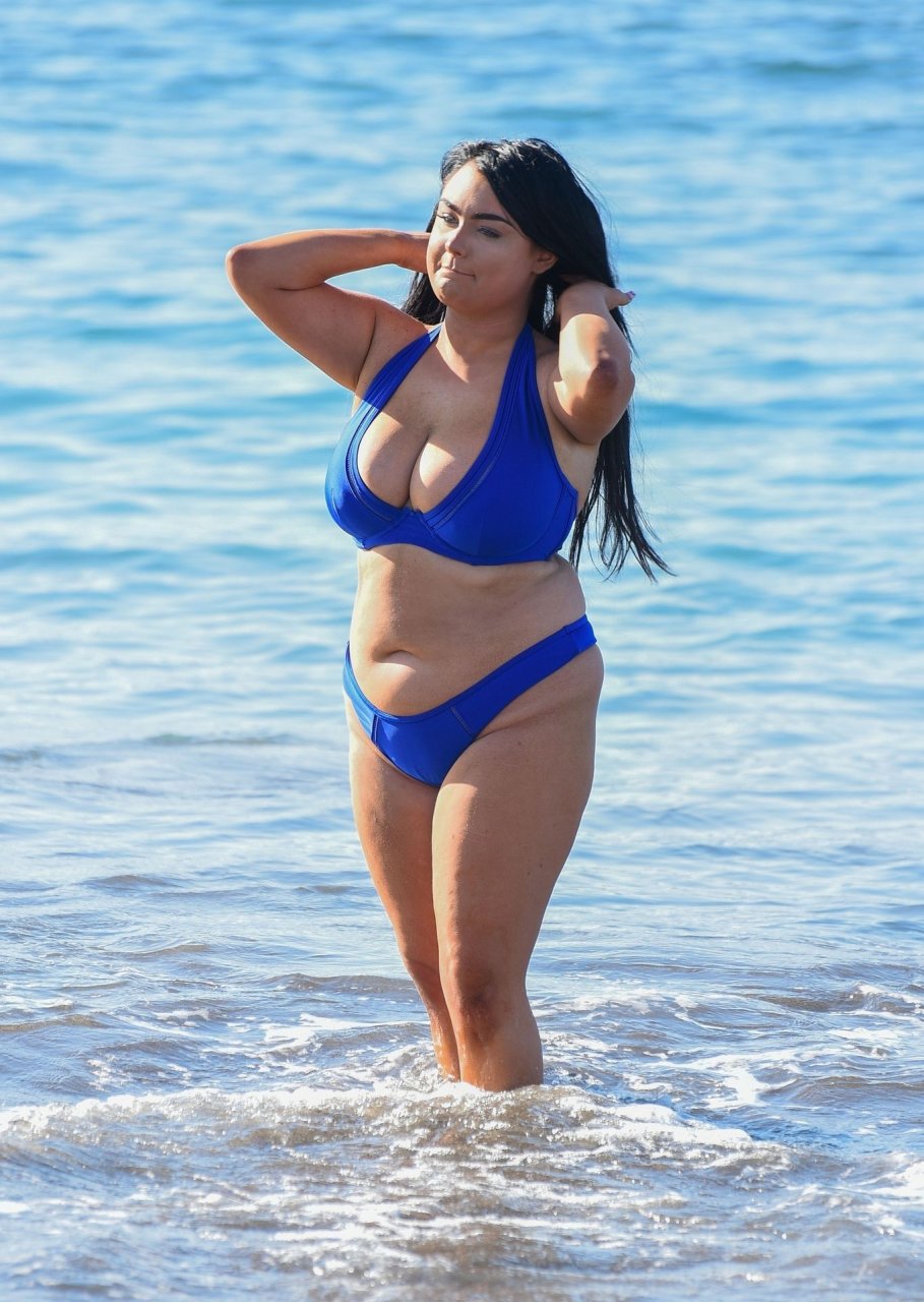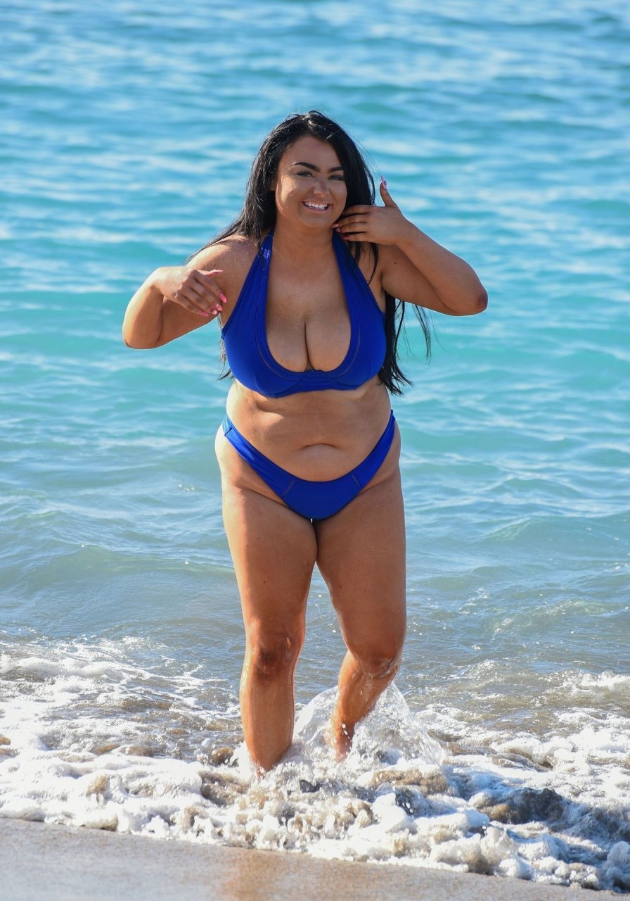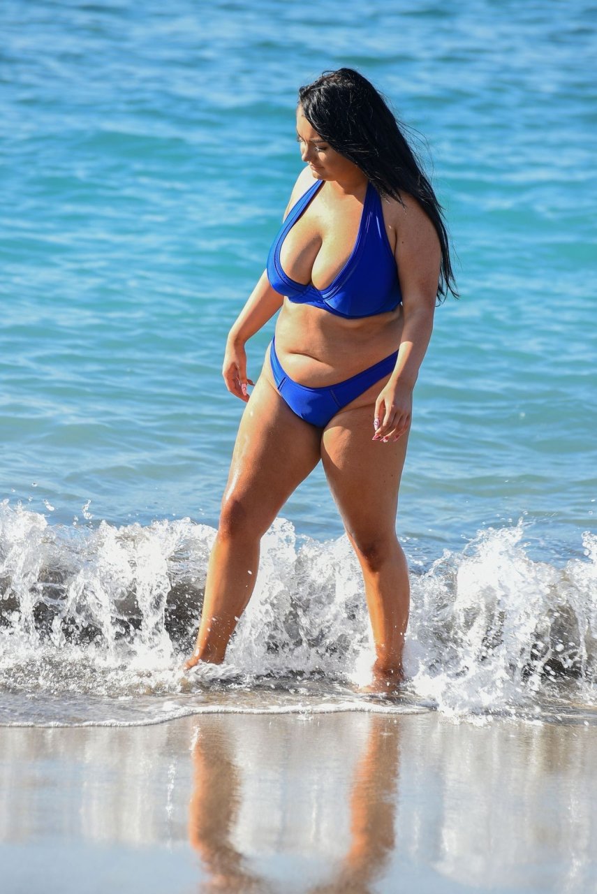 Красивая брюнетка, Фейт Маллен из Geordie Shore демонстрирует своё тело в купальнике размера 16 в синем бикини во время отпуска на Тенерифе, 18.12.2018.