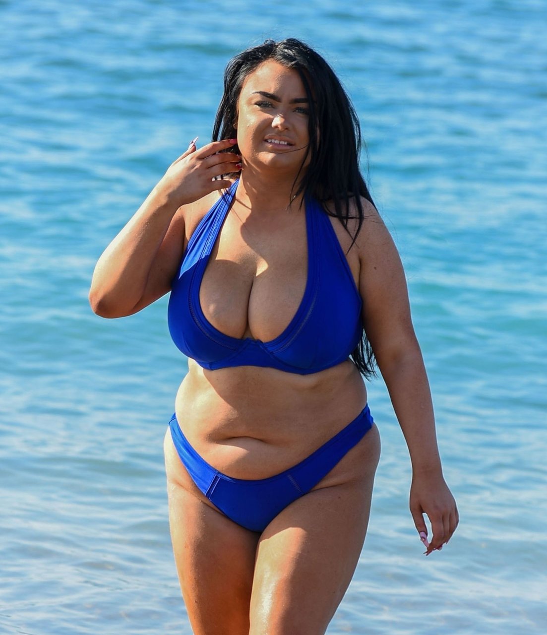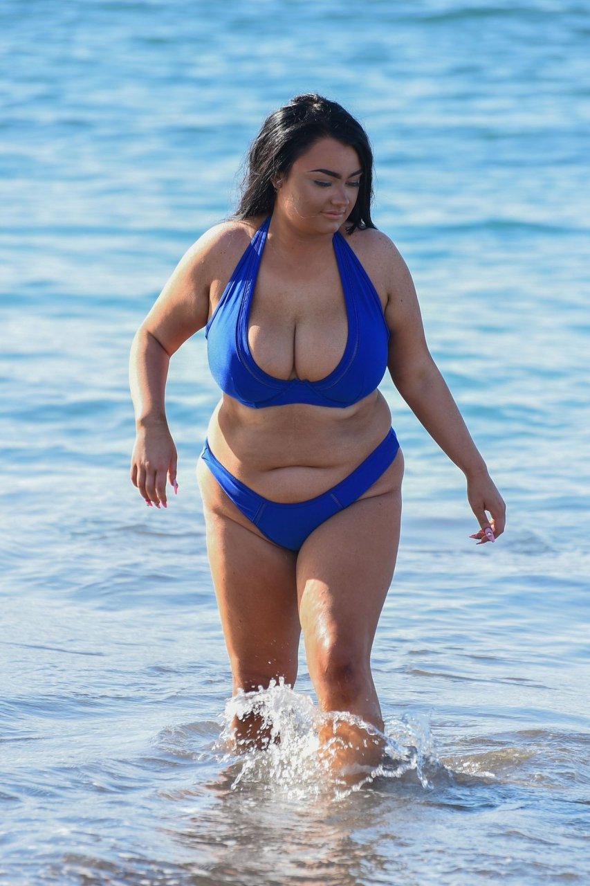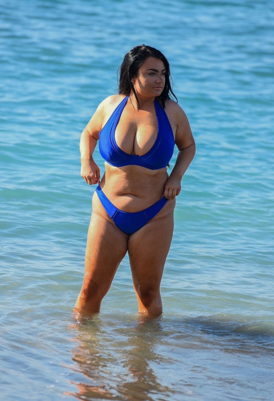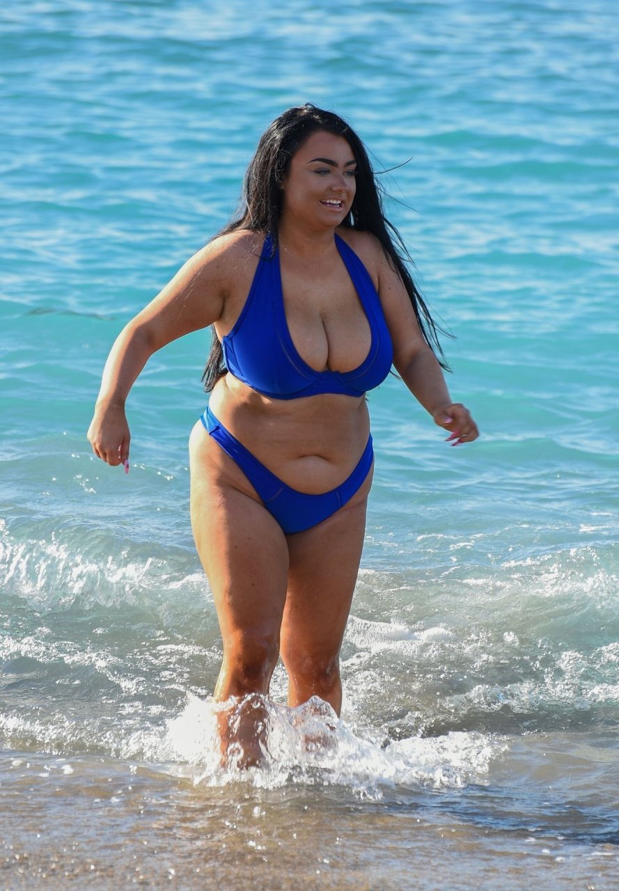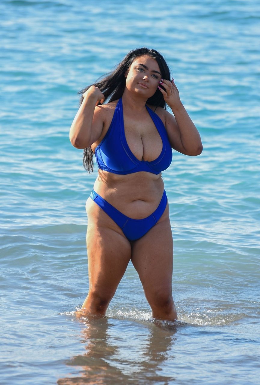 Красивая брюнетка, Фейт Маллен из Geordie Shore демонстрирует своё тело в купальнике размера 16 в синем бикини во время отпуска на Тенерифе, 18.12.2018.