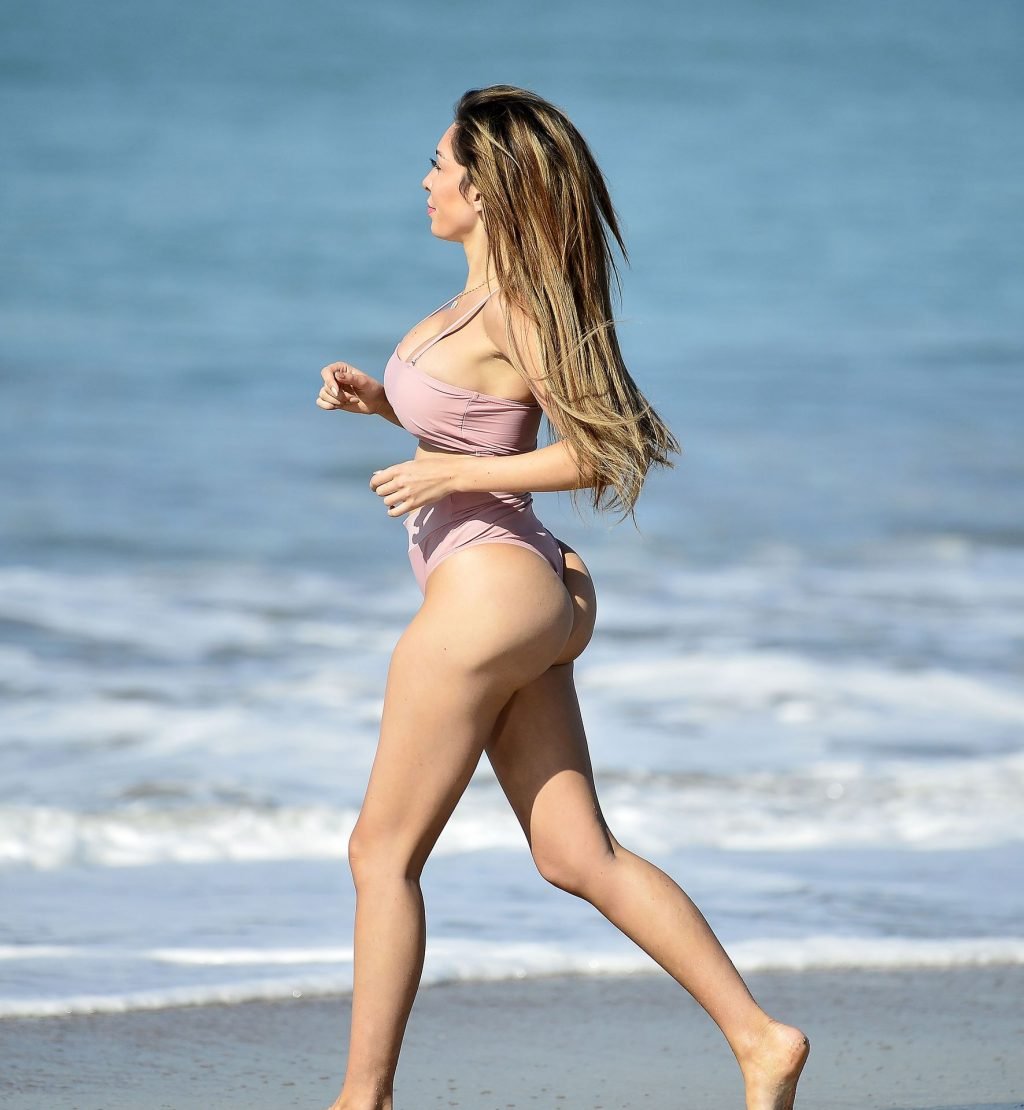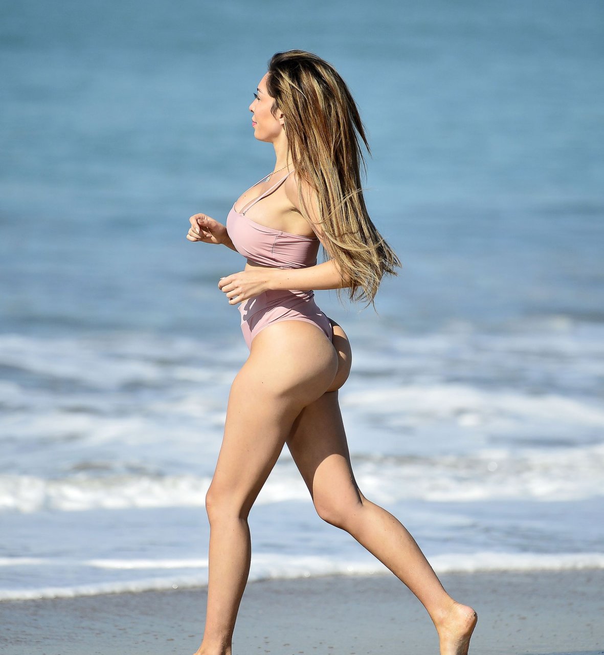 Фарра Абрахам демонстрирует свою невероятную фигуру, загорая на солнце в откровенном бикини телесного цвета в Лос-Анджелесе, 21.03.2019.