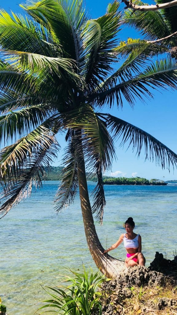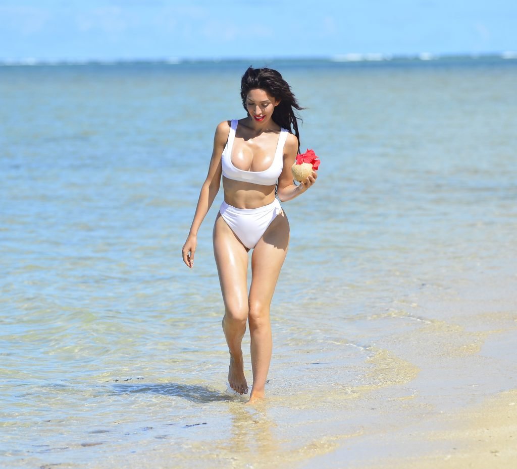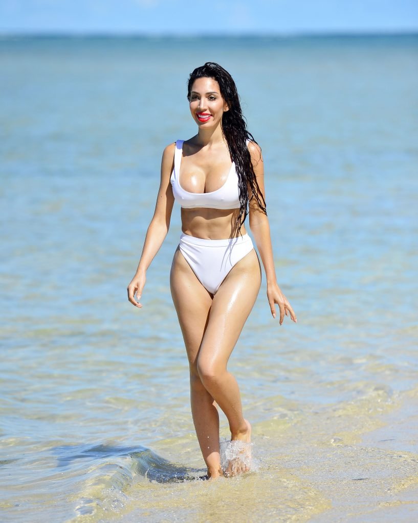 Фарра Абрахам, 26 лет, демонстрирует свою потрясающую фигуру, наслаждаясь солнцем во время дня на пляже на Фиджи, 05/05/2018. Звезда реалити-шоу была в белом бикини, подчеркивающем её большие искусственные груди и ягодицы в стиле Кардашьян.