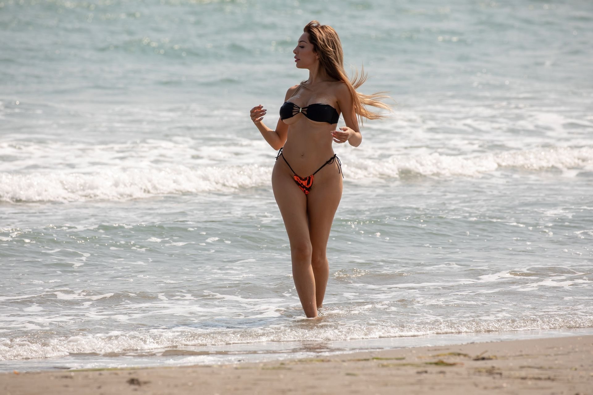 Фарра Абрахам показала свои лучшие пляжные движения в крошечном бикини на Венецианском кинофестивале в Италии, 30.08.2019.