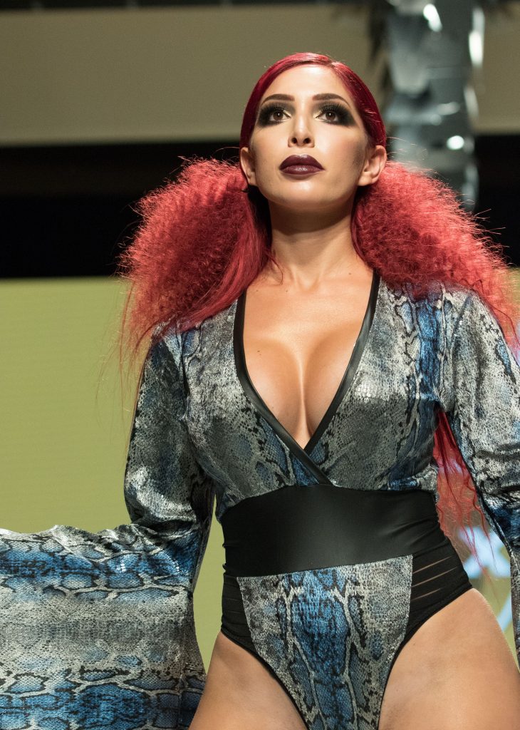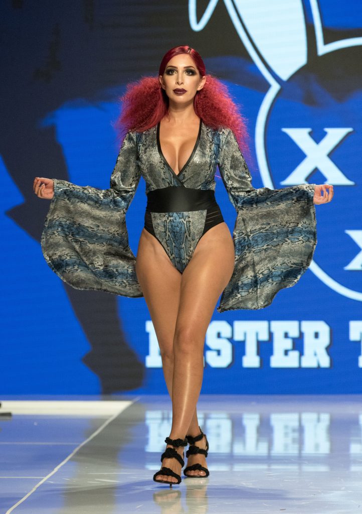 Фарра Абрахам выходит на подиум в одежде Mister Triple x на Неделе моды в Лос-Анджелесе Весна/Лето 2018, 07.10.2017. Фарра Абрахам — американская звезда реалити-шоу, модель, порноактриса. Возраст: 26 лет (31 мая 1991).