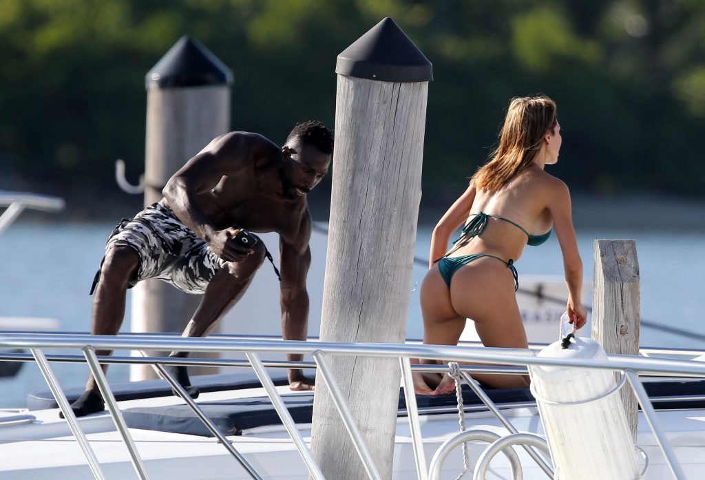“Звезда шоу “Тинейджер-мама” Фарра Абрахам (27) демонстрирует свои изгибы в зеленом бархатном бикини, флиртуя с персональным тренером на яхте в Майами, 24.10.2018.